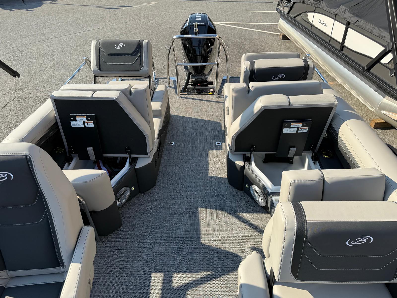 The Barletta Cabrio C24M is as practical as it is luxurious. Its spacious deck and ample seating make it perfect for entertaining guests, while the midship storage provides plenty of room for coolers, water toys, fishing gear, and other essentials. The onboard battery charger with two batteries ensures your electronics stay powered throughout the day, and the digital gauges keep you informed about your boat’s performance at all times.Docking and maneuvering are a breeze thanks to the hydraulic and power assist steering, allowing you to navigate tight spaces and busy marinas with confidence. The efficient Mercury 250L Verado V8 engine offers excellent fuel economy, so you can spend more time enjoying the water and less time refueling. Whether you’re planning a day trip, a weekend getaway, or a spontaneous adventure, the Cabrio C24M is equipped to handle all your boating needs.