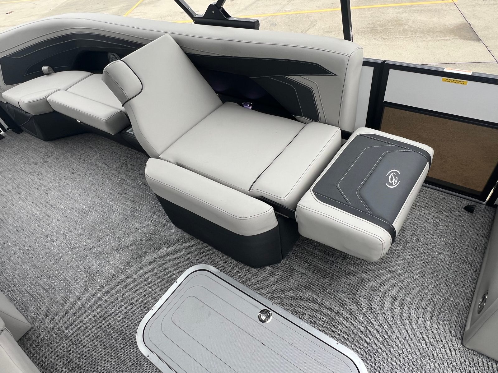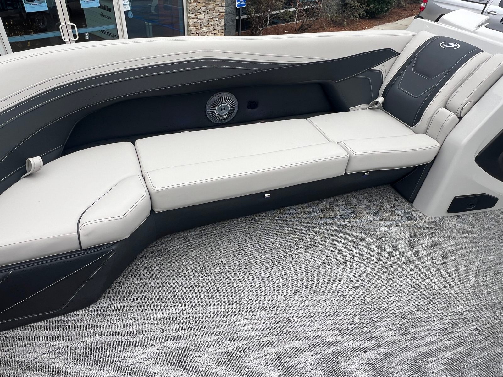 Beyond its luxurious features, the Barletta Cabrio C24Q is engineered for practicality and ease of ownership. The midship storage compartment provides ample space for gear, water toys, and personal items, keeping the deck clutter-free and organized. The sturdy construction and triple toon design make docking and maneuvering straightforward, even for less experienced boaters. Fuel efficiency is enhanced by the advanced Mercury FourStroke engine, allowing you to spend more time on the water and less time at the pump.The onboard battery charger with dual batteries ensures that your boat is always ready to go, reducing downtime and maintenance hassles. The durable flooring and high-quality upholstery are easy to clean, so you can focus on enjoying your time rather than worrying about upkeep. Every detail of the Cabrio C24Q is designed to make boating more enjoyable, convenient, and stress-free.