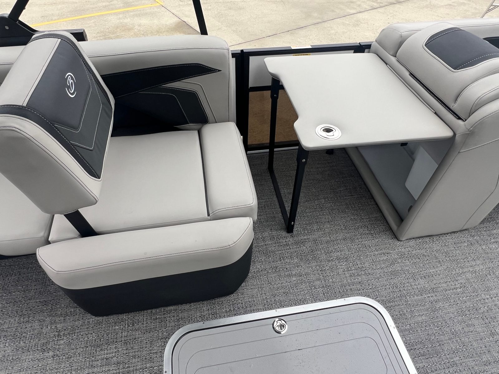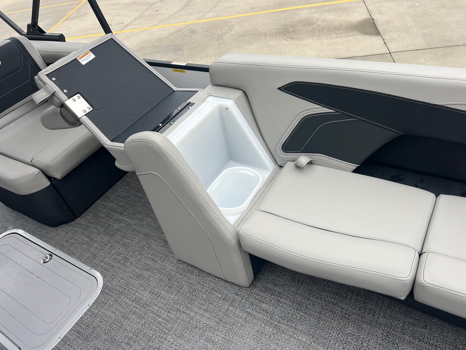 At the heart of the Barletta Cabrio C24Q is a powerful Mercury (M) 250L FourStroke engine, delivering an impressive 250 horsepower. This single-engine setup ensures smooth acceleration, responsive handling, and the capability to reach thrilling speeds when you want to feel the wind in your hair. The Mercury engine is paired with mechanical controls and power assist steering, making navigation effortless and precise. The rigged engine features a stainless steel prop, enhancing both performance and durability for long-lasting reliability. Whether you are towing water toys, cruising with a full crew, or exploring new waterways, the Cabrio C24Q’s performance will exceed your expectations.