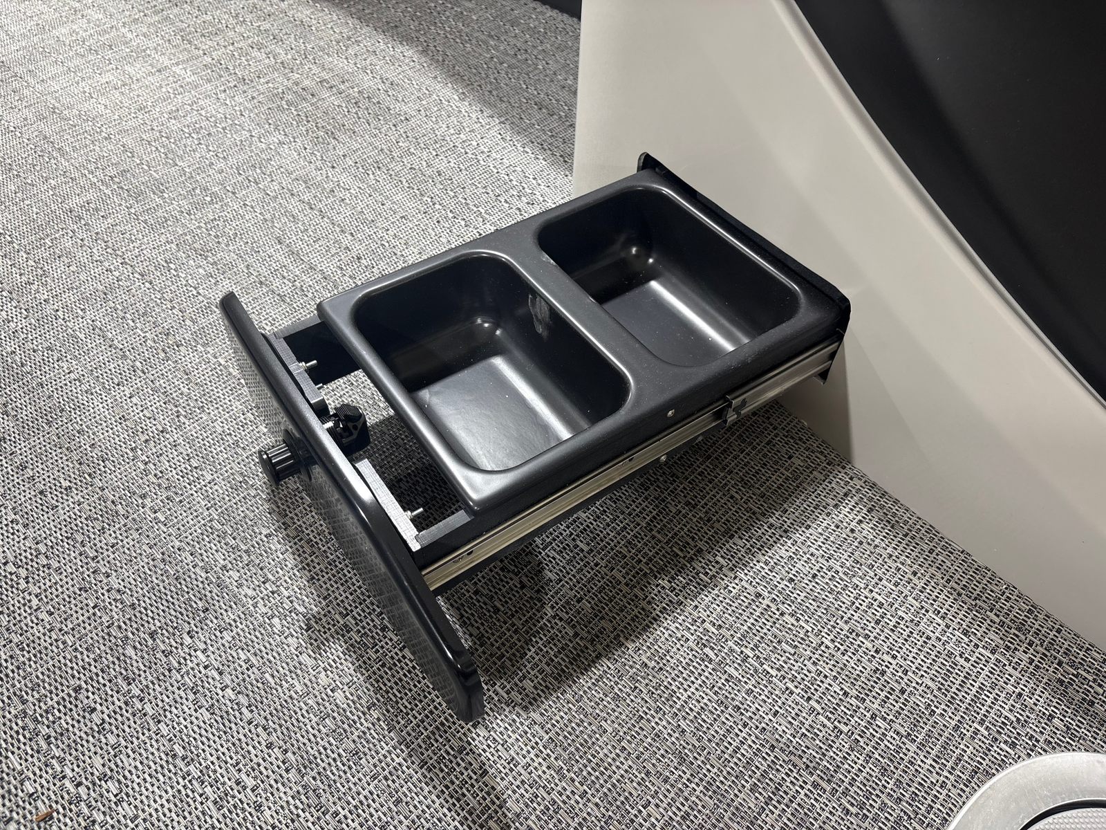 The Barletta Cabrio C24Q is designed with practicality in mind, making ownership as enjoyable as the time spent on the water. The midship storage compartment offers convenient space for stowing life jackets, fishing gear, or picnic supplies, keeping the deck clutter-free and organized. The durable flooring is easy to clean, ensuring your pontoon stays looking its best with minimal effort.Docking and maneuvering are simplified thanks to the power assist steering and reliable Mercury engine, allowing you to navigate marinas and tight spaces with ease. The efficient engine design helps maximize fuel economy, so you can spend more time cruising and less time refueling. The multifunction display provides real-time data and navigation support, making every outing safer and more enjoyable.