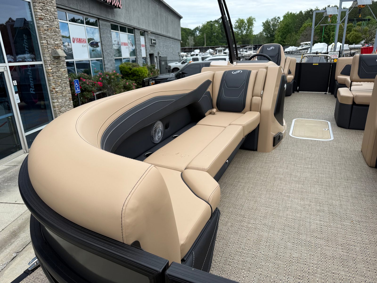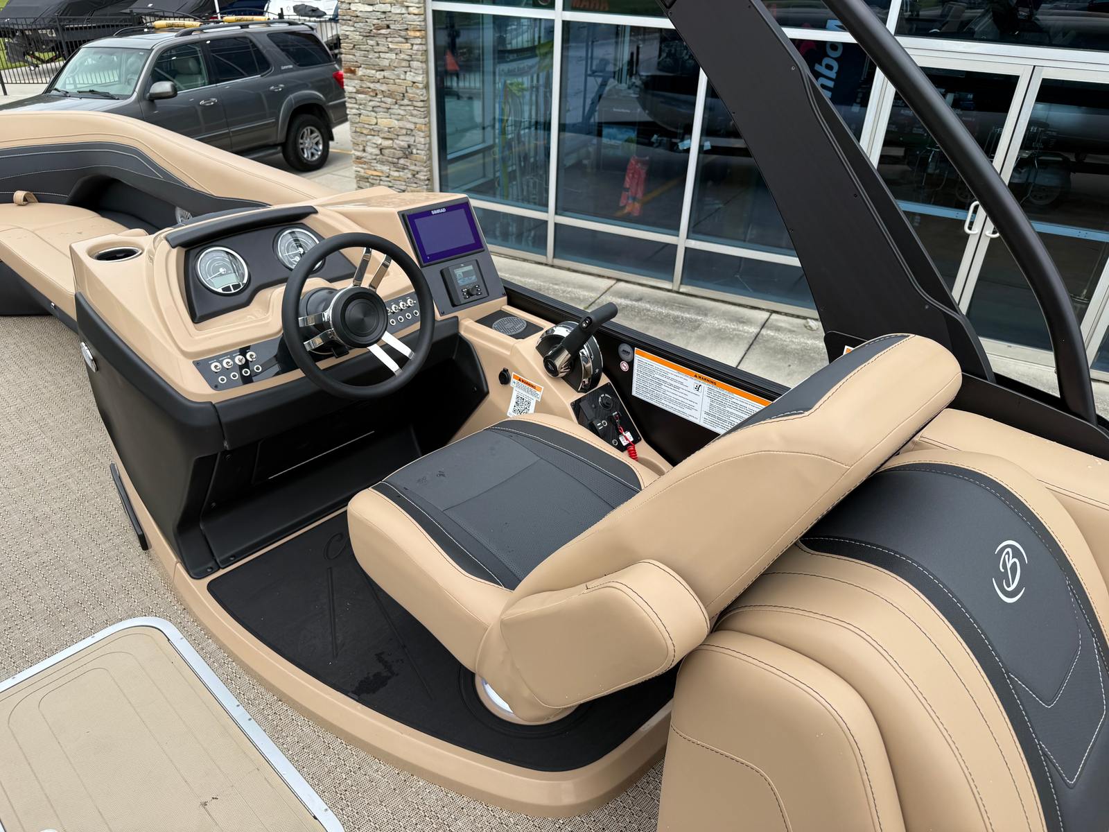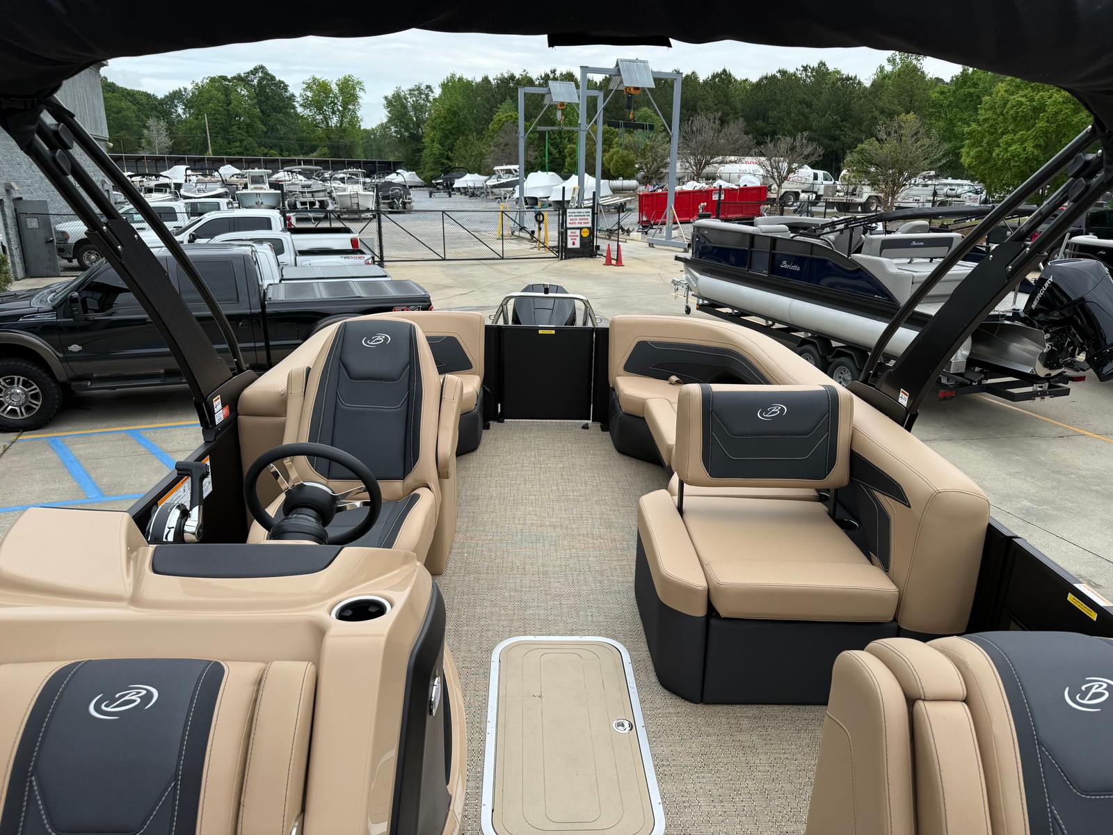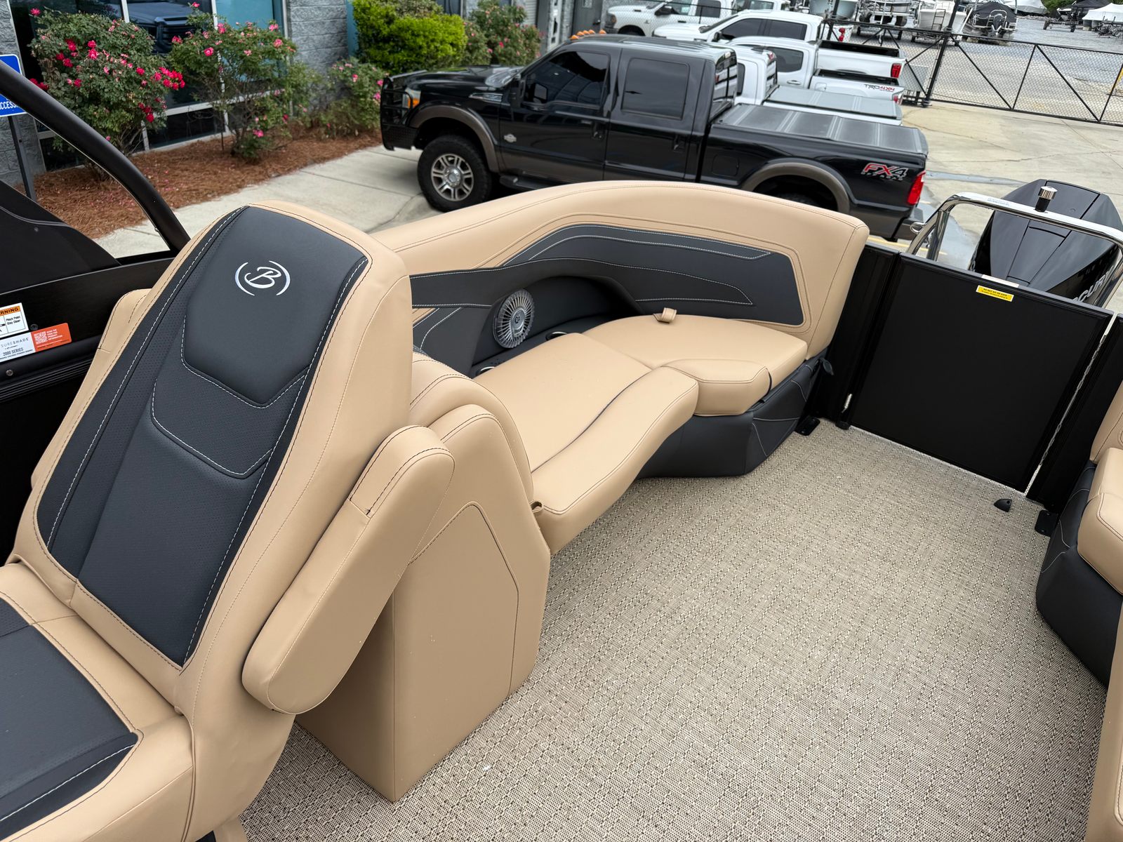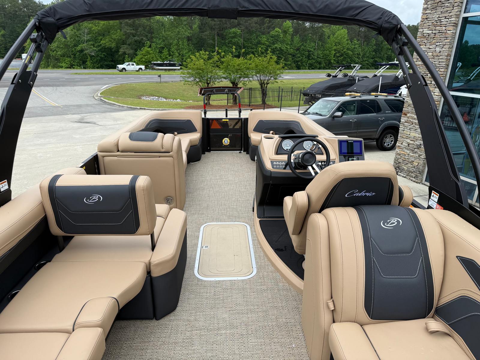 The 2026 Barletta Cabrio C24Q is loaded with special features that elevate your boating experience. The Cabrio Blackout Package adds a touch of elegance and exclusivity, while the Carmella Tan with Onyx furniture provides plush, comfortable seating for all your guests. The Amore Tan flooring is both stylish and practical, offering a soft underfoot feel and easy maintenance. The Cabrio Triple Toon Package with midship storage increases stability and adds valuable space for storing gear, water toys, or picnic essentials. A clipped playpen cover with poles ensures your pontoon stays protected from the elements when not in use, preserving its pristine condition for years to come.
