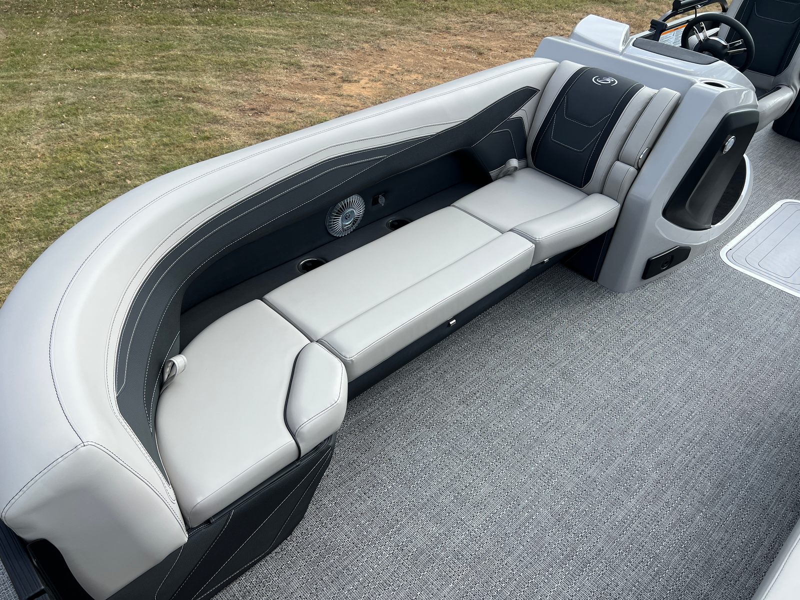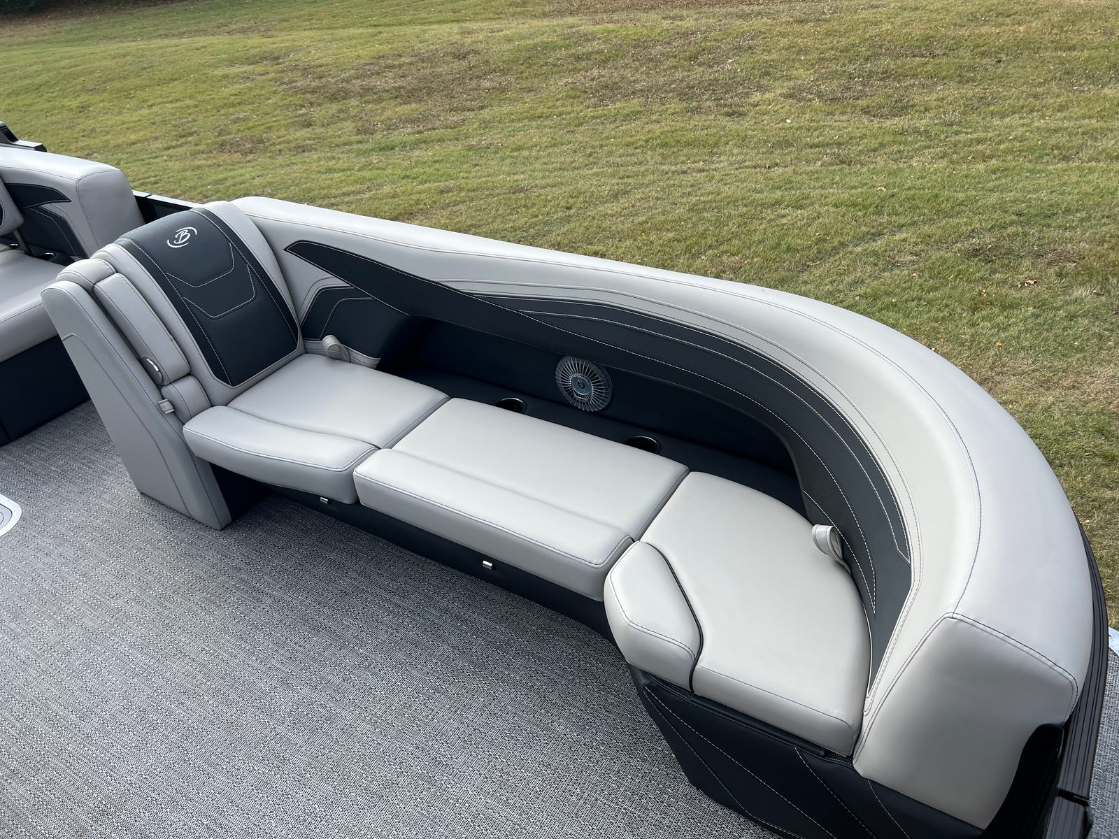 The 2026 Barletta Cabrio C24U is loaded with features that set it apart from other pontoon boats for sale. The striking Railskin in Blue Sapphire, accented by Gray Moonstone, creates a bold and modern aesthetic that is sure to turn heads at the marina. The Blackout Package Cabrio adds a touch of sophistication, while the Marquesan Gray furniture with Onyx accents provides a luxurious and inviting atmosphere onboard. The Amore Gray flooring is both stylish and practical, offering a comfortable surface that is easy to maintain.One of the standout features is the Triple Toon Package with Midship Storage, exclusive to the Cabrio line. This innovative design enhances stability, buoyancy, and overall performance, while the midship storage compartment offers convenient space for stowing gear, water toys, or picnic essentials. The Metal Jacket Protectant ensures your pontoon’s exterior remains in pristine condition, protecting against the elements and preserving its stunning appearance for years to come.