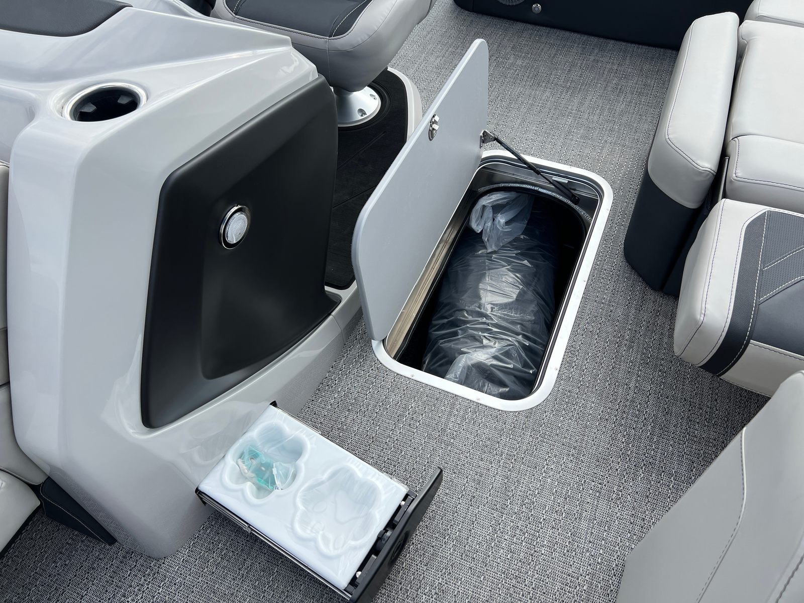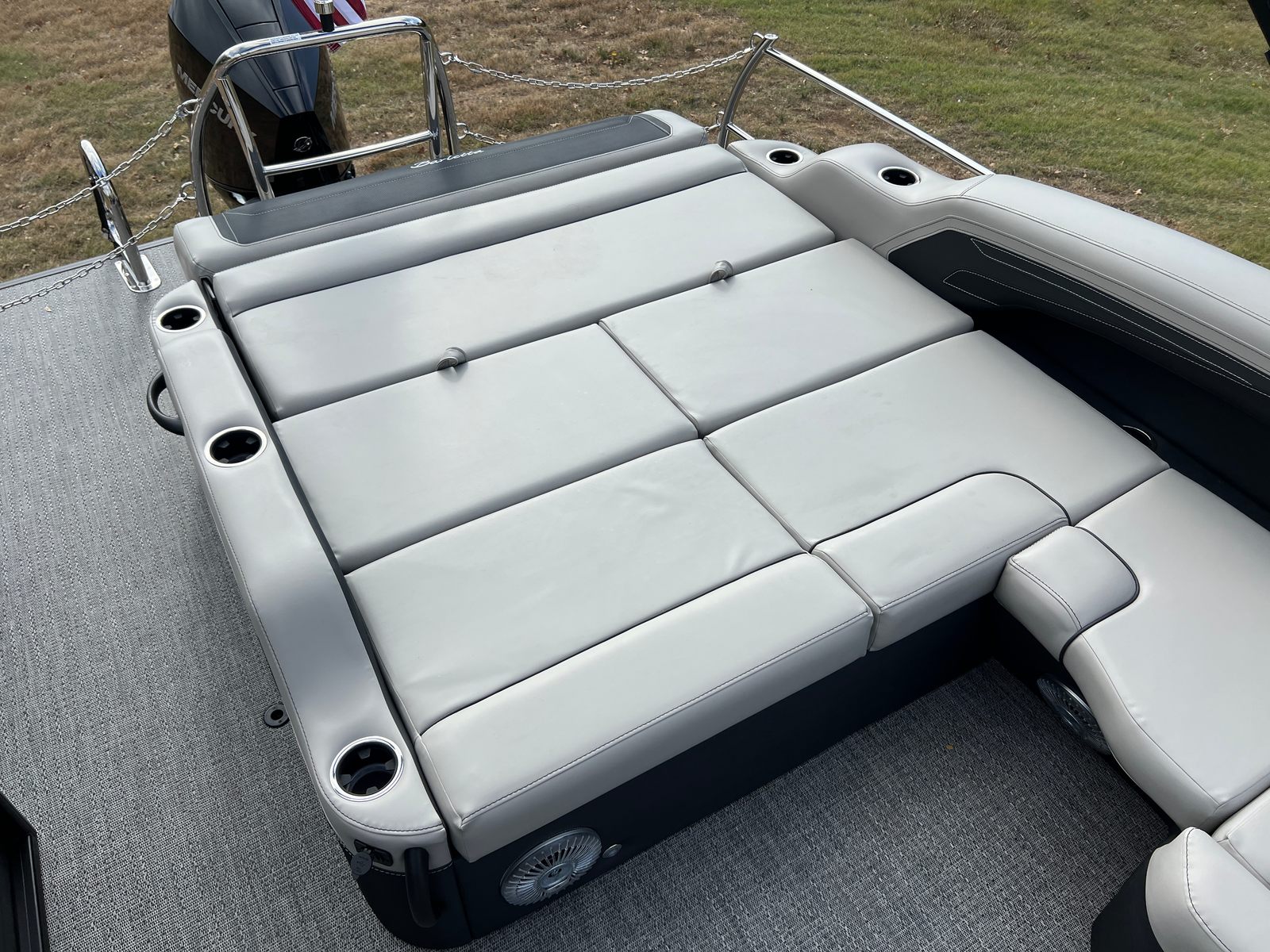 Beyond its luxurious amenities, the Cabrio C24U is designed with practicality in mind. The midship storage compartment provides ample space for life jackets, fishing gear, or water sports equipment, keeping the deck clutter-free and organized. The sturdy construction and triple toon configuration make docking and maneuvering a breeze, even for less experienced boaters.Fuel efficiency is another key advantage, thanks to the advanced Mercury FourStroke engine, which delivers powerful performance without compromising on economy. The durable flooring and protective coatings ensure easy cleaning and maintenance, so you can spend more time enjoying the water and less time on upkeep.