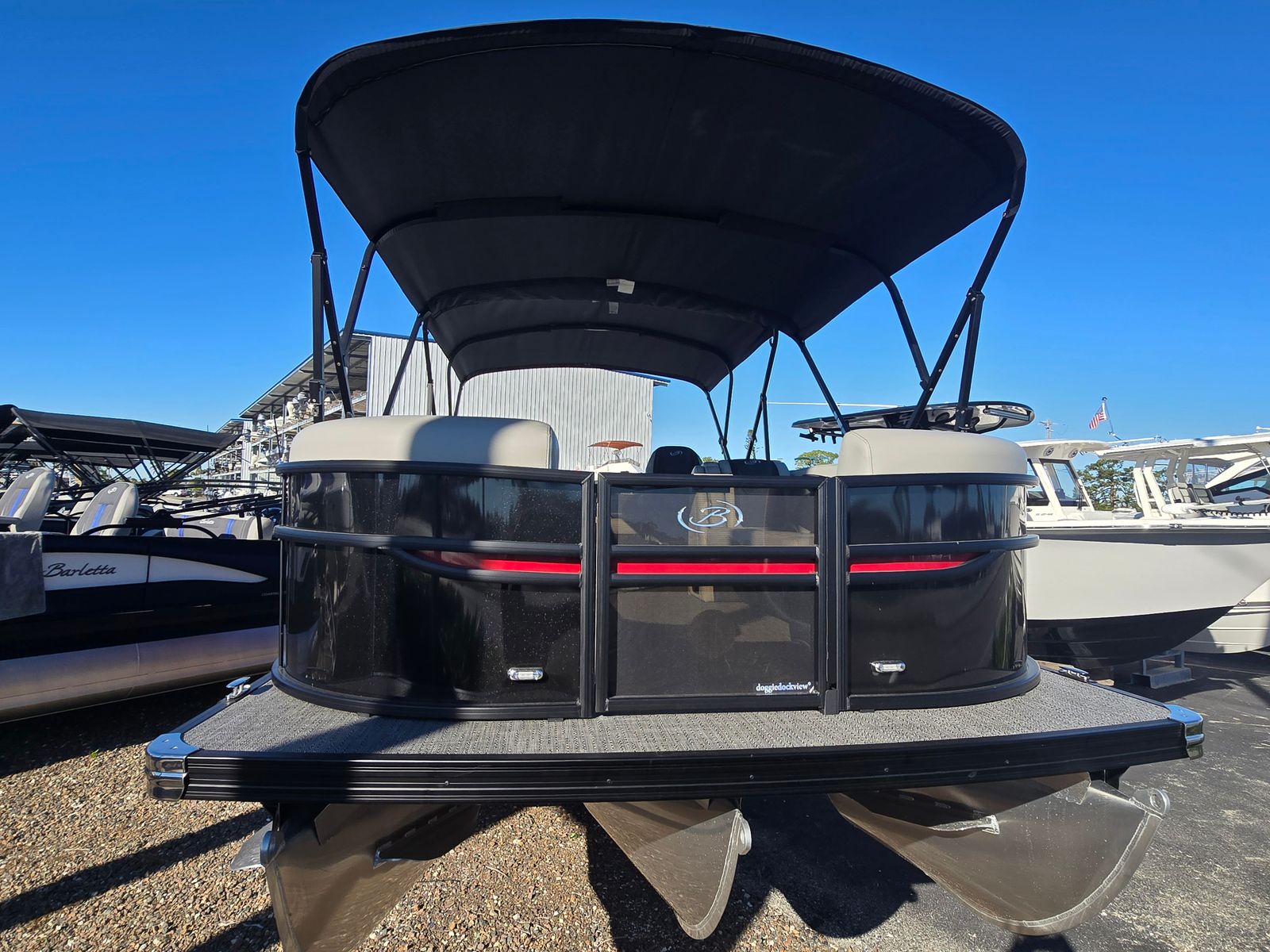 The 2026 Barletta Cabrio C24UC stands out as a premier pontoon boat, measuring just over 25 feet in length. Its spacious layout is thoughtfully designed to maximize comfort and versatility, making it perfect for entertaining family and friends or enjoying a peaceful solo escape. The new condition of this Barletta boat for sale ensures that you will be the first to enjoy its pristine features and innovative amenities. With its striking Black Diamond railskin color, accented by the bold Red Garnet, this pontoon makes a statement at every dock and on every waterway.