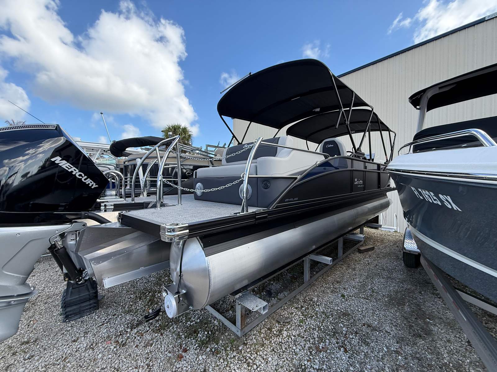 The 2026 Barletta Cabrio C24UE is a brand-new pontoon boat measuring an impressive 25.17 feet in length. Its spacious layout and premium construction make it ideal for families, friends, and anyone who loves spending time on the water. The Cabrio C24UE’s sleek Blue Sapphire Railskin, complemented by the Blackout Package Cabrio, ensures you’ll turn heads at every marina and lakefront. The Marquesan Gray with Onyx furniture and Amore Gray flooring create a sophisticated and inviting atmosphere, perfect for entertaining or unwinding after a day of fun.