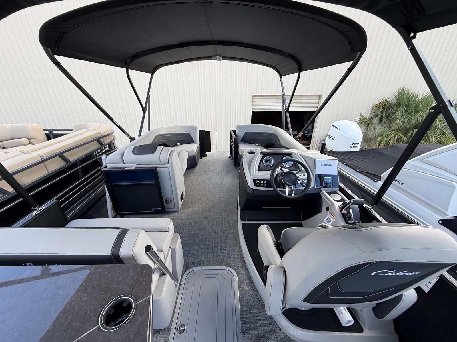 The Barletta Cabrio C24UE is as practical as it is luxurious. The triple toon package with midship storage provides ample room for water toys, fishing gear, and personal items, keeping your deck clutter-free and organized. Hydraulic and power assist steering make docking and maneuvering a breeze, even for less experienced boaters. The Mercury engine’s fuel efficiency means you can spend more time enjoying the water and less time at the pump.Digital gauges and advanced controls simplify operation, allowing you to focus on fun rather than fussing with complicated systems. The durable Coastal Edition Cabrio construction ensures your investment is protected, whether you’re boating in freshwater lakes or coastal environments.
