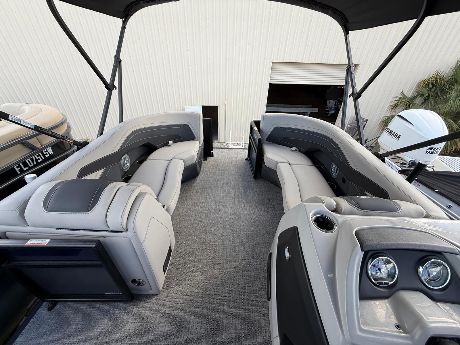 Powering the Barletta Cabrio C24UE is a robust Mercury (D) 200L FourStroke DTS engine, delivering an impressive 250 horsepower. This setup provides smooth, reliable performance whether you’re cruising, towing water toys, or exploring new coves. The Mercury Digital DTS Pre-Rig for VERADO engines with Vessel Link ensures seamless integration and precise control, while the hydraulic and power assist steering make handling effortless, even in tight quarters. The triple toon package with midship storage enhances stability and ride quality, allowing you to glide across the water with confidence and comfort.