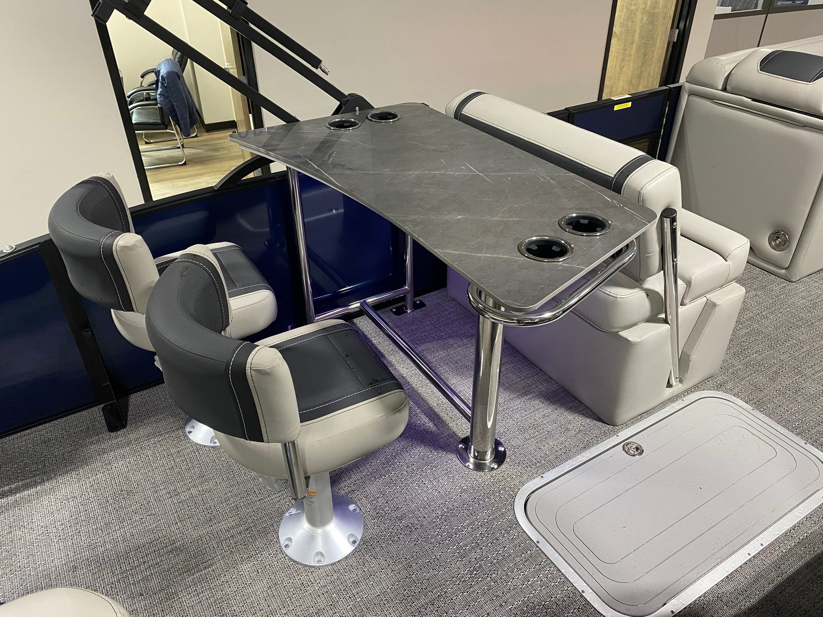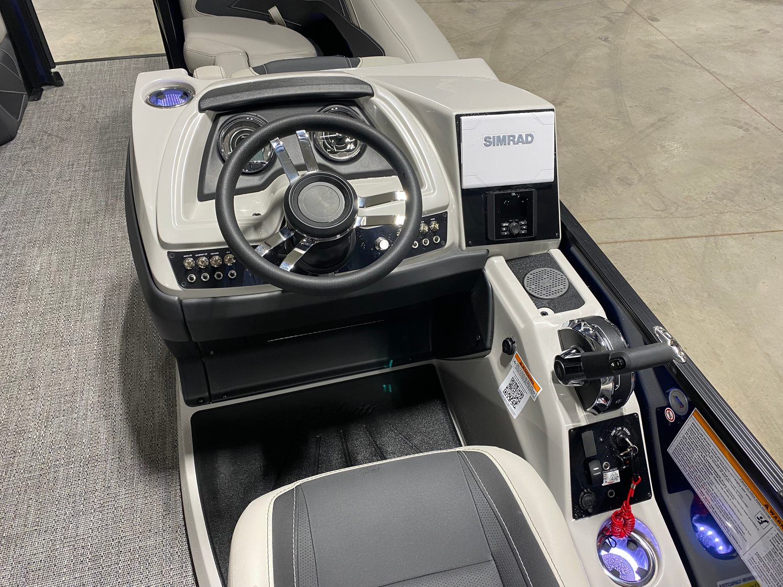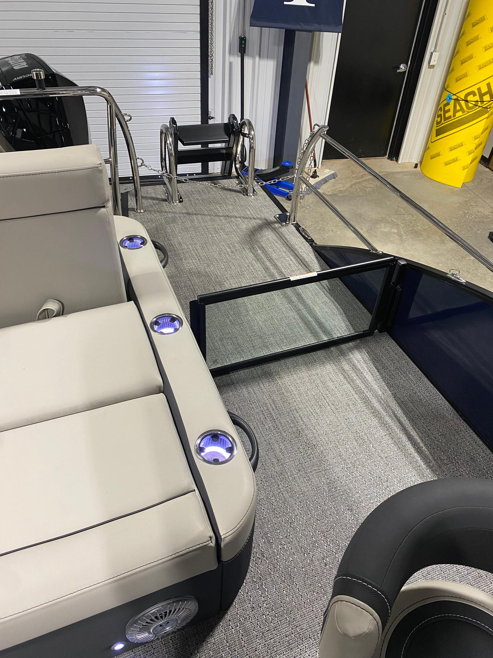 The Barletta Cabrio C24UE is as practical as it is luxurious. The triple toon package with midship storage offers plenty of room for water toys, fishing gear, or picnic supplies, keeping your deck clutter-free and organized. The pontoon’s length and design make docking straightforward, even for less experienced boaters. Fuel efficiency is enhanced by the Mercury FourStroke engine, allowing you to enjoy longer days on the water without frequent refueling stops. The durable Amore Gray flooring is easy to clean, so you can spend more time enjoying your boat and less time on maintenance.