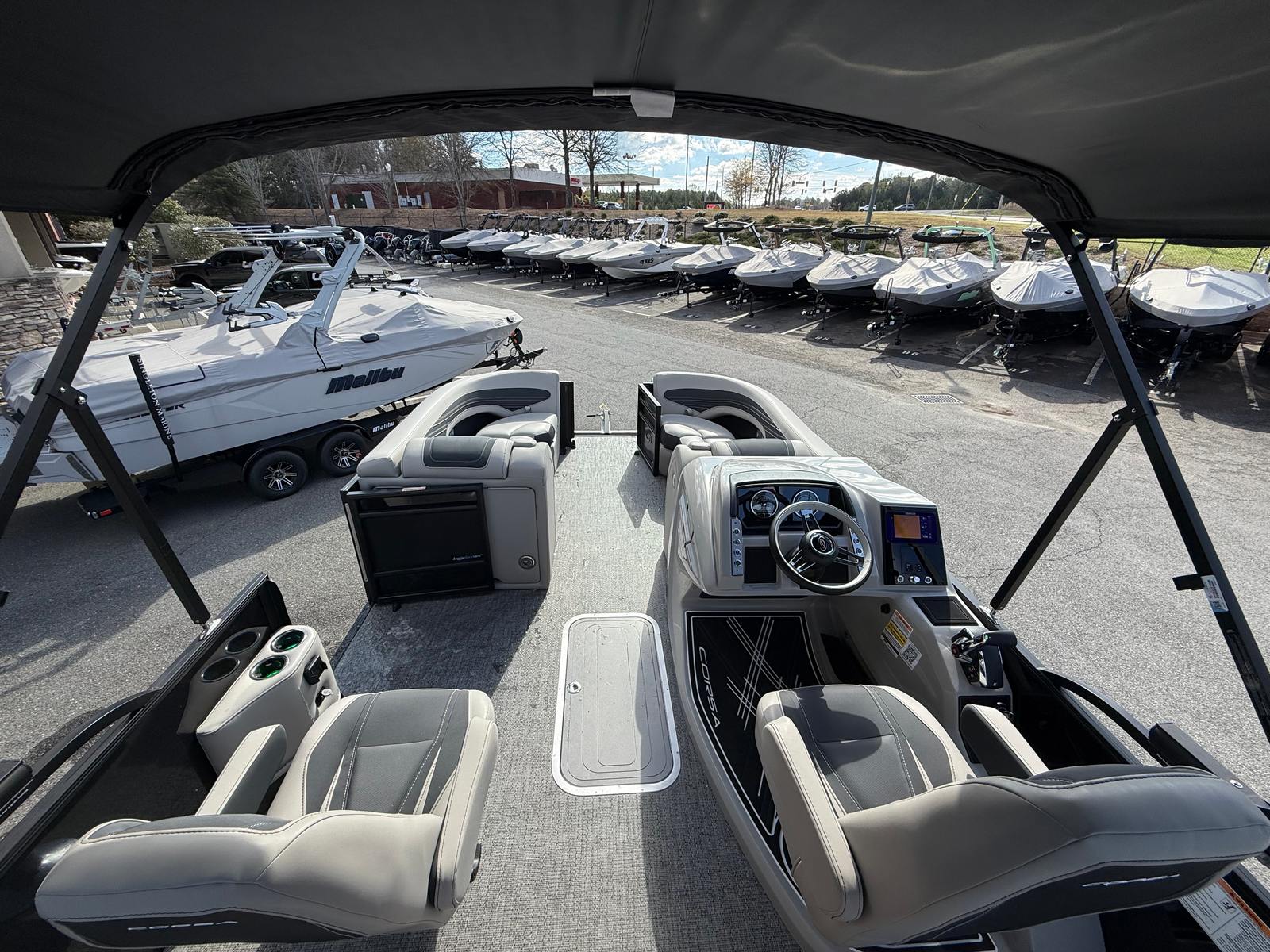 The 2026 Barletta Corsa 23UC is a pontoon boat for sale that combines striking design, powerful performance, and premium features for an unmatched boating experience. With its Mercury 250L Verado V8 engine, Black Diamond railskin, Blackout Package Corsa, Soft Touch Marquesan Gray furniture, Amore Gray flooring, and advanced digital controls, this Barletta boat for sale is ready to deliver endless fun and relaxation. Whether you’re seeking comfort, style, or versatility, the Corsa 23UC stands out as a top choice for anyone looking to elevate their time on the water. Don’t miss your chance to own this exceptional pontoon—contact the dealer today to learn more and start your next adventure.
