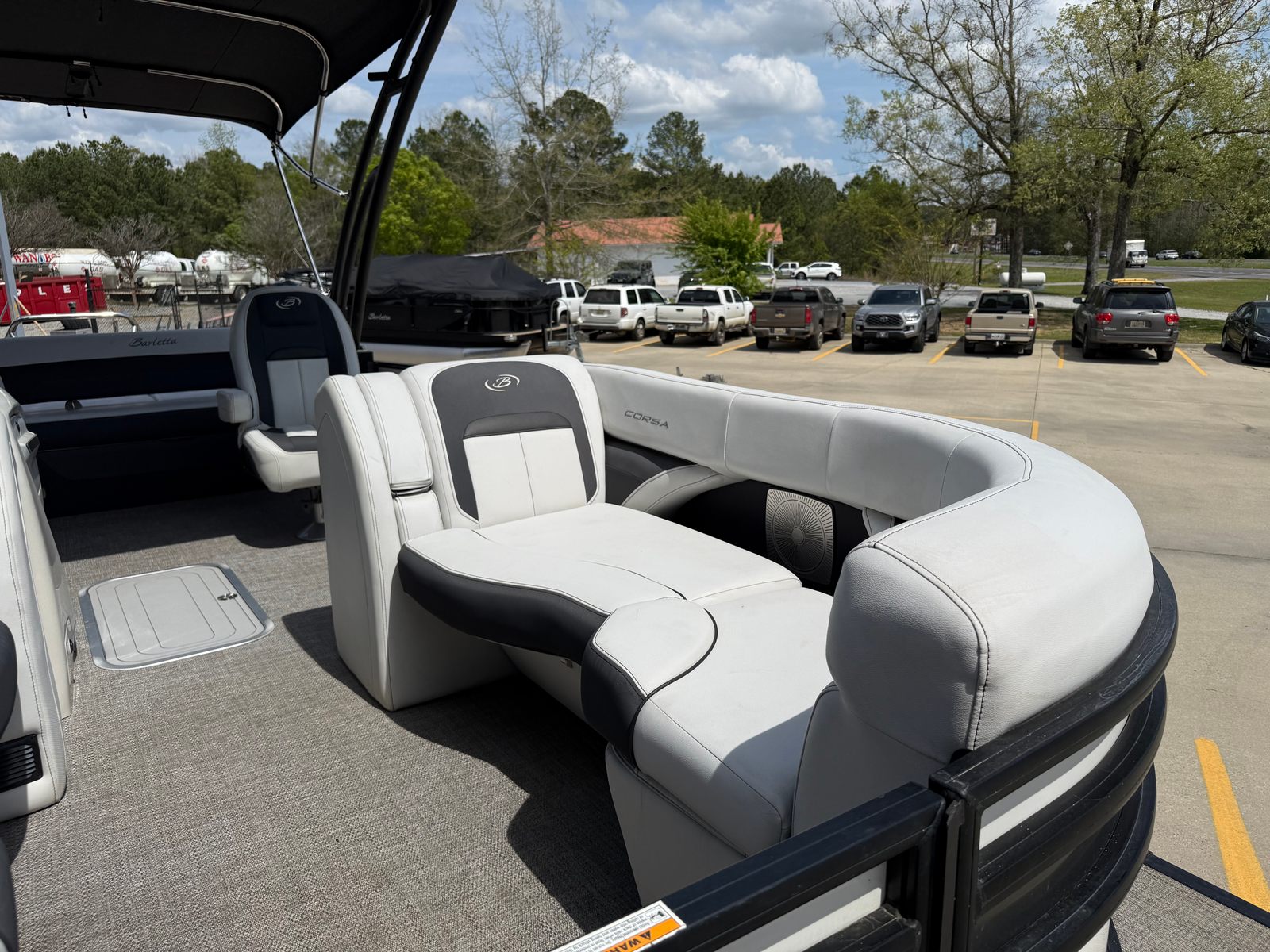 The 2021 Barletta Corsa 23UCA is as practical as it is enjoyable. Its spacious deck offers plenty of storage options for gear, water toys, and personal belongings, keeping the area tidy and organized. The pontoon’s design makes docking and maneuvering straightforward, even for those new to boating. Fuel efficiency is another highlight, allowing you to spend more time on the water and less time at the pump.This used pontoon boat is perfect for a wide range of activities, from leisurely cruises and fishing trips to water sports and family picnics. The sturdy construction and reliable engine mean you can venture out with confidence, knowing that your boat is built to handle whatever the day brings. The Corsa 23UCA’s versatility makes it a smart investment for anyone looking to maximize their time on the water.