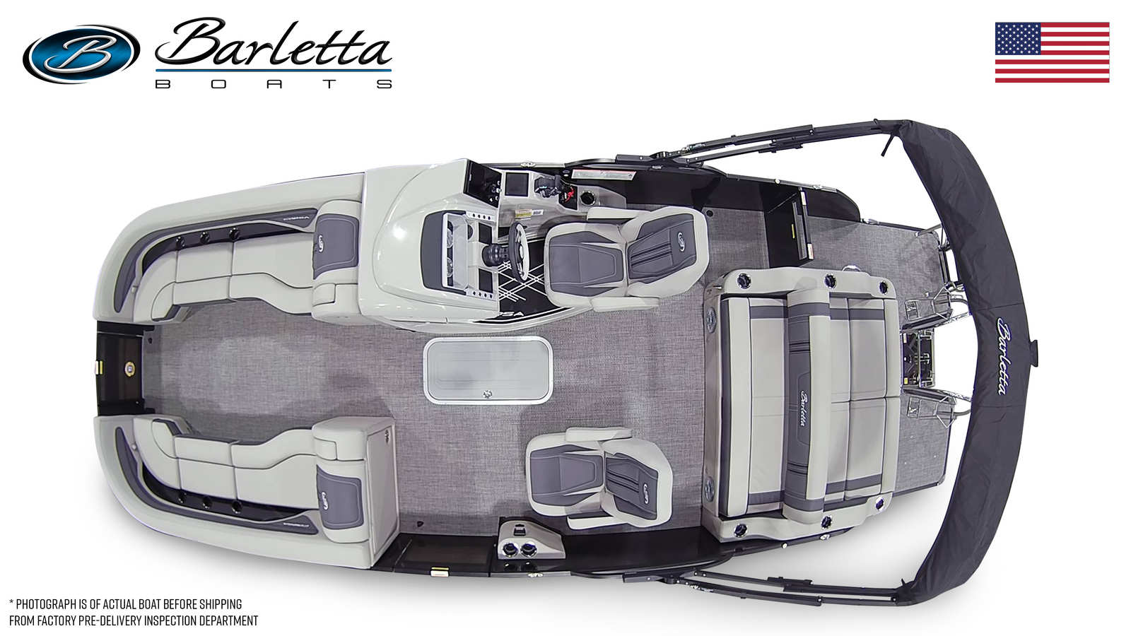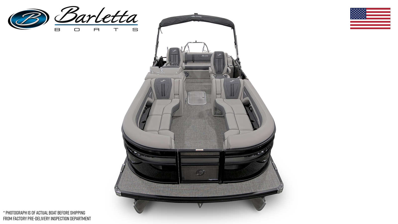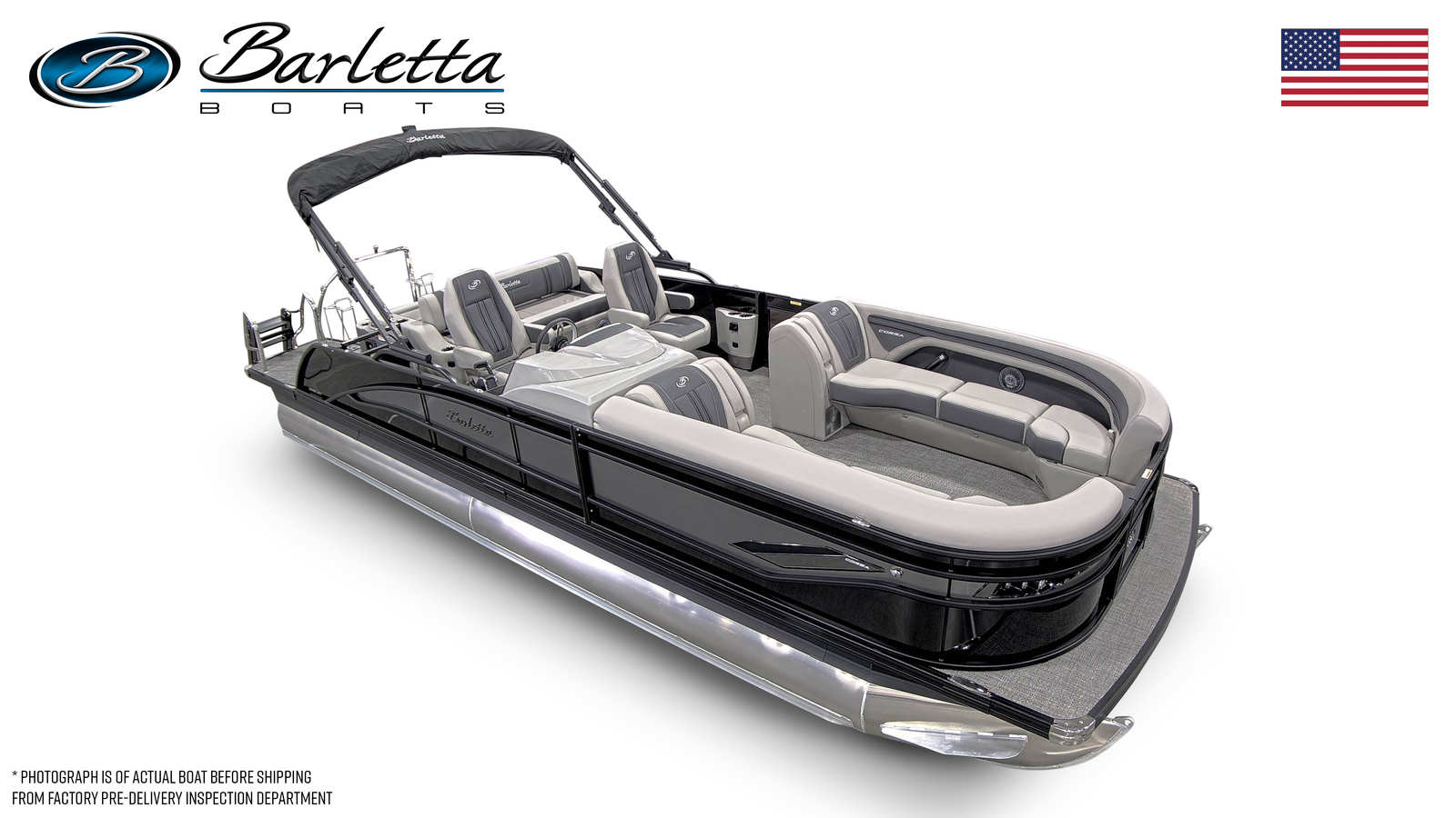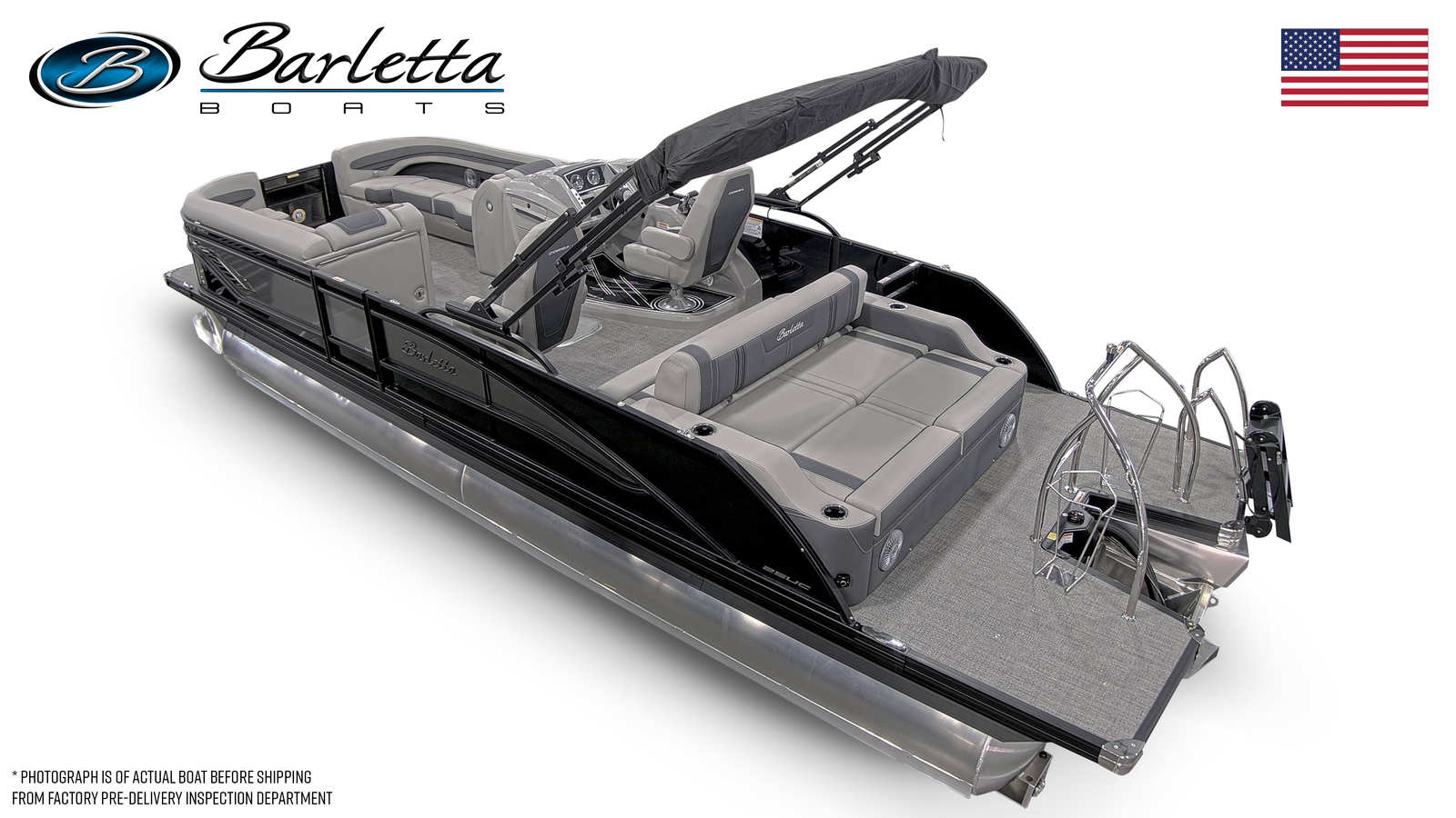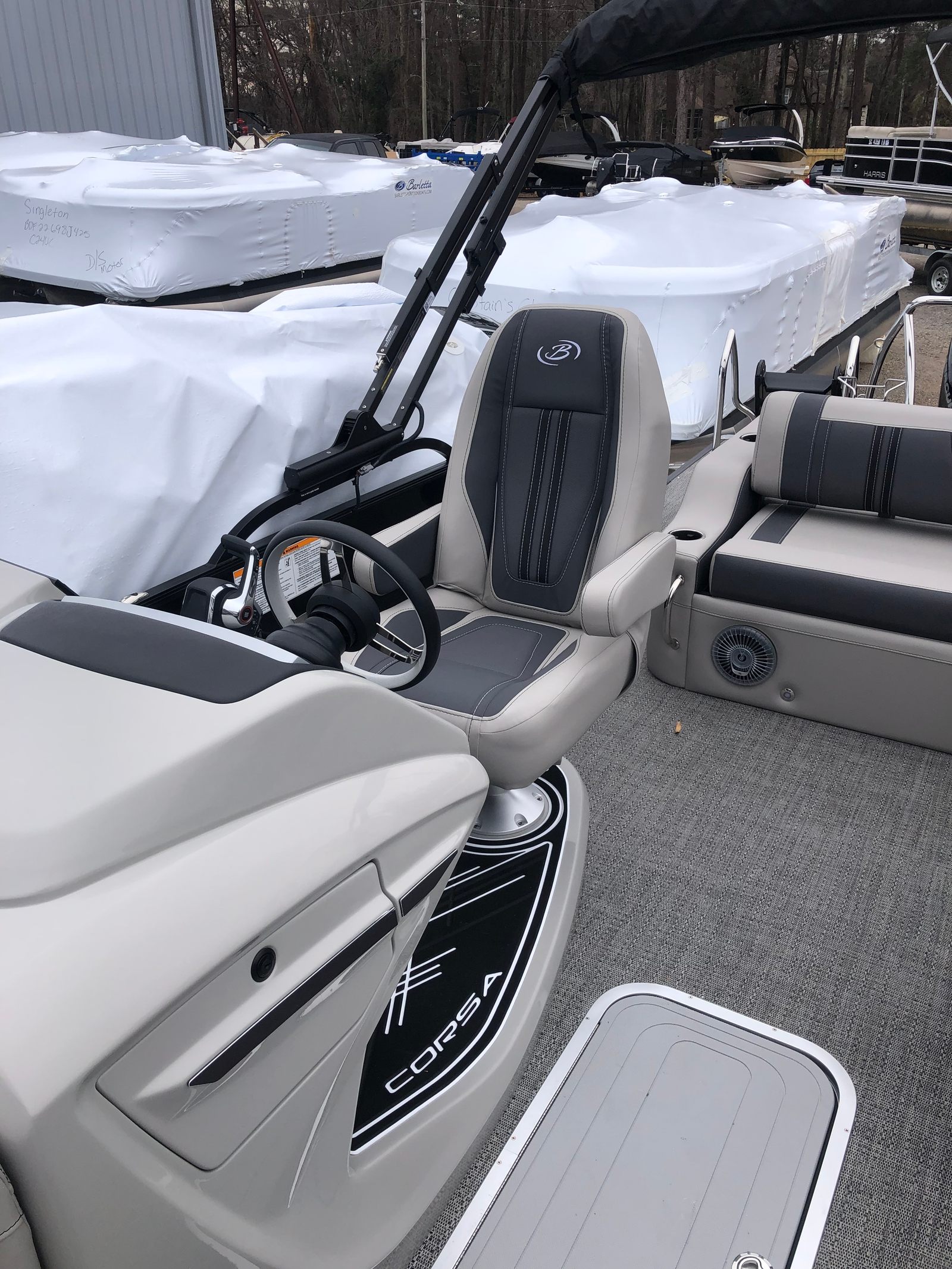 The 2025 Barletta Corsa 25UC is packed with features designed to maximize comfort, convenience, and style. The Soft Touch Marquesan Gray furniture with Carbon Accent creates a plush, inviting atmosphere, perfect for relaxing or entertaining guests. Amore Gray flooring adds a touch of elegance while providing durability and easy maintenance. The Triple Toon Package with midship storage not only boosts performance but also offers practical storage solutions for all your gear, making it easy to keep the deck organized and clutter-free. The exterior is adorned with a stainless steel flag pole and American flag, adding a patriotic touch and enhancing the boat’s overall appeal. Rigging includes a drop ship engine with no prop, ensuring you have the flexibility to customize your setup as desired.