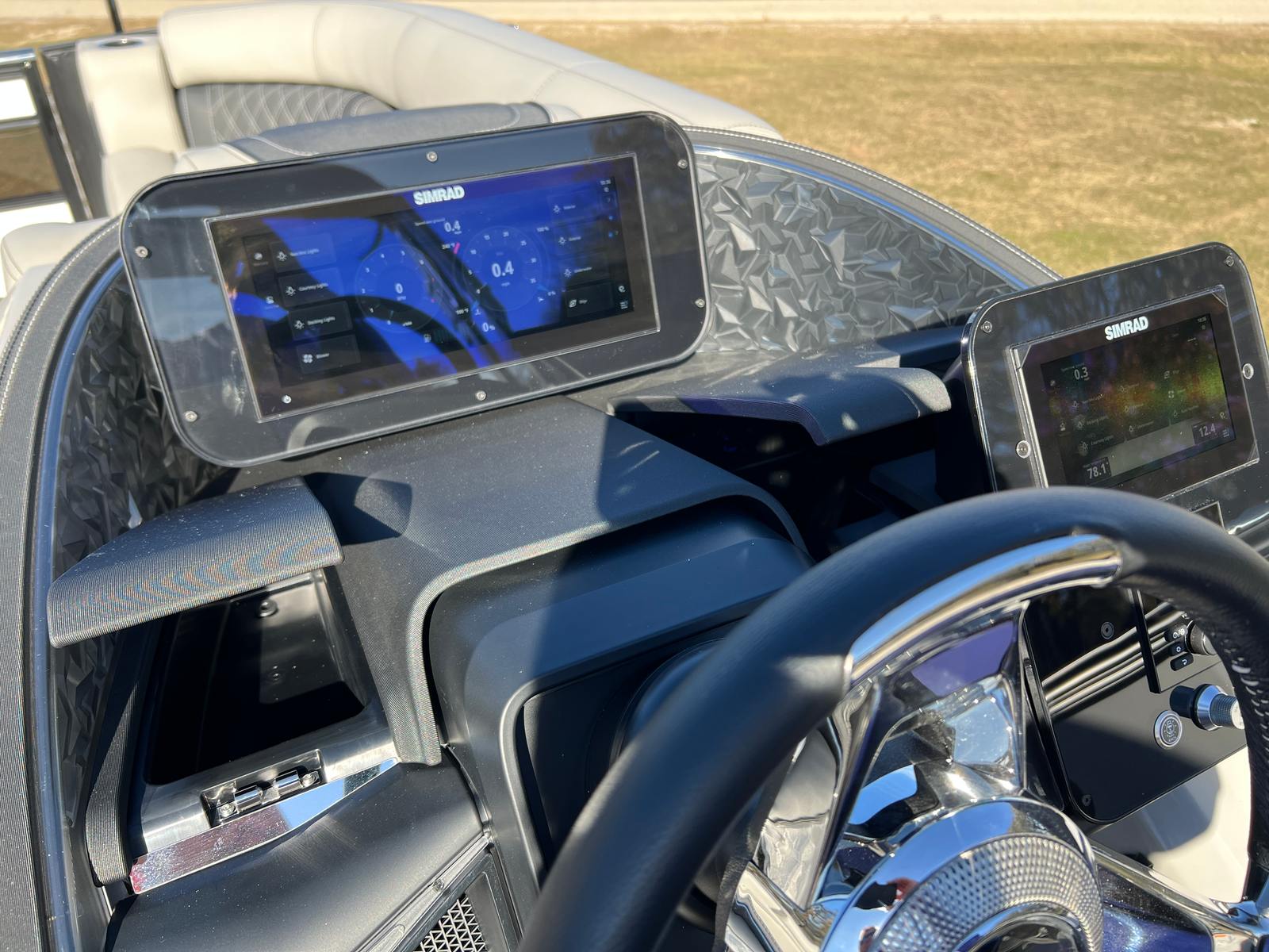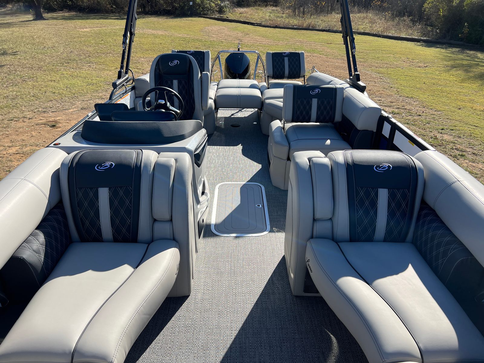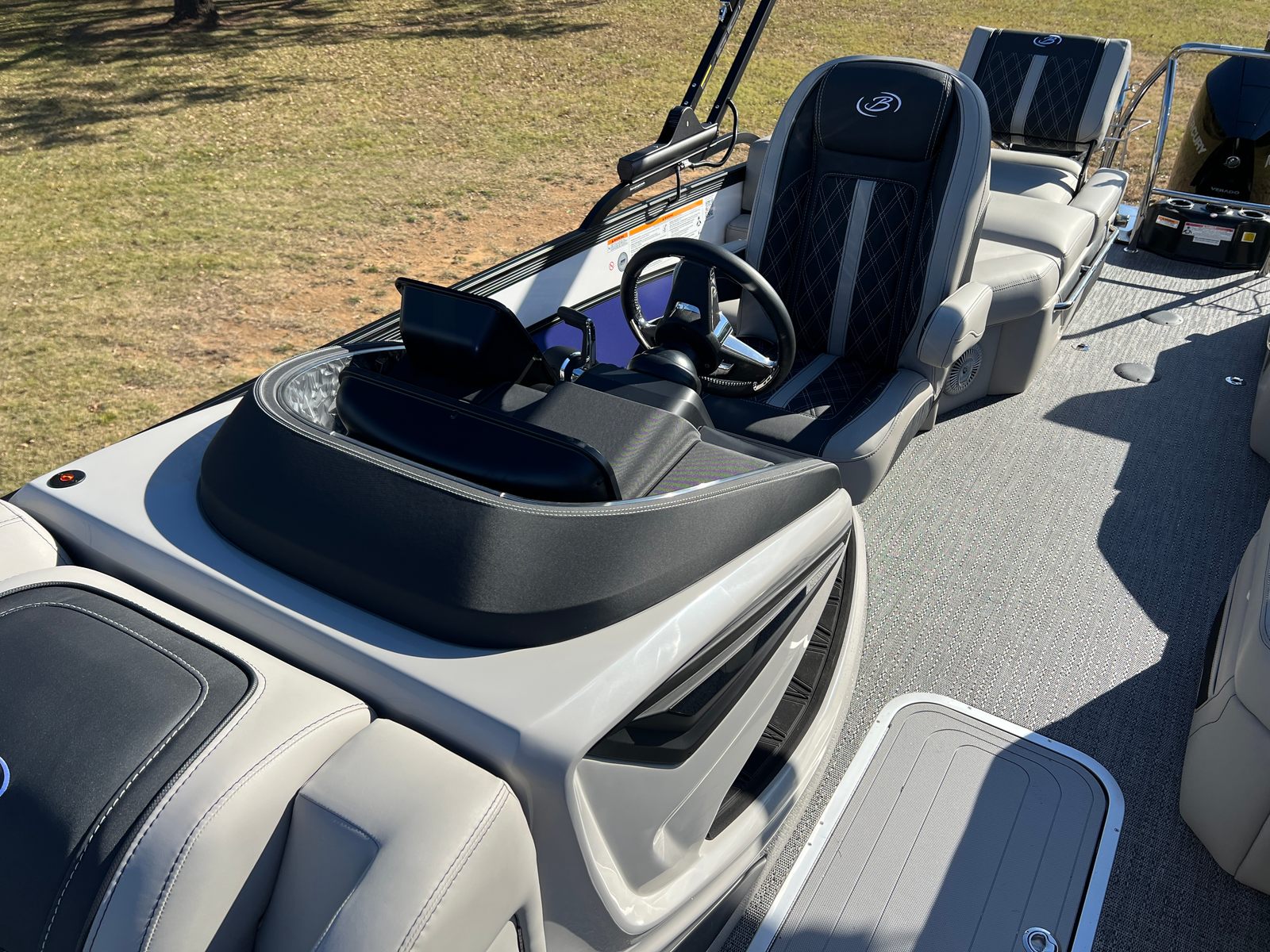 The Barletta Lusso L23M is loaded with features designed to enhance your time on the water. The onboard battery charger with two batteries ensures you have reliable power for all your adventures, while the Metal Jacket Protectant keeps your pontoon looking pristine season after season. The thoughtfully selected Marquesan Gray with Onyx furniture provides plush, supportive seating, perfect for lounging or entertaining guests. The Amore Gray flooring is both stylish and practical, offering a comfortable, slip-resistant surface that is easy to maintain. The Blackout Package Lusso railskin not only adds visual appeal but also offers added protection and durability. The Mercury Digital DTS Pre-Rig and Vessel Link system streamline engine management, giving you intuitive control and peace of mind. Hydraulic and power assist steering, along with digital gauges, ensure a smooth and responsive ride, while the stainless steel prop enhances performance and longevity.