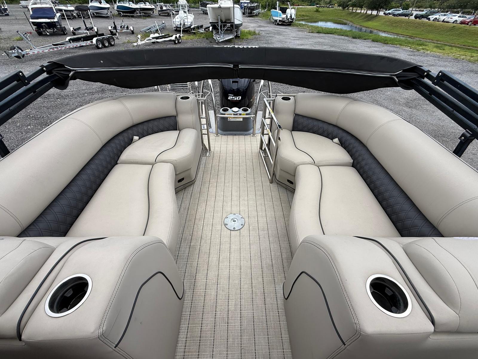 Powering this impressive pontoon is a single engine with 250 horsepower, delivering a thrilling yet smooth ride every time you hit the water. With only 32 engine hours, this used pontoon boat for sale offers the reliability and longevity you would expect from a nearly new vessel. The Lusso L23QCSS is engineered for responsive handling and efficient cruising, ensuring you can explore your favorite waterways with confidence. Whether you are gliding across calm lakes or picking up speed for water sports, the performance of this Barletta boat is sure to impress.