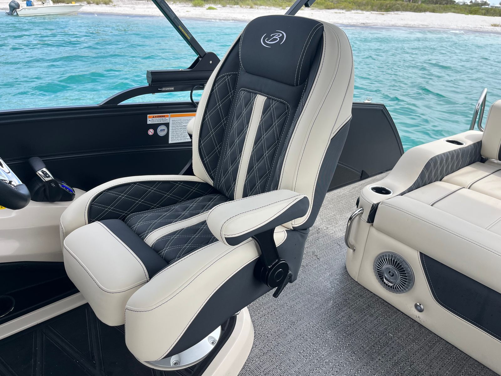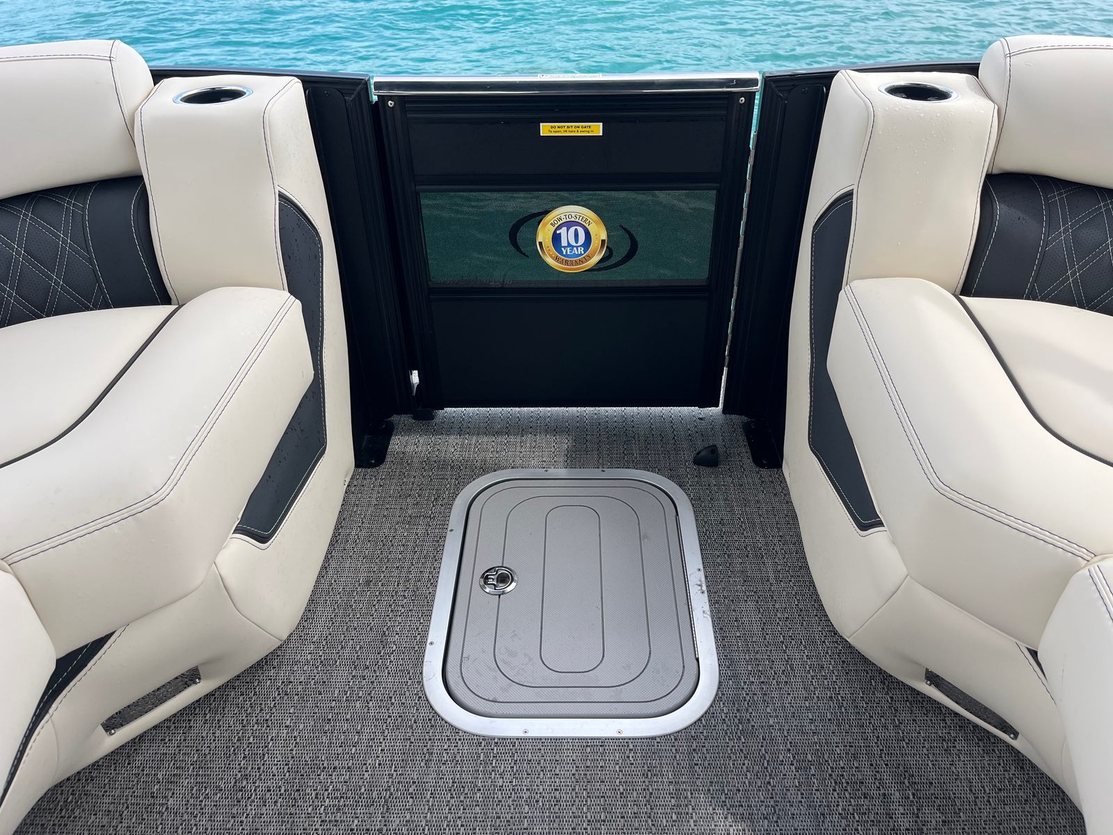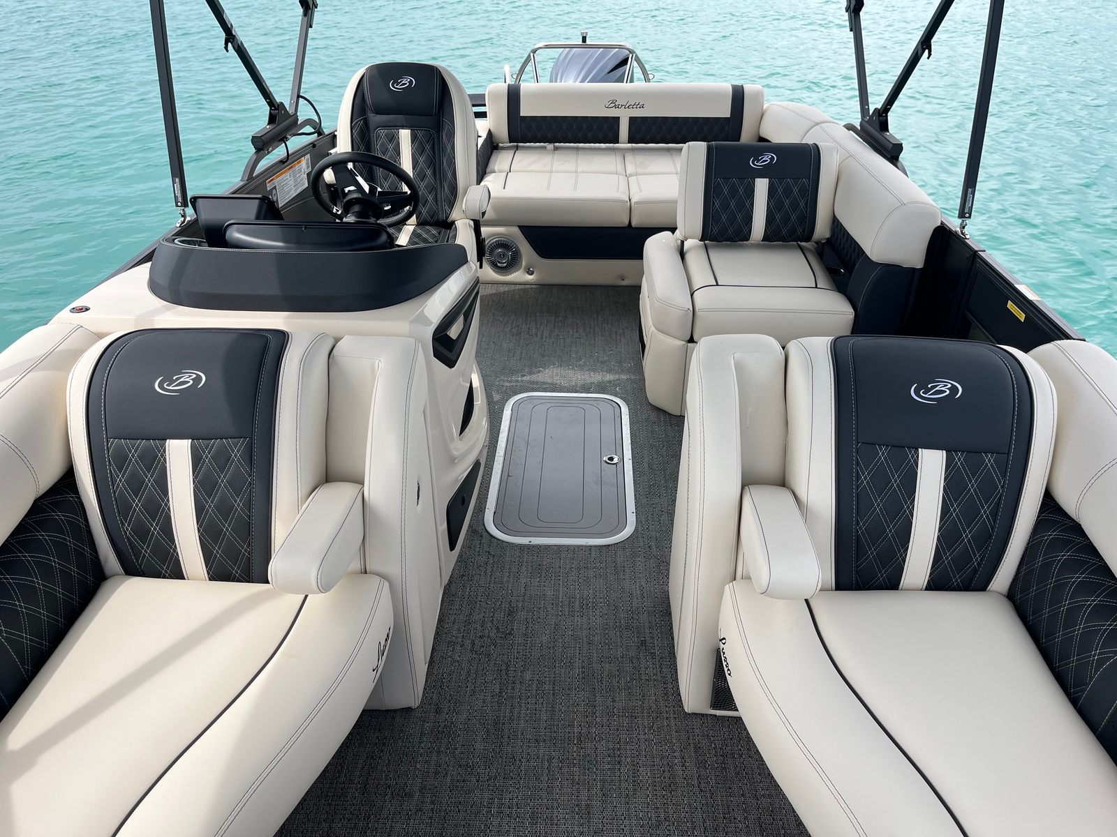 The Barletta Lusso L23U is packed with features that elevate your boating experience to new heights. Its spacious deck layout provides plenty of seating options, perfect for socializing, sunbathing, or enjoying a meal with loved ones. The high-quality upholstery and ergonomic design ensure maximum comfort throughout your journey. Innovative storage solutions are integrated throughout the boat, making it easy to stow away gear, water toys, and personal items without sacrificing space or style.Advanced technology is seamlessly woven into the Lusso L23U’s design, offering intuitive controls and modern conveniences that enhance safety and enjoyment. The pontoon’s sturdy construction and premium materials guarantee longevity and durability, so you can make memories for years to come. Every aspect of this Barletta boat for sale is engineered to provide a superior on-water experience, from its smooth ride to its luxurious finishes.
