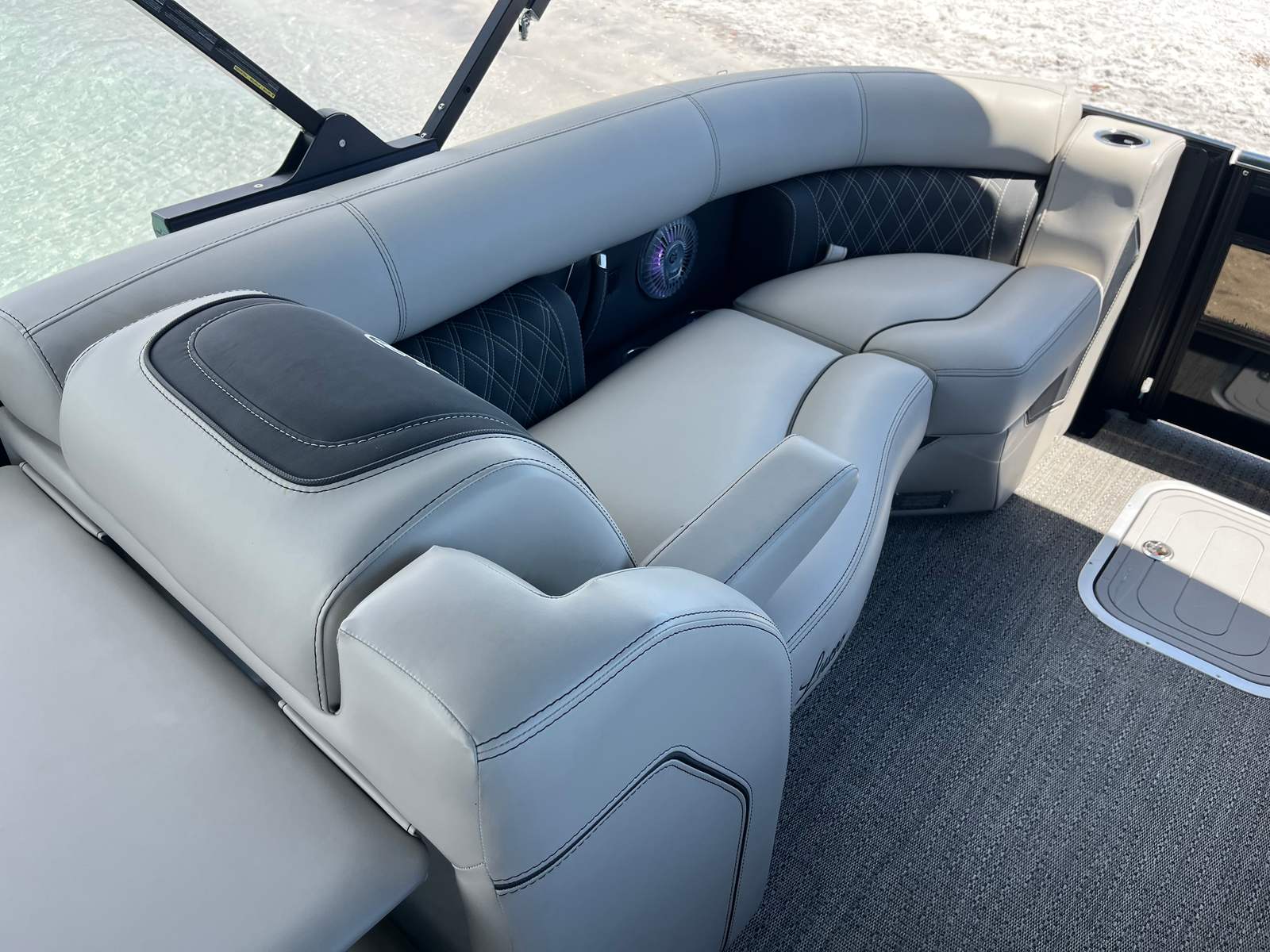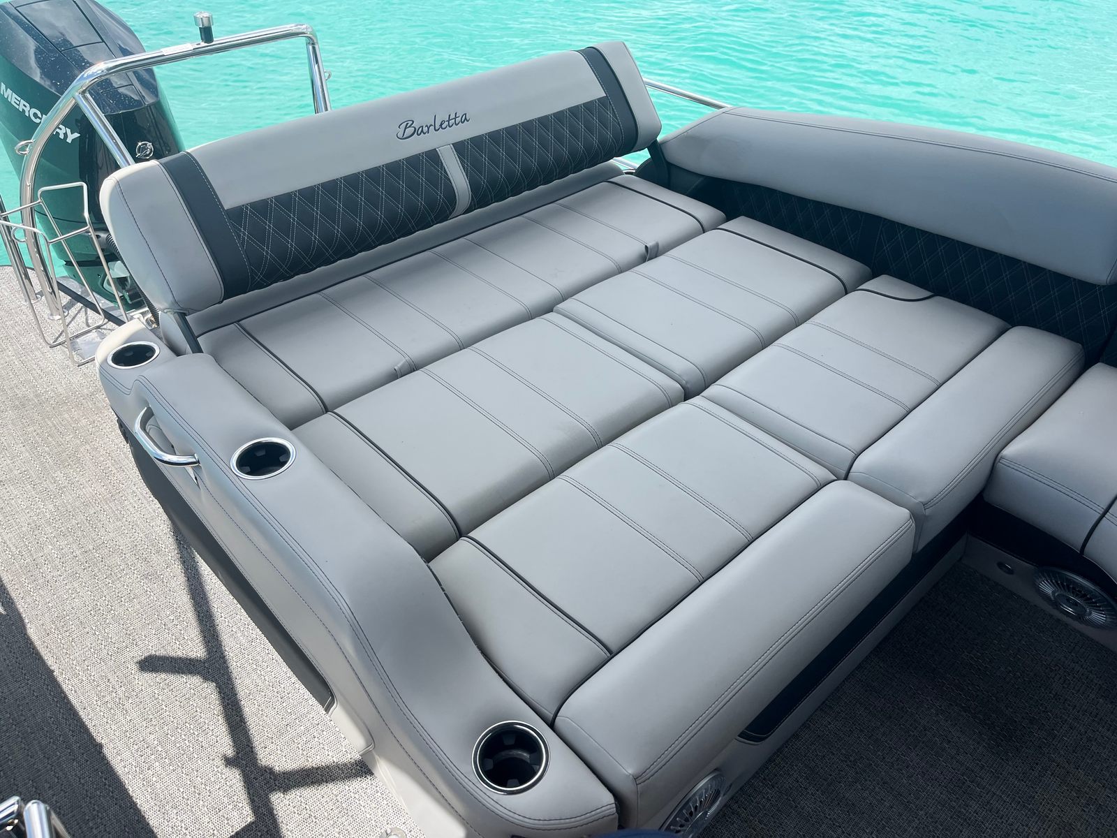 Power and precision come together in the Barletta Lusso L23U, thanks to its robust Mercury (D) 350L V10 Verado engine. With a commanding 350 horsepower at your fingertips, this pontoon delivers exhilarating acceleration and smooth cruising, making it ideal for a variety of water activities. The Mercury Digital Pre-Rig for V10 and the expertly rigged engine with V10 prop ensure optimal performance, responsiveness, and efficiency. Whether you are gliding across calm waters or picking up speed for watersports, the Lusso L23U’s advanced propulsion system provides a seamless and enjoyable ride.