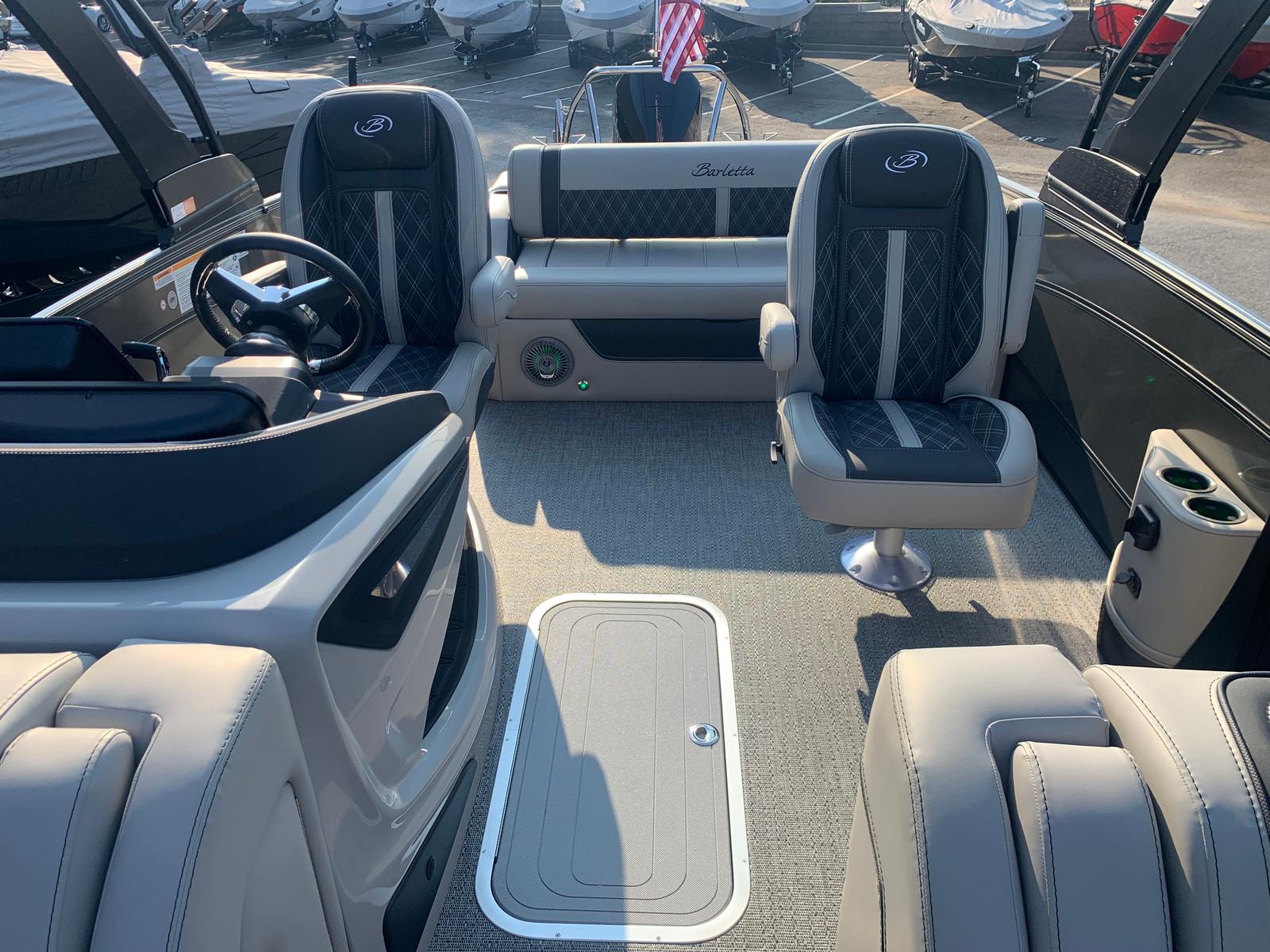 The 2026 Barletta Lusso L23UC pontoon boat for sale is a standout choice for anyone seeking the ultimate combination of luxury, performance, and versatility. With its powerful Mercury 300L Verado V8 engine, advanced steering systems, and stylish features like Amore Gray flooring, Sport Bimini canvas, and Blackout Package Lusso railskin, this pontoon is designed to impress both on and off the water.Enjoy the benefits of spacious comfort, innovative technology, and eye-catching design, all wrapped up in a new, ready-to-enjoy package. If you’re ready to make unforgettable memories and experience the best that boating has to offer, the Barletta Lusso L23UC is waiting to welcome you aboard. Contact your local dealer today to learn more about this exceptional Barletta boat for sale and start your next adventure in style.