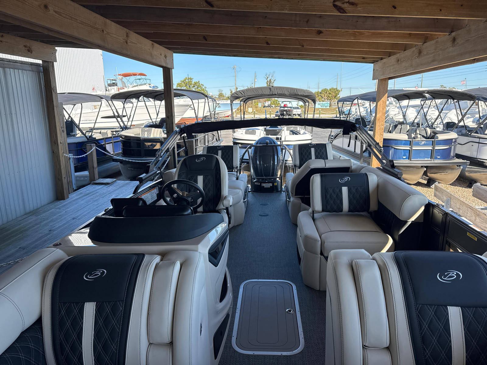 Owning the Barletta Lusso L25M Pontoon means embracing a lifestyle of fun, relaxation, and social connection. The spacious layout is perfect for hosting gatherings, enjoying meals, or simply lounging in comfort. The high-quality furniture and flooring create a welcoming environment, making every trip feel like a luxury getaway. The double bimini system offers flexible shade, allowing you to adapt to changing weather and maximize your enjoyment on the water. With advanced digital controls and integrated electric steering, navigating your pontoon is effortless, giving you more time to focus on making memories. The powerful Yamaha engine ensures you can explore further and faster, opening up new possibilities for adventure.