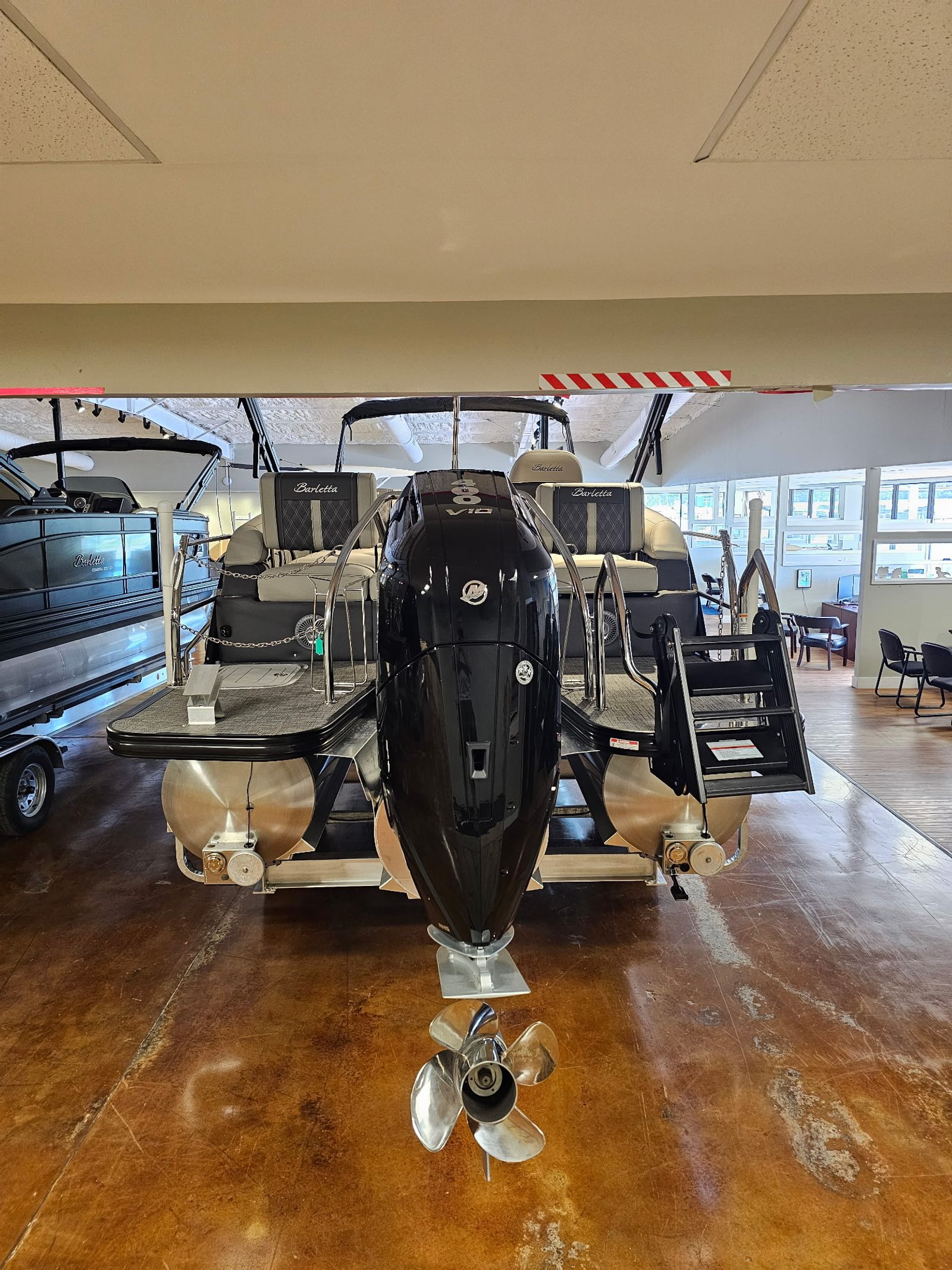The 2025 Barletta Lusso L25M is more than just a pontoon boat for sale – it is an invitation to elevate your time on the water. With its powerful Mercury 400L V10 Verado engine, striking Gray Moonstone color scheme, Blackout Package Lusso, Marquesan Gray furniture, Amore Gray flooring, Coastal Edition Lusso features, Mercury Digital Pre-Rig for V10, Drop Ship Engine with V10 Prop, and double bimini setup, this Barletta boat for sale offers unmatched style, performance, and comfort.Whether you are seeking thrilling adventures, relaxing getaways, or memorable moments with loved ones, the Lusso L25M delivers on every front. Discover the joy of owning a pontoon that truly stands out from the crowd. Contact your local dealer today to learn more about the Barletta Lusso L25M and start your next chapter of boating excellence.
