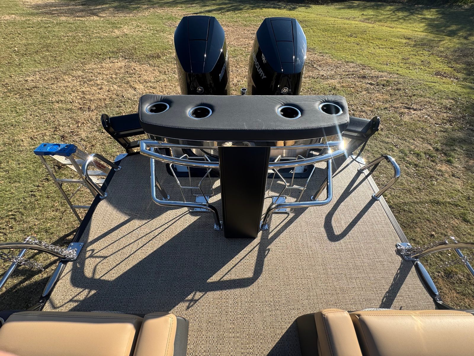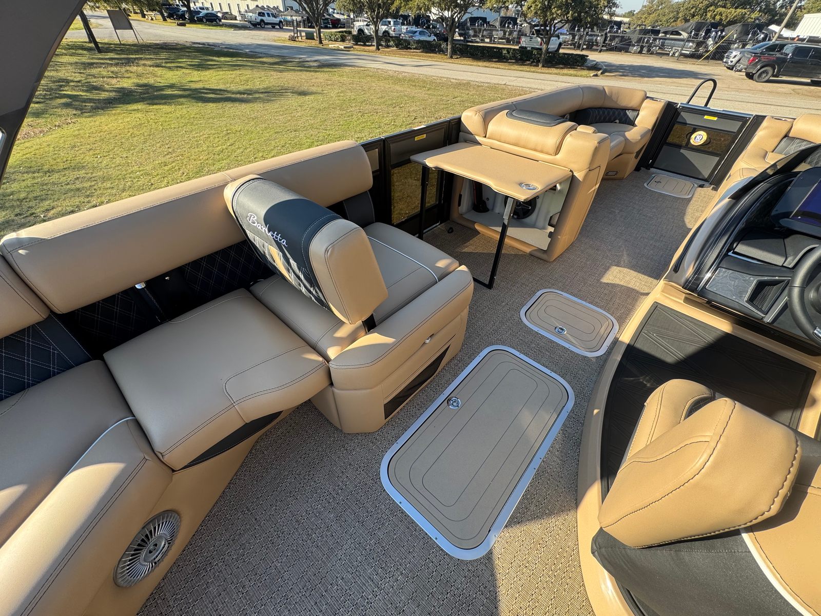 In summary, the 2026 Barletta Lusso L25MAT is a remarkable pontoon boat for sale that combines luxury, performance, and practicality in one stunning package. With its impressive 28.25-foot length, twin Mercury 400L V10 Verado engines delivering 800 horsepower, and a host of premium features—including Gray Moonstone and Black Diamond exterior colors, Carmella Tan with Onyx furniture, Amore Tan flooring, and elegant white underdeck and underwater lighting—this Barletta boat for sale offers an unparalleled boating experience.Whether you are looking to entertain, relax, or explore, the Lusso L25MAT is designed to exceed your expectations at every turn. Don’t miss the opportunity to own this exceptional pontoon and elevate your time on the water. Contact the dealer today to learn more about the Barletta Lusso L25MAT and make your boating dreams a reality.