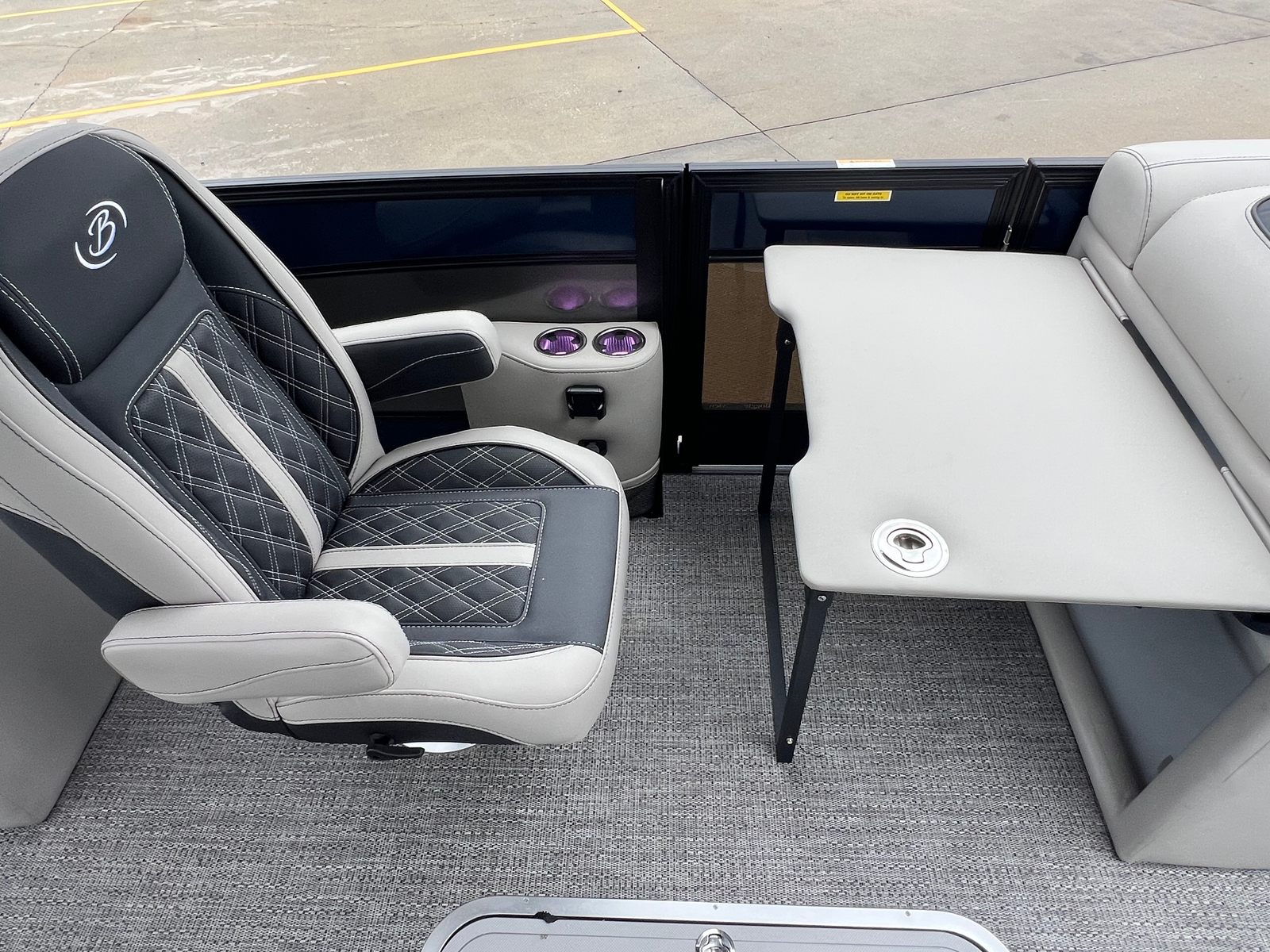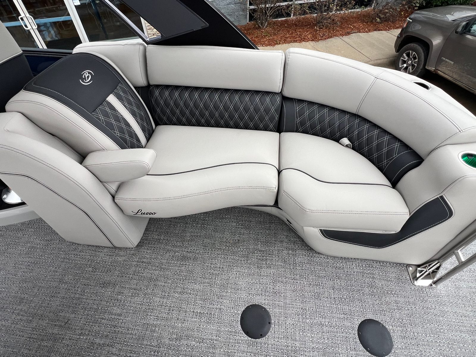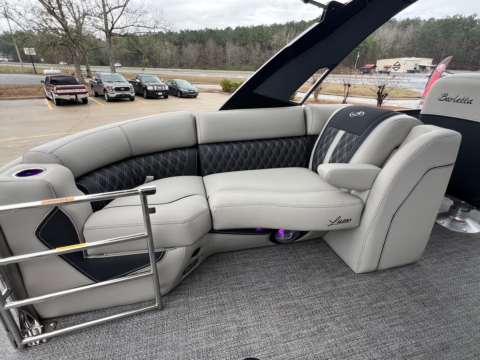 Step aboard the Barletta Lusso L25QCSSA and experience a world of luxury and innovation. The Blackout Package Lusso railskin adds a bold, modern touch to the exterior, while the Marquesan Gray with Onyx furniture provides a plush and inviting atmosphere for you and your guests. The Amore Gray flooring is both stylish and durable, offering a comfortable surface that is easy to maintain. The onboard battery charger with two batteries ensures you have reliable power for all your adventures, while the Metal Jacket Protectant helps preserve the boat’s pristine appearance for years to come.