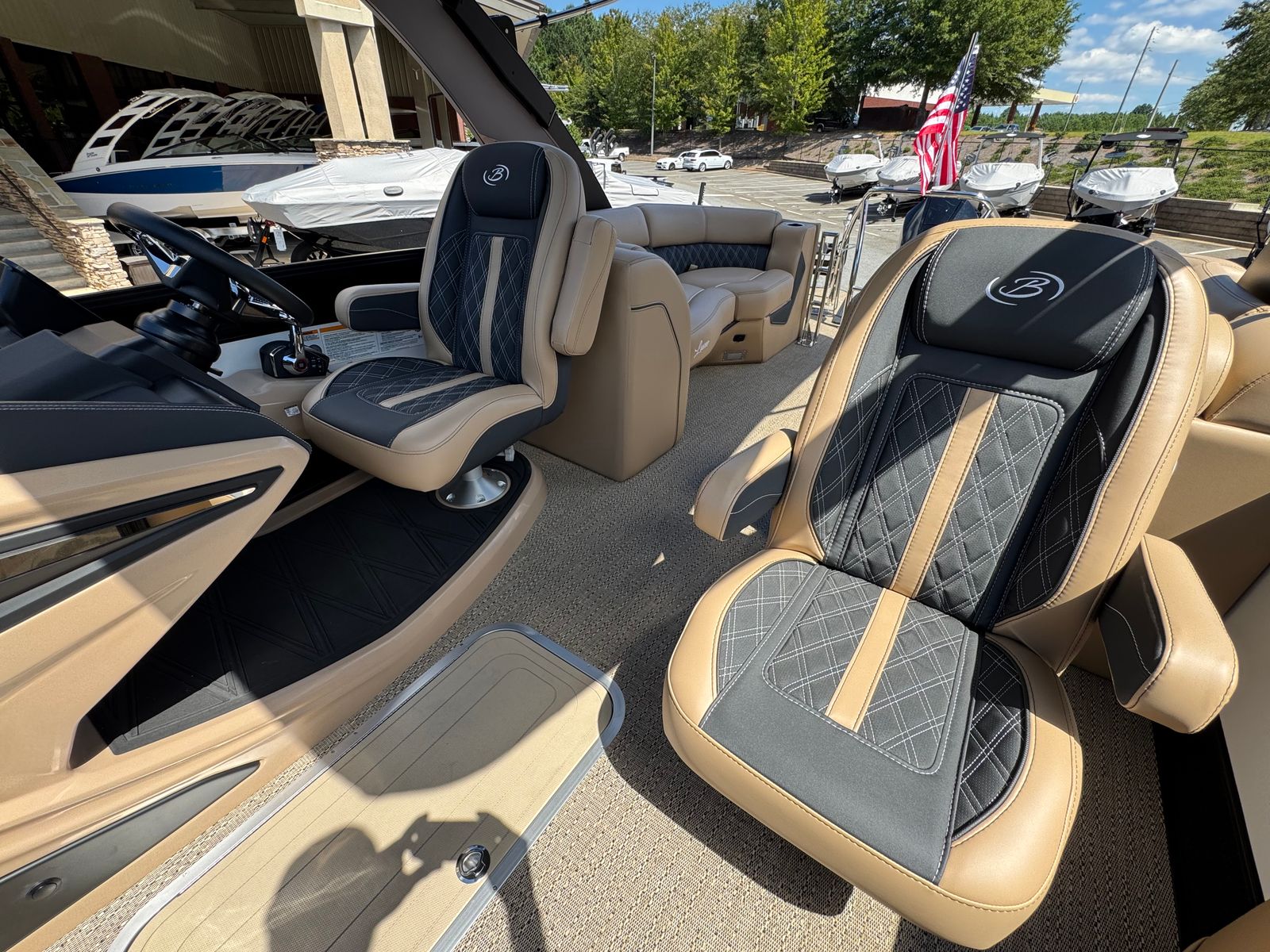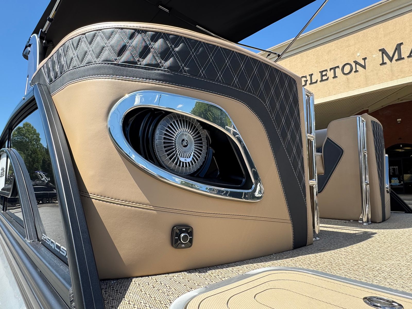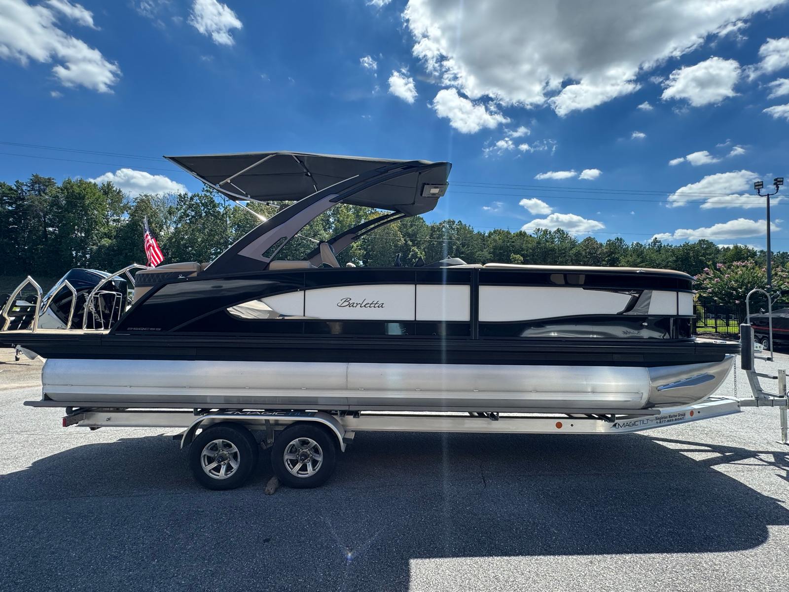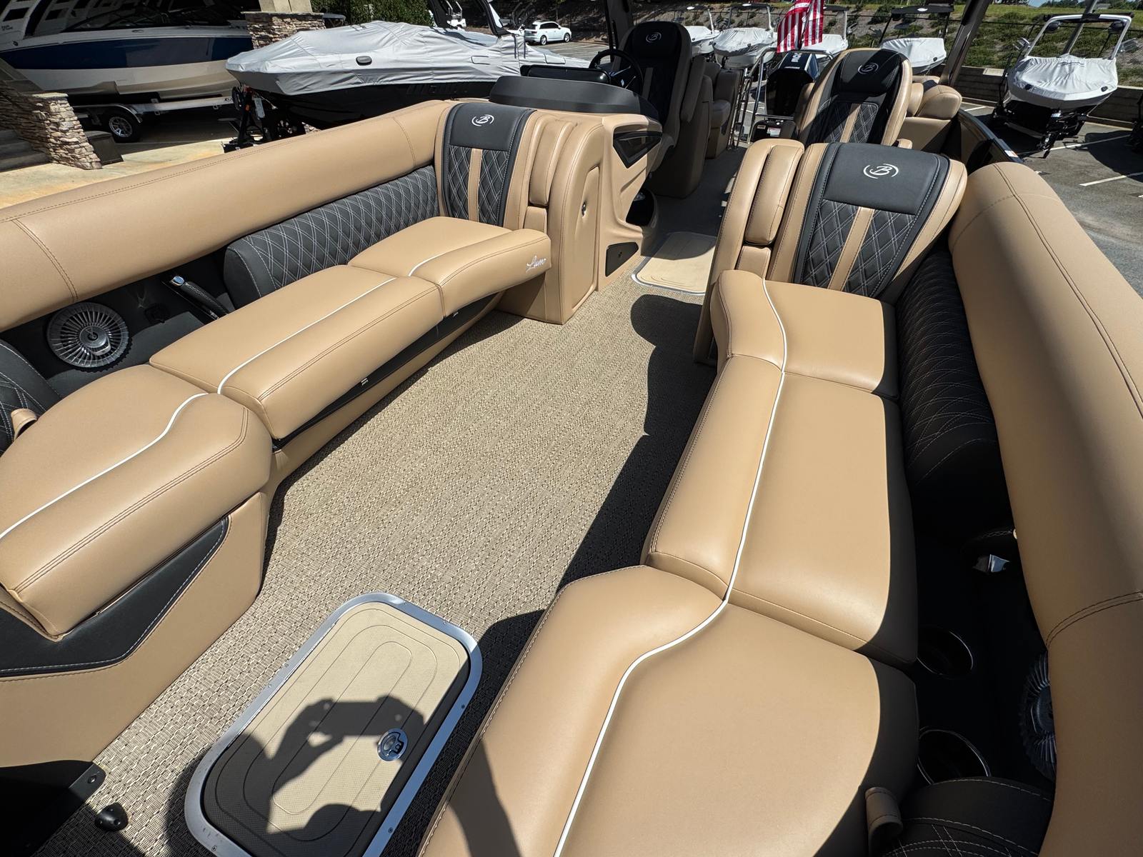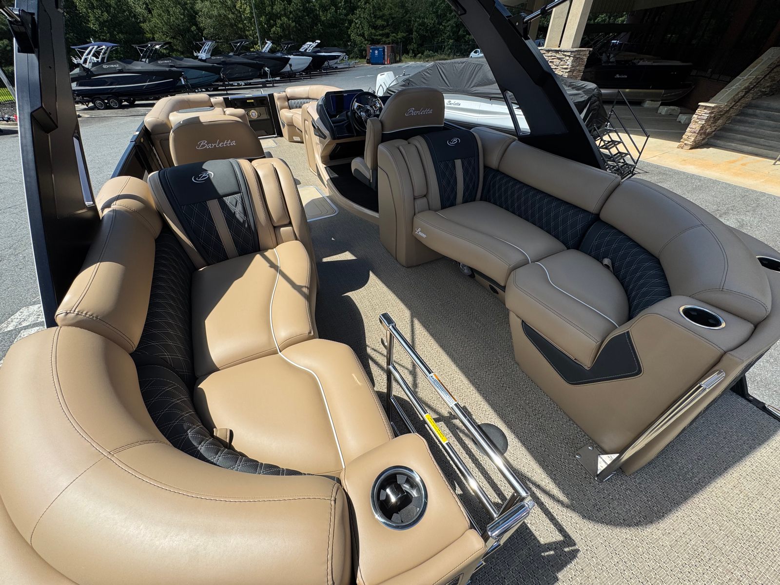In summary, the 2026 Barletta Lusso L25QCSSA pontoon boat for sale is a remarkable blend of style, performance, and innovation. With its powerful Mercury 300L Verado V8 engine, luxurious Amore Tan flooring, Carmella Tan with Onyx furniture, and advanced features like hydraulic and power assist steering, digital gauges, and ambient exterior lighting, this boat is designed to impress at every turn. The Black Diamond sweep color, Winter White accents, and Blackout Package Lusso railskin package add a touch of sophistication that sets it apart from the crowd.Whether you’re seeking a Barletta boat for sale for family fun, social gatherings, fishing adventures, or luxury escapes, the Lusso L25QCSSA delivers an unparalleled boating experience. Discover the joy of owning a pontoon boat that combines comfort, convenience, and excitement in one stunning package. Contact your local dealer today to learn more about this exceptional pontoon boat and start making memories on the water.