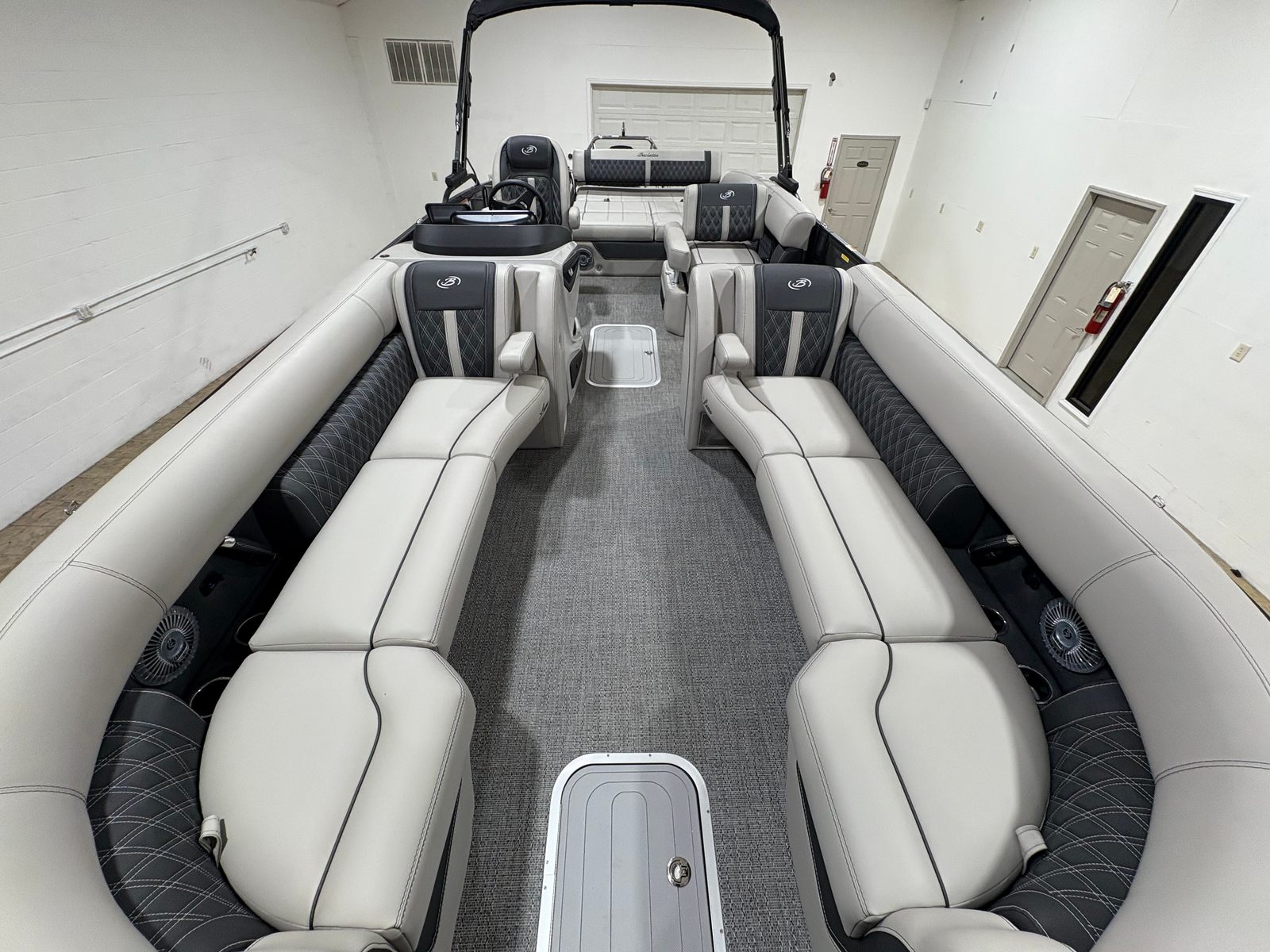 Owning the Barletta Lusso L25U means embracing a lifestyle of fun, relaxation, and social connection. The spacious deck layout provides ample room for guests to lounge, socialize, and soak up the sun. The luxurious furniture and high-quality flooring create a comfortable environment, perfect for long days on the water. The advanced engine and digital controls make operation effortless, allowing you to focus on enjoying your time with family and friends.The Lusso L25U’s striking design and premium finishes ensure you’ll turn heads wherever you go. The combination of Gray Moonstone colors and blackout railskin gives the boat a contemporary edge, while the underwater and underdeck lighting set the mood for evening gatherings. Whether you’re hosting a party, enjoying a quiet sunset, or embarking on a weekend adventure, this pontoon boat delivers the ultimate in comfort and style.