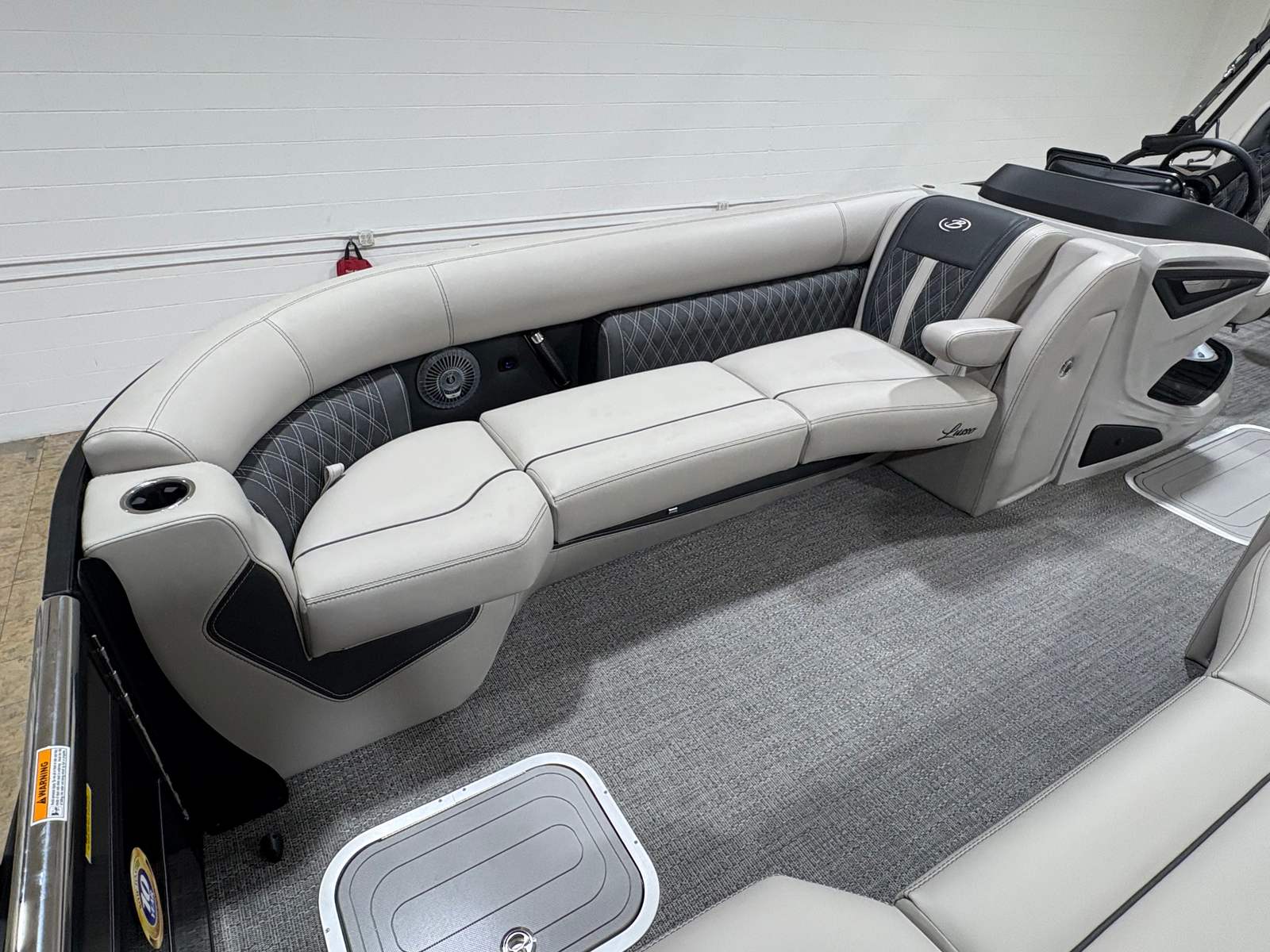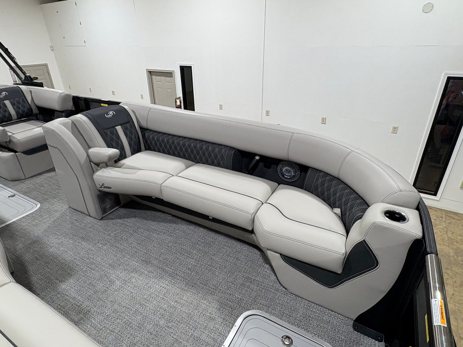 The 2026 Barletta Lusso L25U is a 27.5-foot pontoon boat that seamlessly blends elegance with functionality. As part of Barletta’s renowned Lusso series, this model showcases the brand’s commitment to quality craftsmanship and attention to detail. The Lusso L25U’s spacious layout and modern aesthetics make it an ideal vessel for entertaining, relaxing, and enjoying the great outdoors. Whether you’re planning a day on the lake with family or hosting friends for a sunset cruise, this Barletta boat for sale offers the perfect platform for creating lasting memories.
