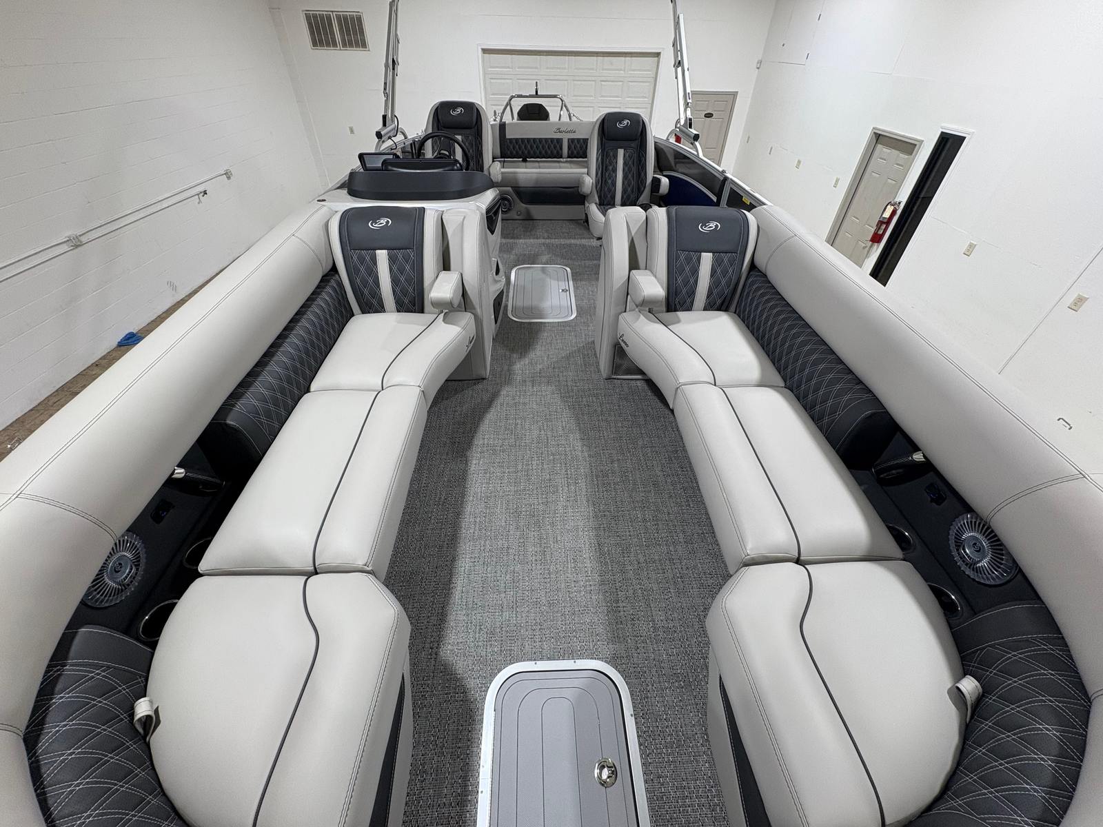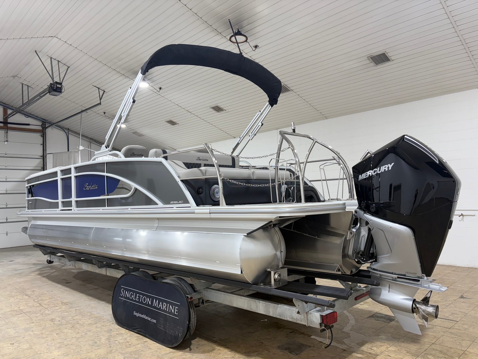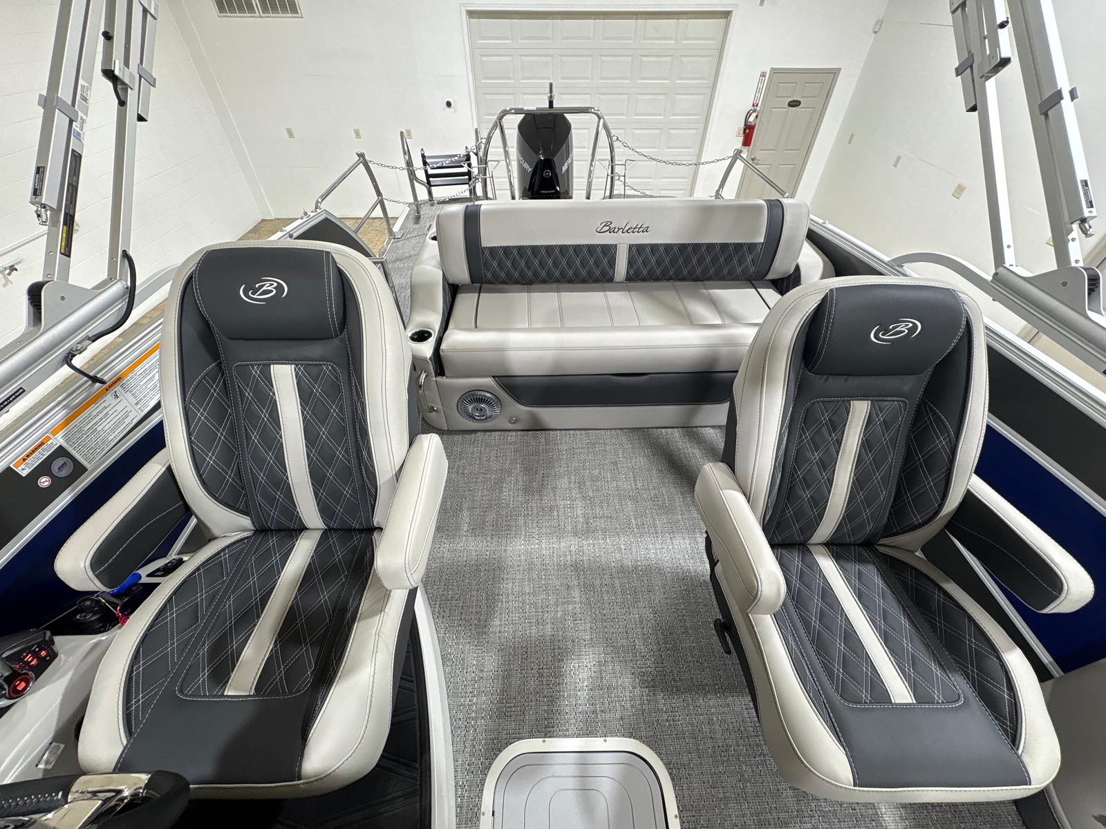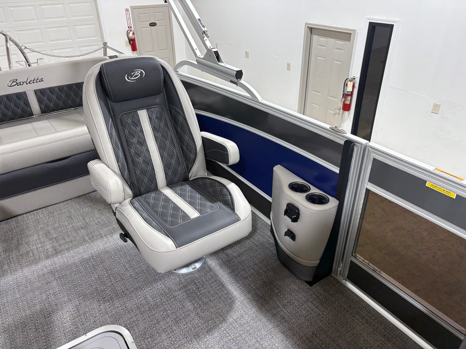 The 2026 Barletta Lusso L25UC is a 27.5-foot pontoon boat that embodies sophistication and versatility. As a new model, it showcases the latest advancements in pontoon design, making it a top choice for boating enthusiasts who demand the best. With its impressive length, this Barletta boat for sale offers ample space for entertaining, relaxing, and enjoying unforgettable days on the water. The Lusso L25UC’s sleek lines and modern color palette, featuring a Gray Moonstone sweep and Bohemian Blue accents, ensure that it turns heads wherever it goes.