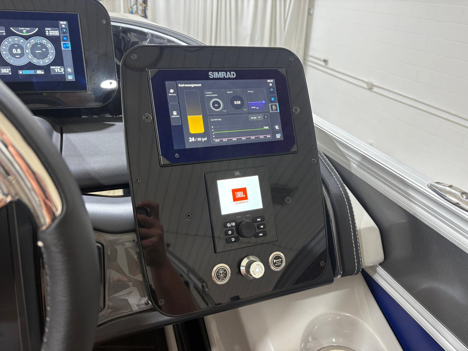 At the heart of the Barletta Lusso L25UC is a powerful Mercury 300L Verado V8 engine, delivering an exhilarating 300 horsepower. This advanced outboard engine is renowned for its smooth, quiet operation and robust performance, making it ideal for both leisurely cruises and high-speed adventures. The Mercury Digital DTS Pre-Rig for VERADO engines with Vessel Link ensures seamless integration and precise control, while the hydraulic and power assist steering provides effortless handling. Whether you are navigating calm lakes or exploring open waters, this pontoon boat offers a responsive and enjoyable ride every time.