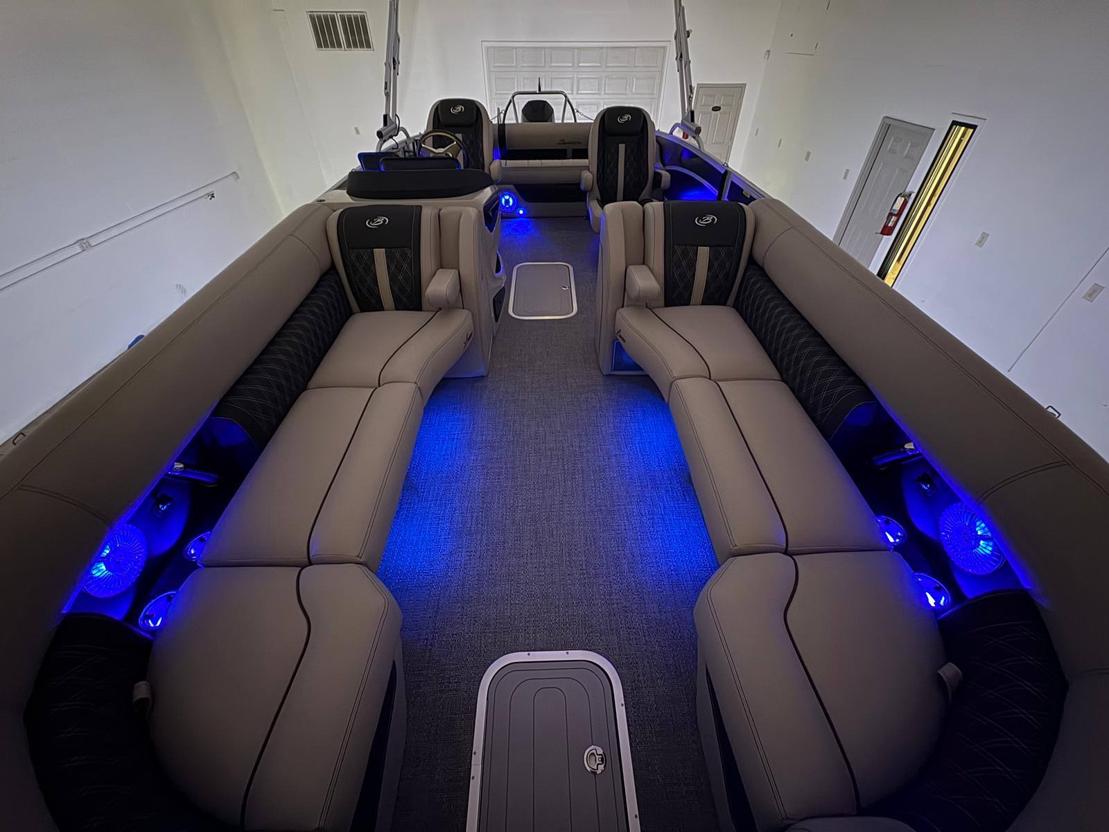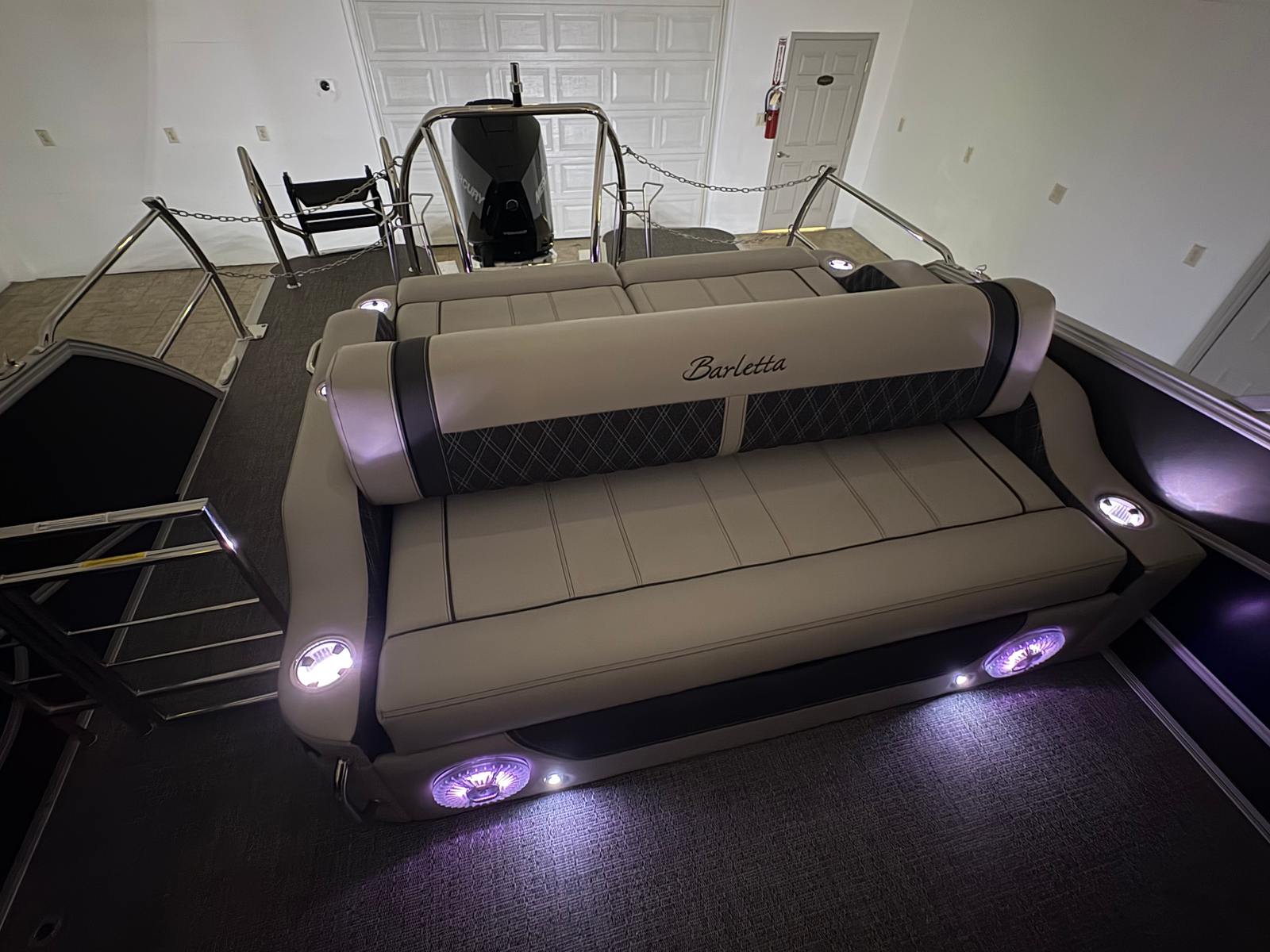 The Barletta Lusso L25UC is the ultimate choice for a wide range of boating adventures. Its spacious and comfortable layout makes it perfect for family outings, where everyone can relax, play, and create lasting memories together. The powerful engine and responsive handling are ideal for water sports enthusiasts who want to enjoy tubing, wakeboarding, or skiing.For those who love to entertain, the Lusso L25UC provides an elegant setting for social gatherings, from casual picnics to sophisticated sunset cruises. The ambient exterior lighting sets the mood for evening events, while the ample seating ensures that everyone has a place to unwind. Whether you are planning a fishing trip with friends, a romantic getaway, or a day of exploring new waterways, this pontoon boat adapts effortlessly to your needs.