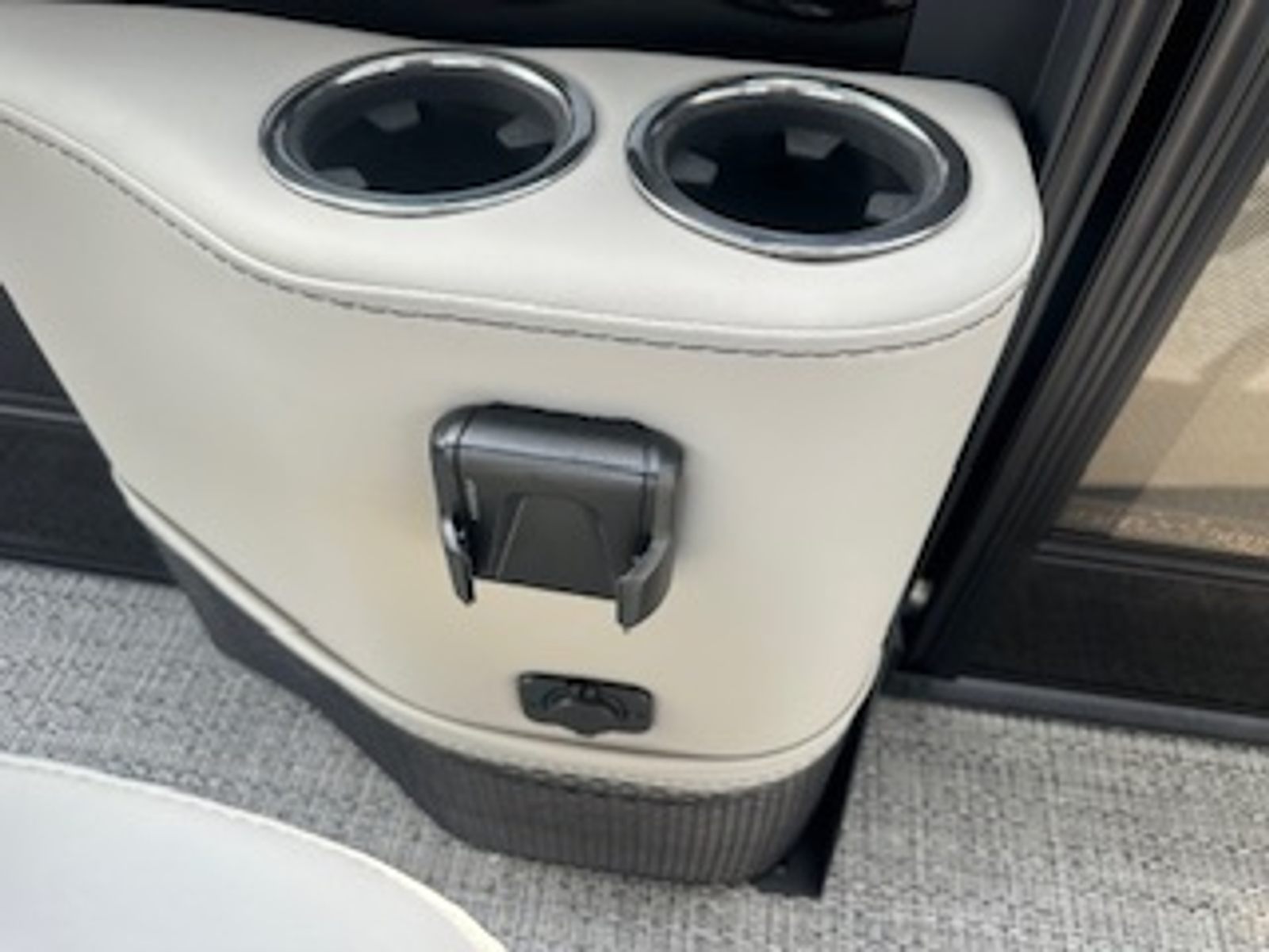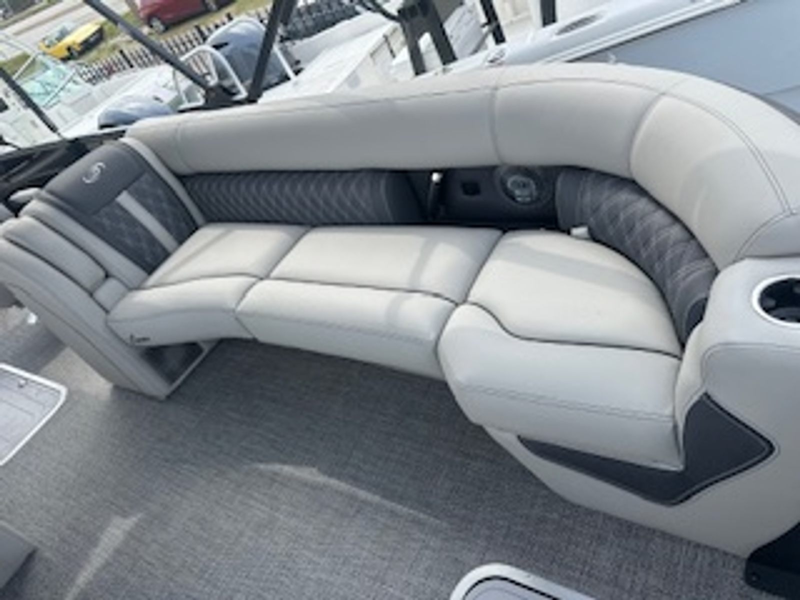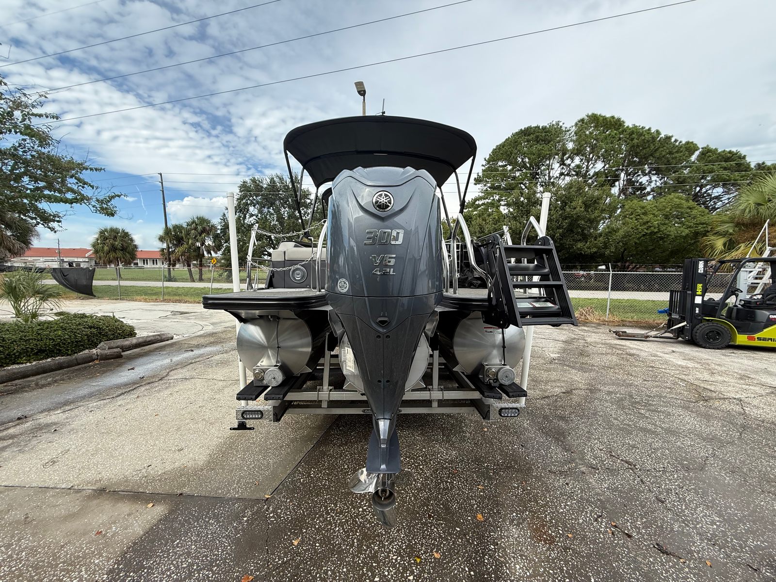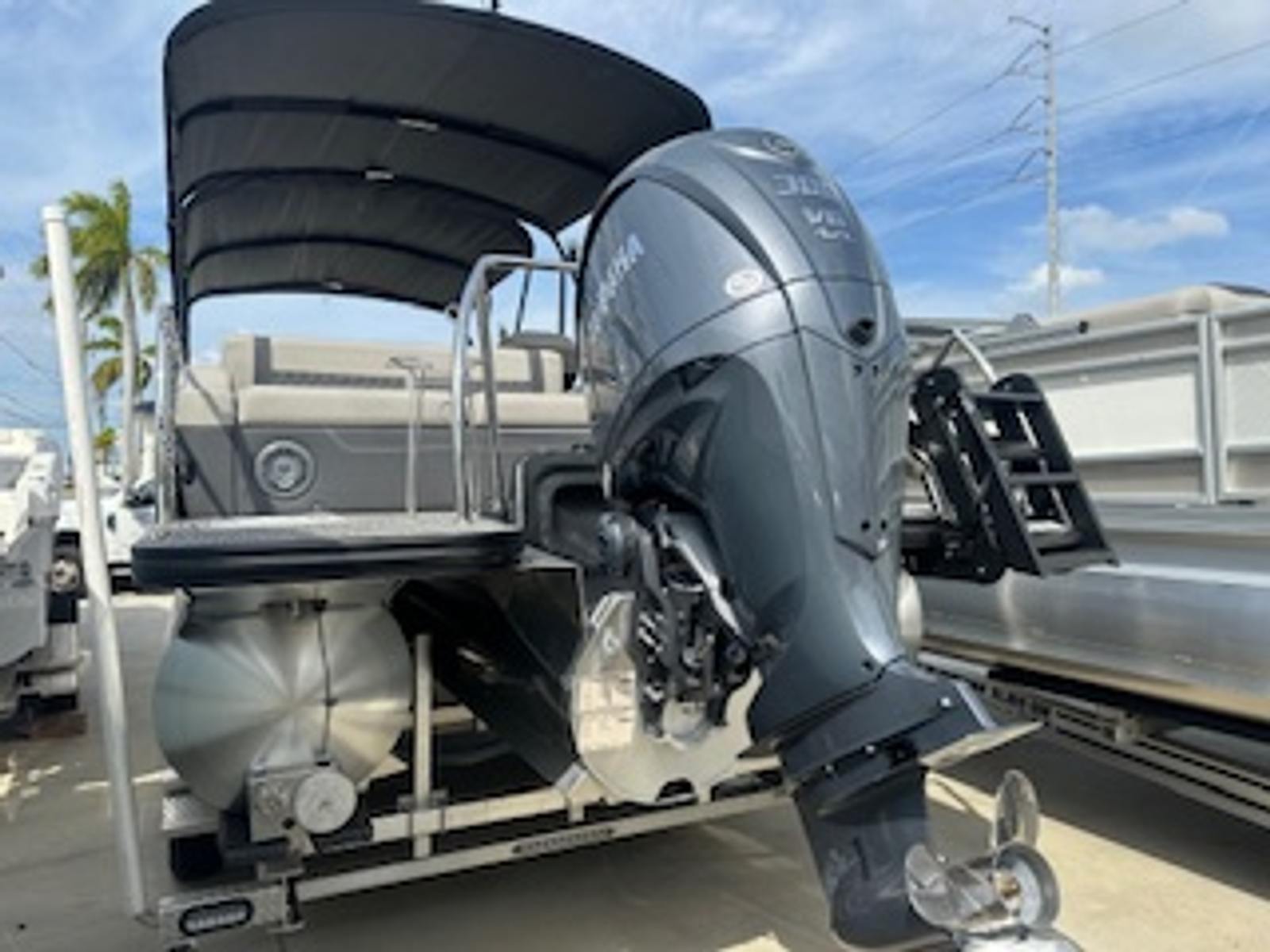 Powering the Barletta Lusso L25UC is a single Yamaha (D) F300XSB engine with integrated steering, delivering a robust 300 horsepower. This engine ensures smooth acceleration, responsive handling, and reliable performance, whether you’re cruising at a leisurely pace or picking up speed for water sports. The integrated steering system enhances maneuverability, making docking and navigating tight spaces effortless. With this level of power and precision, you’ll experience a thrilling ride every time you take the Lusso L25UC out on the water.