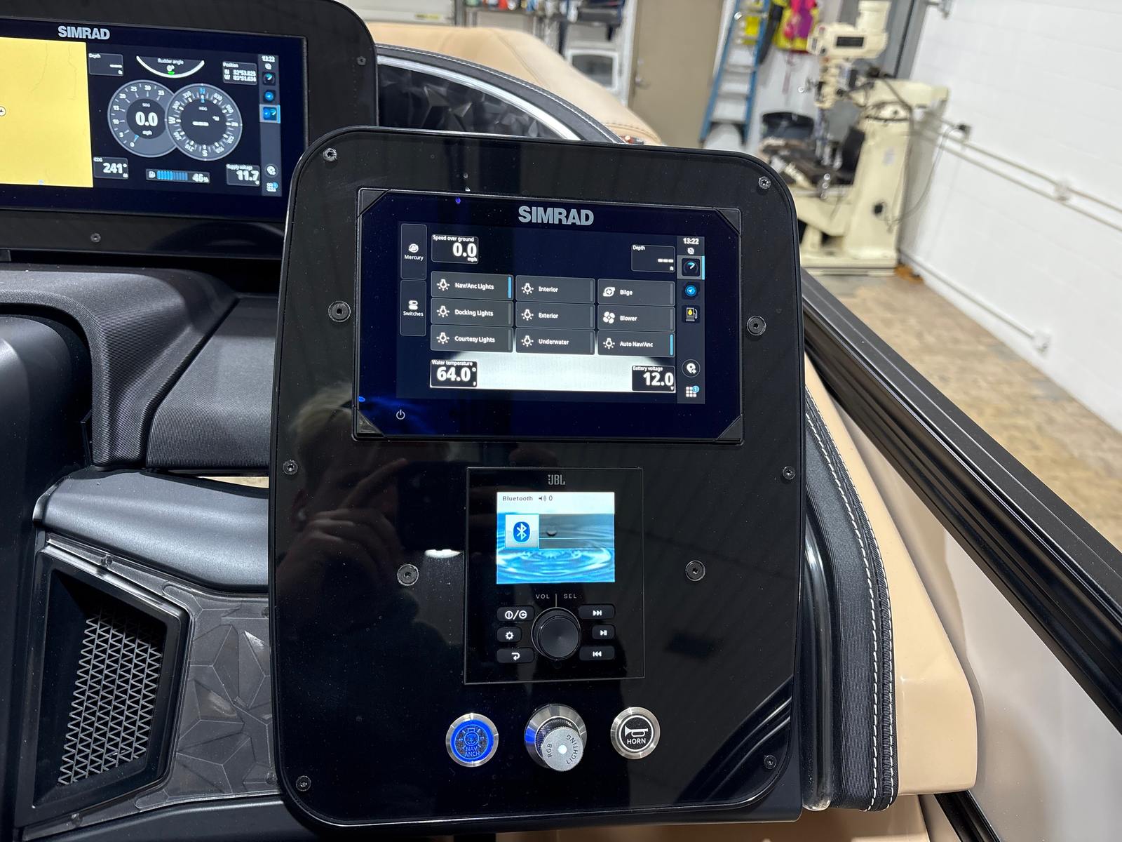 The Barletta Lusso L25UCA is packed with premium features that elevate your boating experience. The exterior lighting, including white underdeck and underwater lights, creates a captivating ambiance for evening cruises and dockside gatherings. Digital gauges provide clear, real-time information at a glance, ensuring you stay informed and in control at all times. The carefully selected Carmella Tan with Onyx furniture offers plush seating and ample space for relaxation, while the Amore Tan flooring adds a touch of elegance and comfort underfoot. The Blackout Package Lusso railskin not only enhances the boat’s appearance but also adds an extra layer of sophistication and exclusivity.