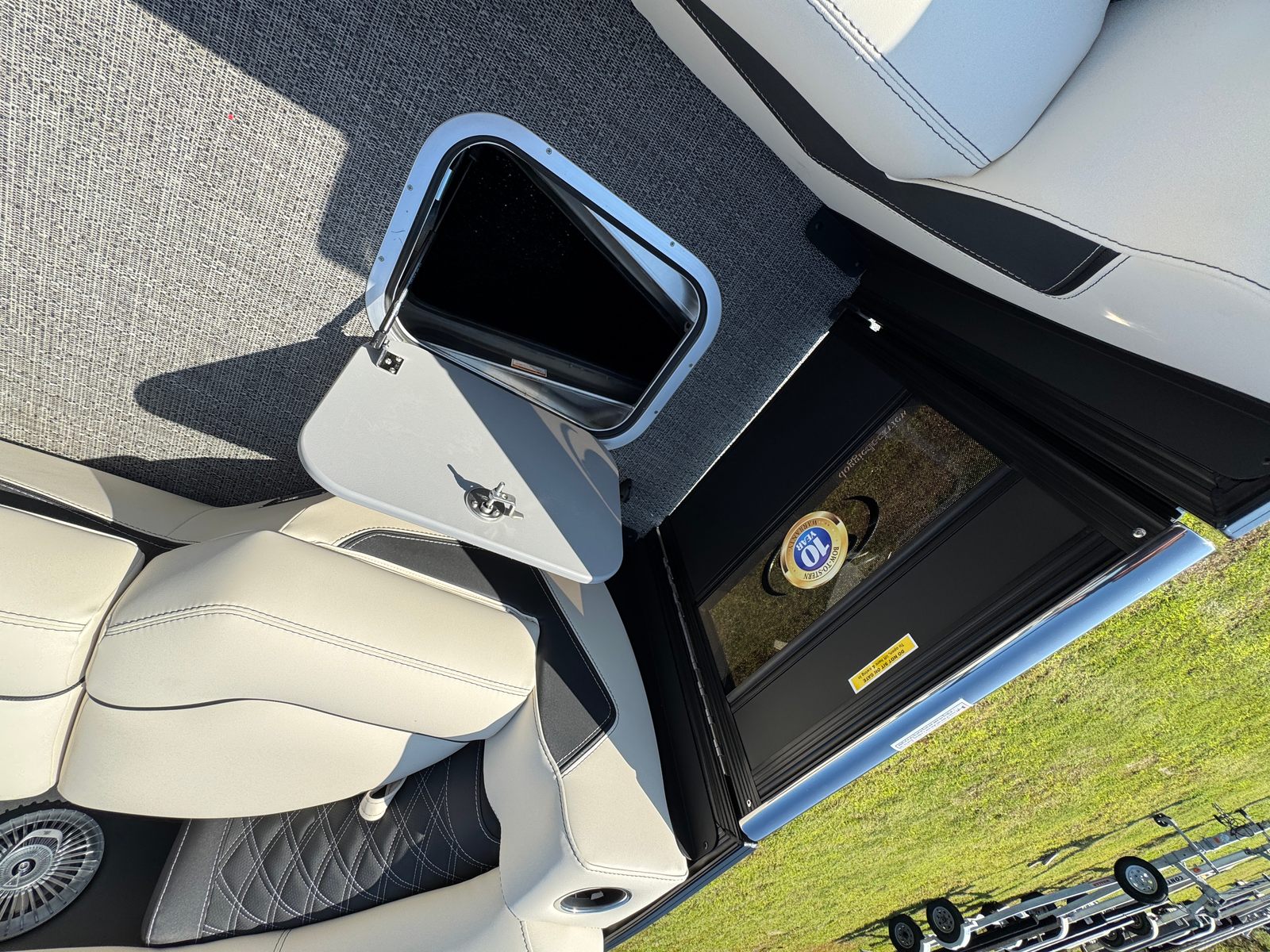 The Lusso L25UCA is packed with premium features designed to enhance comfort, safety, and style. The seat covers with standard playpen offer protection and versatility, ensuring your seating remains pristine and inviting. The Blackout Package Lusso adds a modern, sophisticated touch, while the stainless steel safety stanchions with chains provide added security for you and your guests. The furniture, finished in elegant Linen with Onyx accents, creates a refined atmosphere, perfectly complemented by the Amore Gray flooring for a cohesive and upscale look. The Mercury Digital Pre-Rig for V10 ensures seamless integration with the engine, while the Matte Black sweep color adds a bold, contemporary flair.