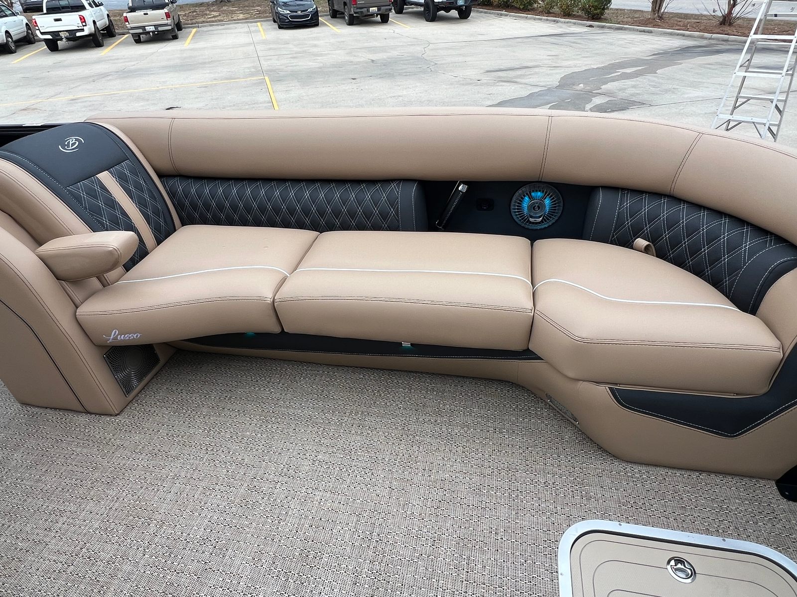 The 2026 Barletta Lusso L25UCA is a remarkable pontoon boat that combines luxury, performance, and innovative features in one stunning package. With its powerful Mercury V10 engine, elegant Black Diamond and Carmella Tan design, and practical amenities like the on-board battery charger and Metal Jacket Protectant, this boat is built for those who demand the best. If you are searching for a pontoon boat for sale that offers both style and substance, the Lusso L25UCA is an outstanding choice.Experience the ultimate in comfort, versatility, and fun on the water with the Barletta Lusso L25UCA. Contact your local dealer today to learn more about this exceptional Barletta boat for sale and discover how you can make every day on the water unforgettable.