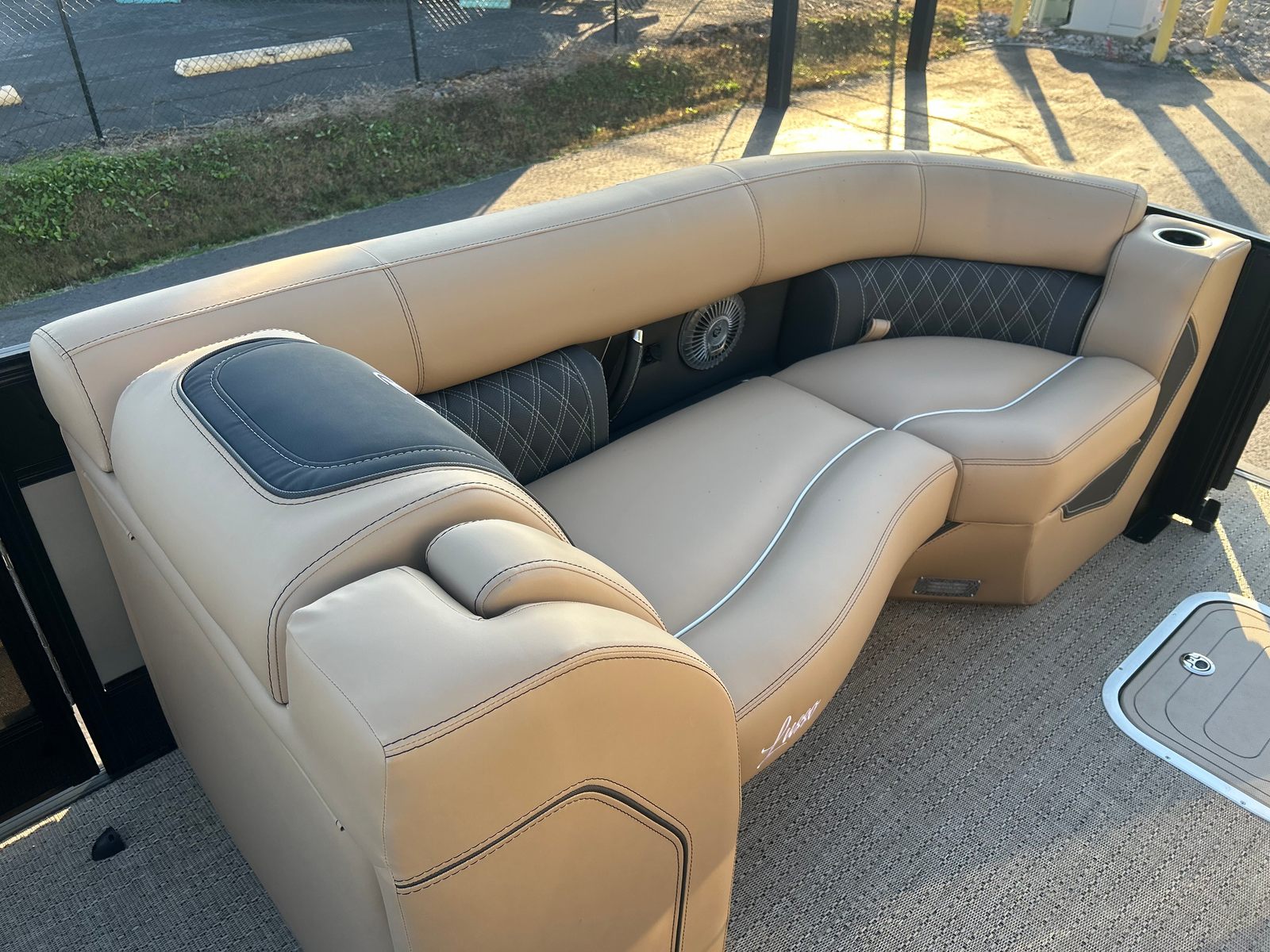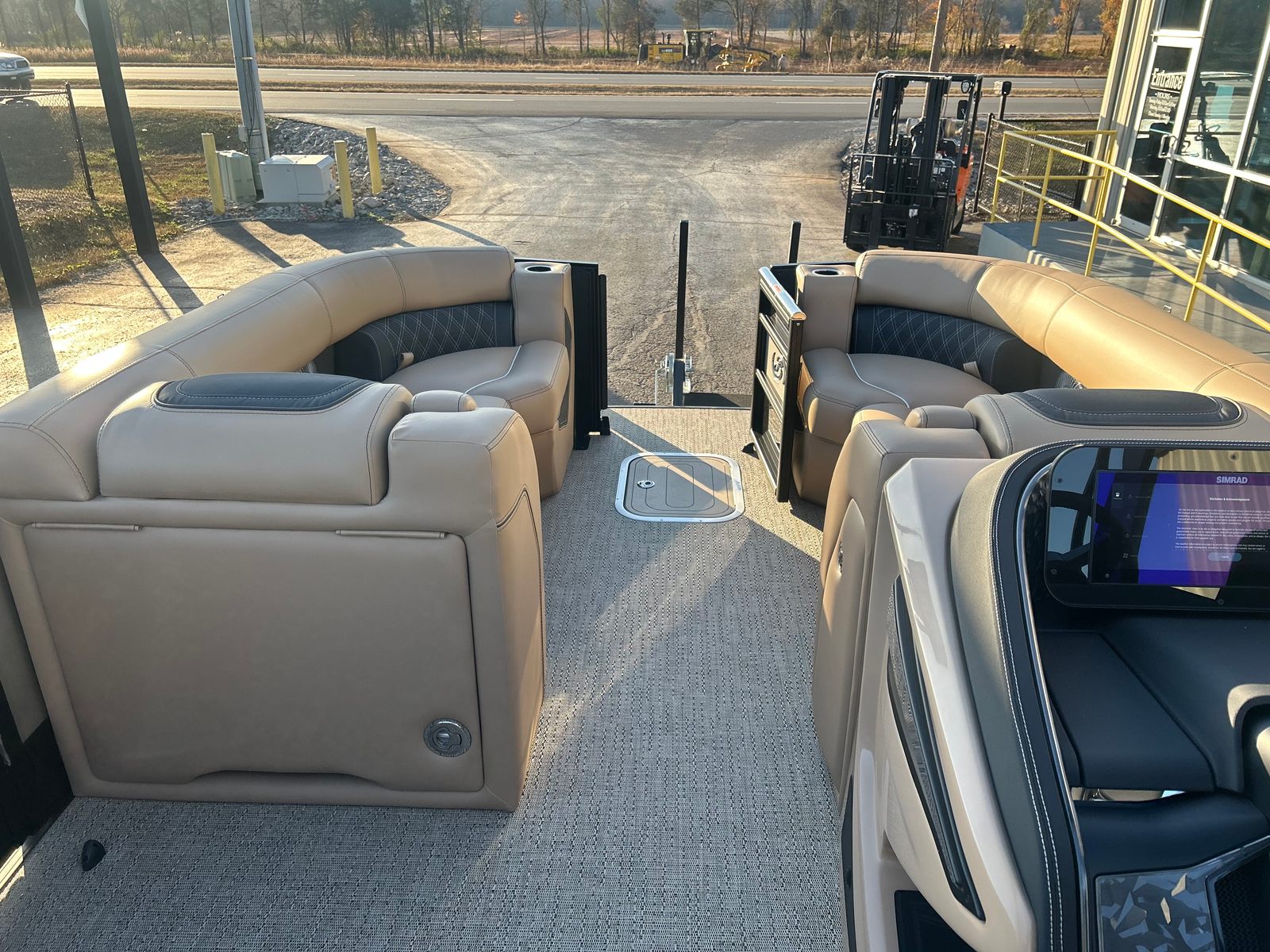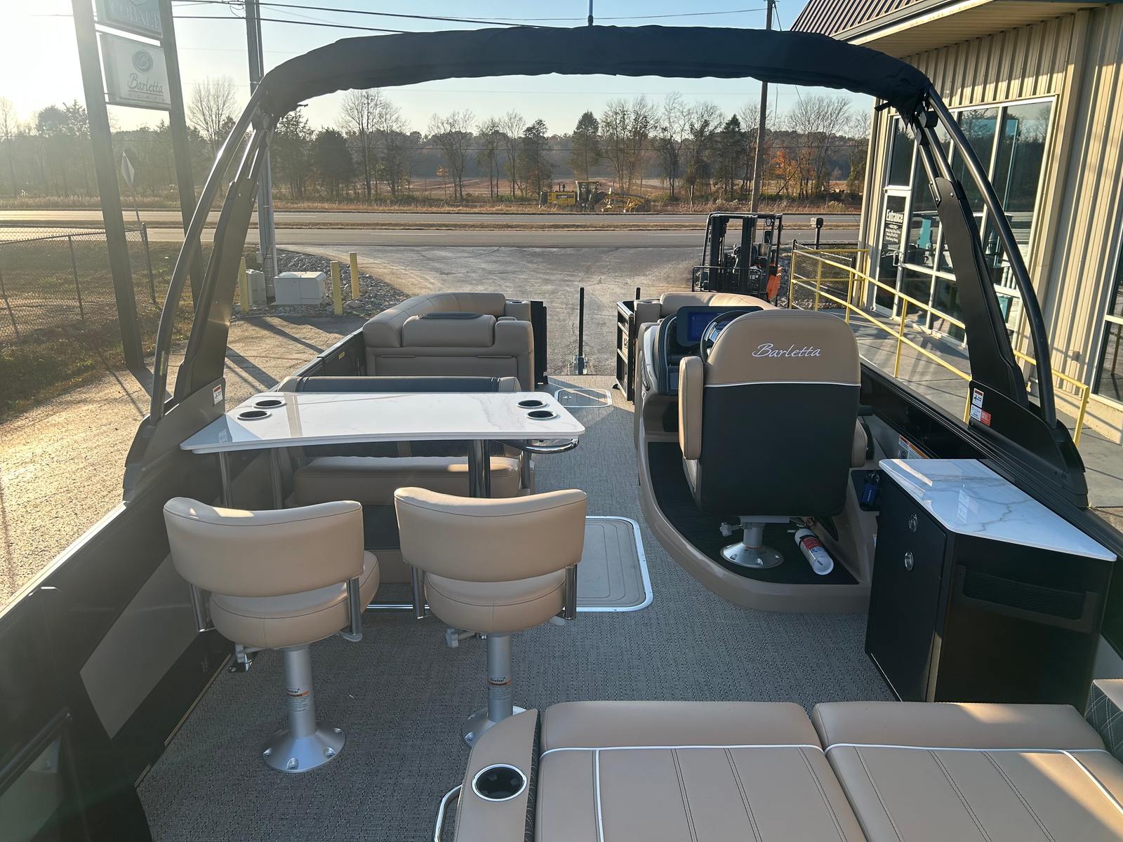The 2026 Barletta Lusso L25UE is more than just a pontoon boat for sale; it is an invitation to elevate your boating experience. With its striking Black Diamond and Champagne color scheme, luxurious Carmella Tan with Onyx furniture, and advanced Mercury 300L Verado V8 engine, this Barletta boat for sale offers the perfect blend of style, performance, and comfort. The Blackout Package Lusso, Sport Bimini, and onboard battery charger are just a few of the features that set this model apart. If you are ready to enjoy the ultimate in leisure, entertainment, and adventure on the water, the Barletta Lusso L25UE is the boat you have been waiting for. Contact your local dealer today to learn more and take the first step toward making unforgettable memories on the water.