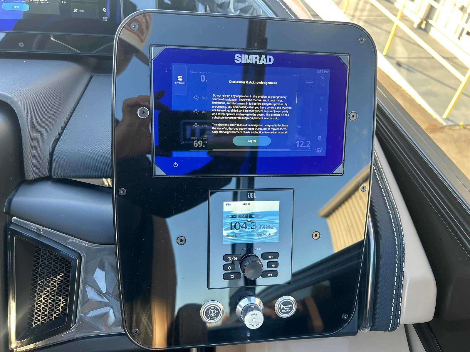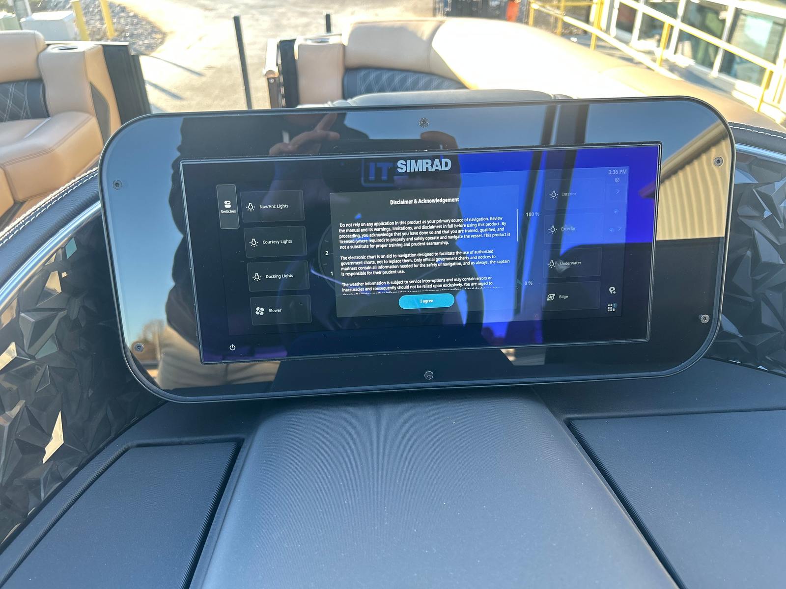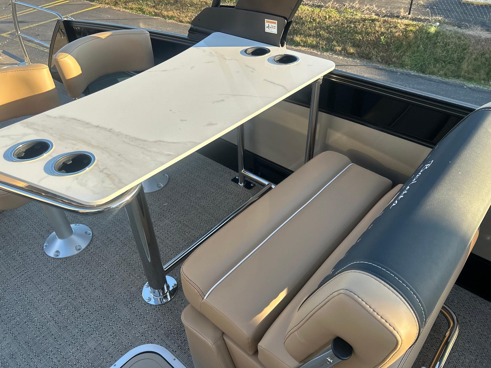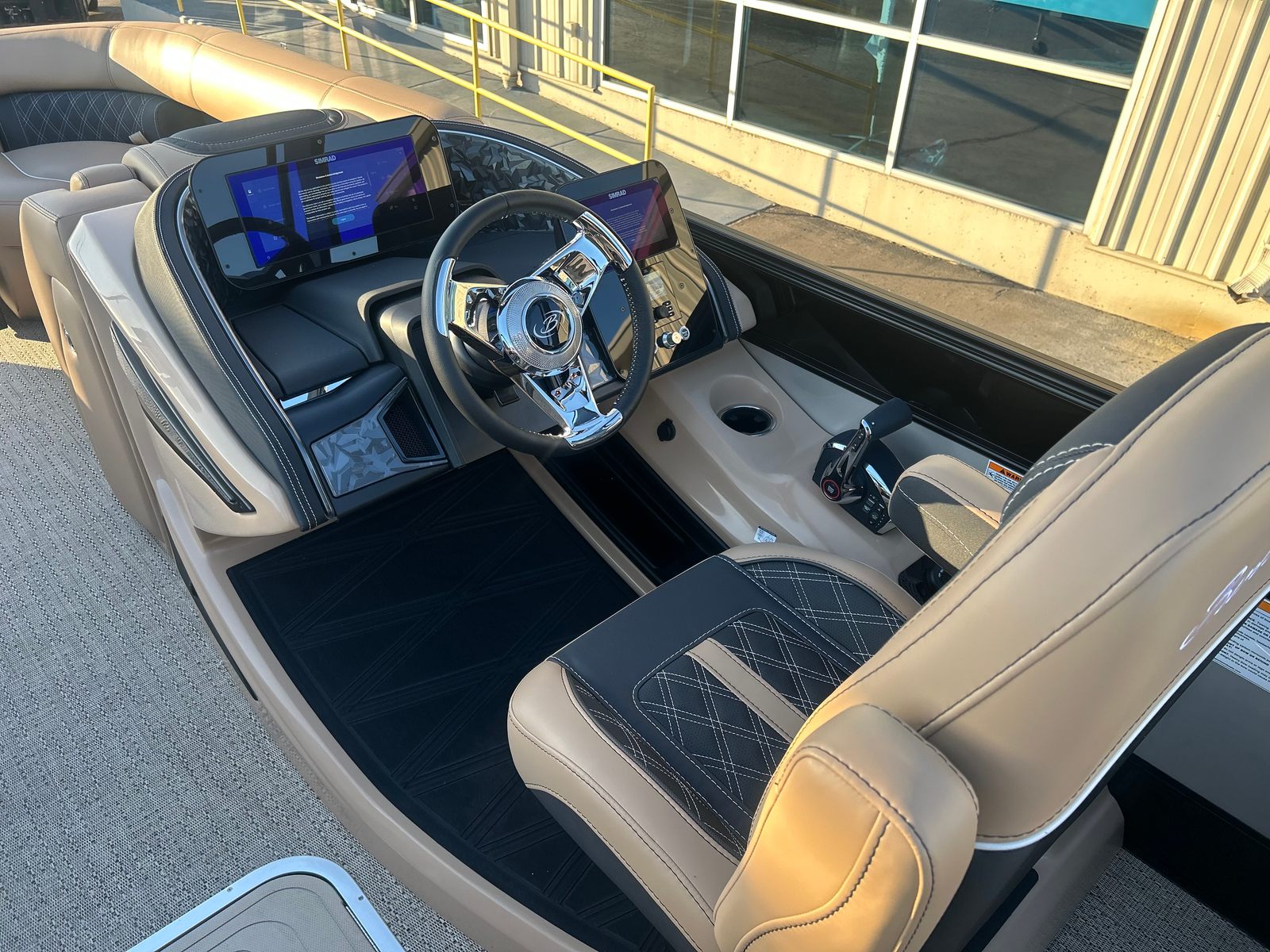Powering the Barletta Lusso L25UE is a robust Mercury (D) 300L Verado V8 engine, delivering an impressive 300 horsepower. This single-engine setup ensures smooth, responsive acceleration and reliable performance, whether you are cruising at a leisurely pace or picking up speed for watersports. The Mercury Digital DTS Pre-Rig for VERADO engines with Vessel Link provides seamless integration and precise control, while the hydraulic and power assist steering make maneuvering effortless. Digital gauges keep you informed at a glance, and the rigged engine with a stainless steel prop ensures optimal efficiency and durability on every outing.