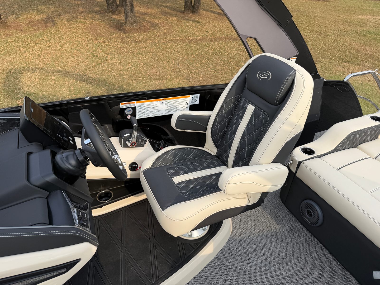 The Barletta Reserve Leggera 23UCA is loaded with premium features designed to elevate your boating experience. The standard all-black color scheme exudes sophistication, while the Amore Gray flooring is both stylish and practical, providing a comfortable surface that is easy to maintain. The Linen with Onyx furniture offers plush seating and a luxurious feel, ensuring every passenger enjoys maximum comfort. The Mercury (D) 400L V10 Verado engine is a powerhouse, and the Mercury Digital Pre-Rig for V10 ensures seamless integration and control. The engine is expertly rigged with a V10 prop for optimal efficiency and performance. At the helm, the AccuThruster System delivers precise control, making every journey smooth and enjoyable.