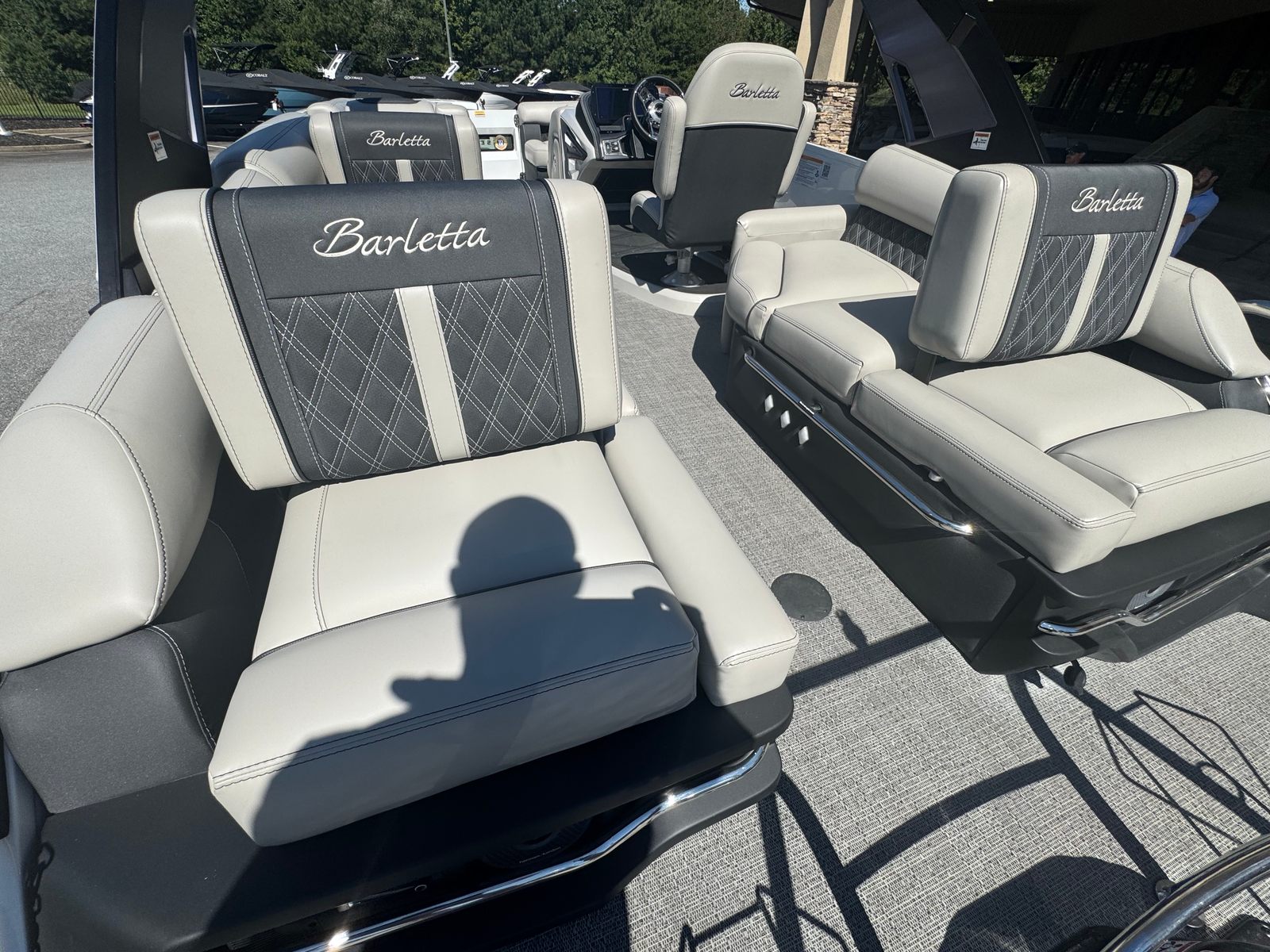 Step aboard and experience the thoughtfully curated features that set this pontoon boat apart. The Marquesan Gray/Onyx furniture creates a sophisticated and comfortable atmosphere, perfect for lounging or entertaining. The Amore Gray flooring adds a touch of elegance while offering durability and easy maintenance, ensuring your boat stays looking pristine season after season.The AccuThruster System enhances maneuverability, making docking and tight turns effortless. With the Railskin Color in All White, the exterior exudes a clean, modern aesthetic that’s sure to turn heads wherever you go. Every detail of the Barletta Reserve Leggera R23MA has been designed to maximize comfort, style, and convenience, making it a standout option among pontoon boats for sale.