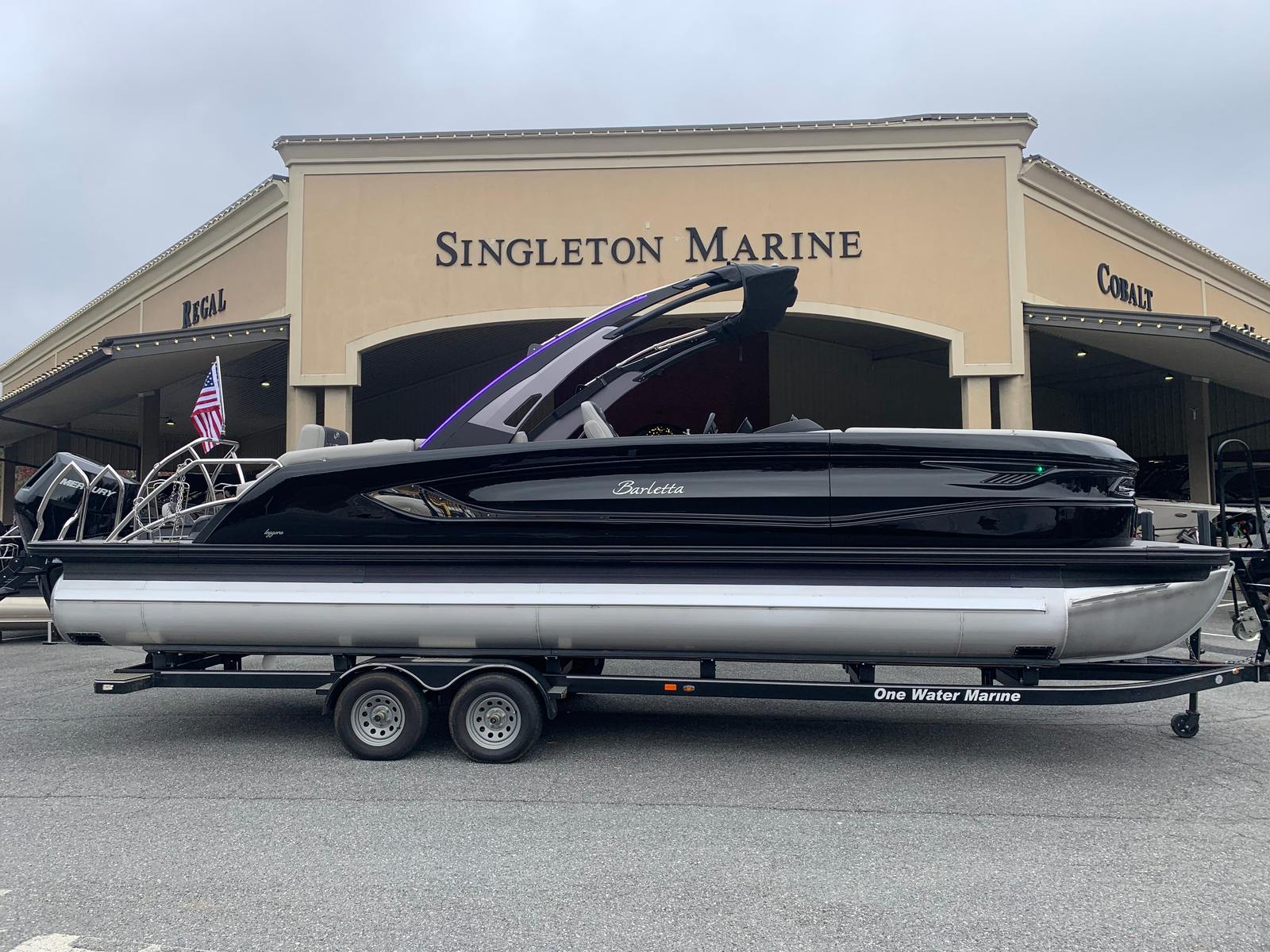 The 2026 Barletta Reserve Leggera R26MA stands out as a premier pontoon boat, measuring an impressive 28.5 feet in length. This new model showcases Barletta’s commitment to quality and innovation, offering ample space for family and friends to relax and enjoy the water. The sleek all-black exterior color gives the boat a modern, sophisticated appearance, while the Marquesan Gray with Onyx furniture and Amore Gray flooring create a refined and inviting interior. Whether you are planning a day of cruising, entertaining, or simply soaking up the sun, this Barletta boat for sale delivers the perfect blend of elegance and functionality.