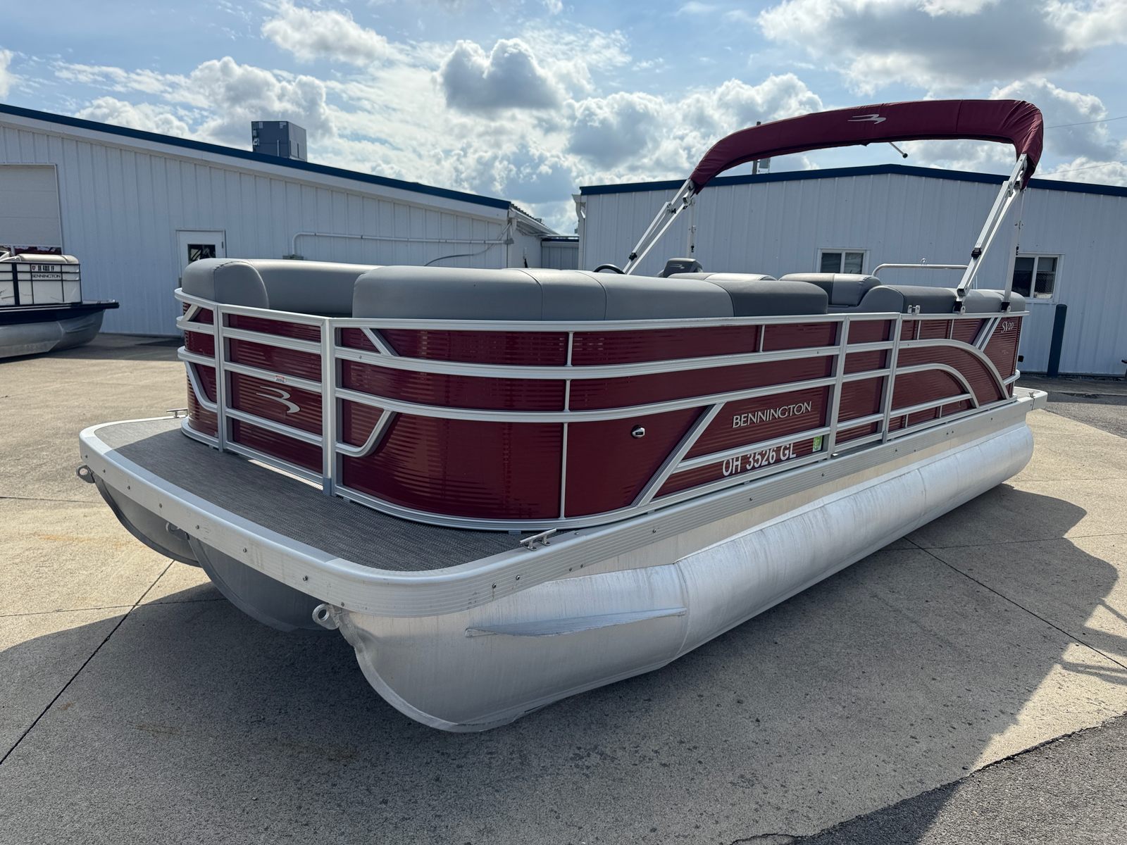 The 2024 Bennington 20 SVL SPS is a used pontoon boat measuring just over 20 feet in length, offering ample space for relaxation and entertainment. With its sleek Shadow Grey and Anthracite exterior, complemented by a striking Rossa Red canvas and panel, this Bennington boat for sale exudes contemporary elegance and a sporty vibe. The combination of Base/Accent in Shadow Grey/Carbon and the Dimensional Brushed Logo adds a touch of sophistication, while the No Accent - Textured finish ensures a clean, modern look. Whether you are cruising on a calm lake or hosting a lively gathering, this pontoon’s design is sure to turn heads.