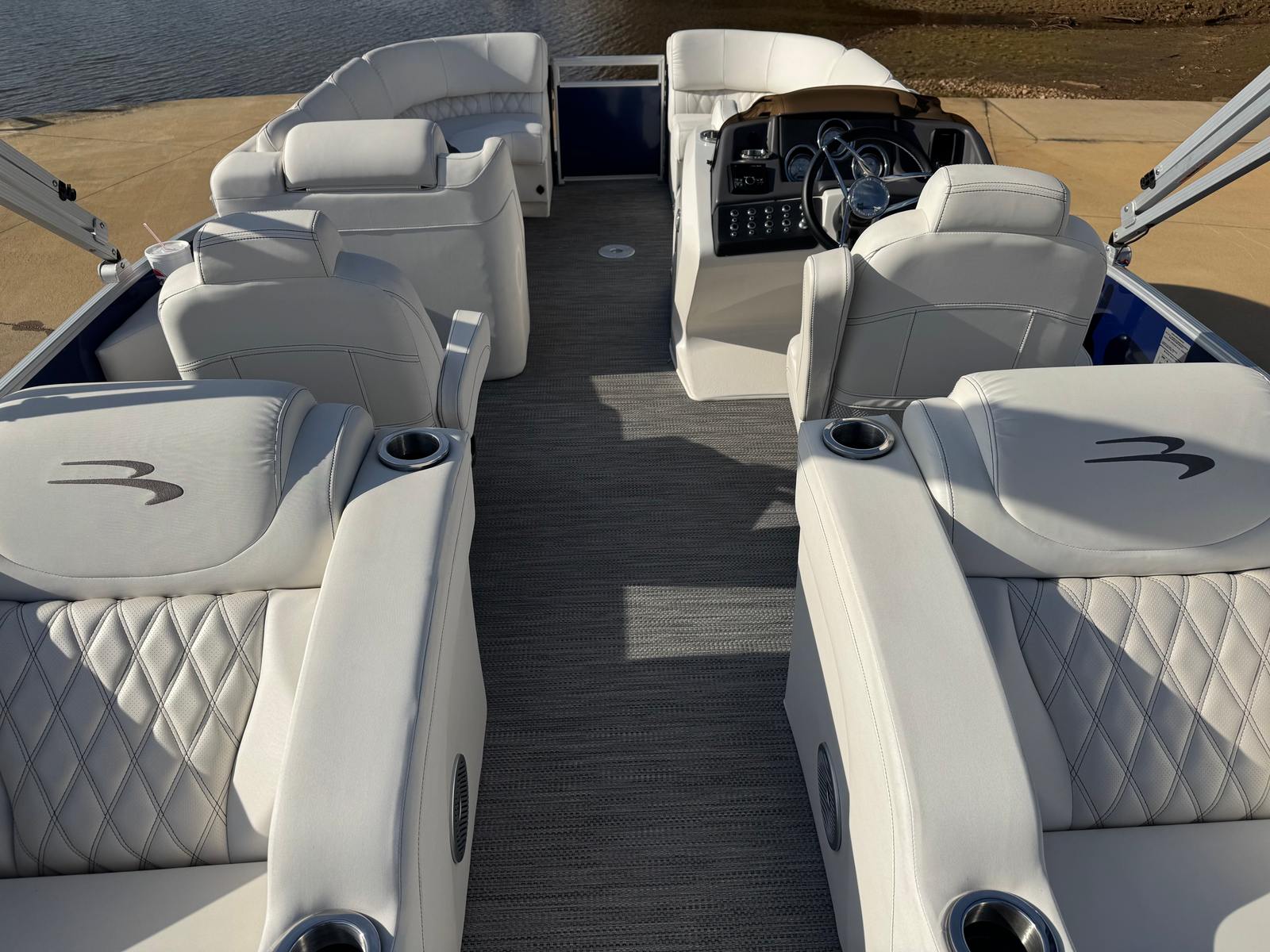Bennington doesn’t cut corners on materials. Expect marine-grade vinyl seating that resists staining and fading, stainless-steel hardware, and high-quality carpeting or woven flooring options that balance comfort and durability. LED lighting packages — usually found on models like the 23 QCW — create a modern atmosphere for evening cruises and add safety when moving around the deck at night.