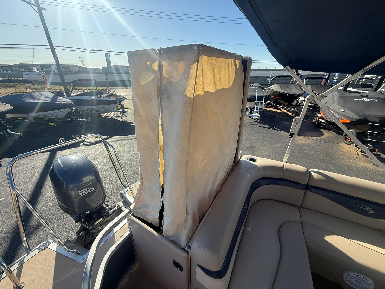 Powering this Bennington pontoon is a single engine boasting an impressive 150 horsepower. This robust engine provides the perfect balance of speed and efficiency, ensuring smooth and responsive handling whether you’re cruising across the lake or navigating winding rivers. The 24 SLI’s performance capabilities make it a standout choice for those who value both excitement and reliability in their boating experience.With 150 horsepower at your command, you’ll enjoy effortless acceleration and the ability to reach your favorite destinations quickly. The engine’s design prioritizes fuel efficiency, helping you make the most of your time on the water without frequent stops for refueling. Whether you’re towing water toys, heading out for a day of fishing, or simply enjoying a leisurely ride, the Bennington 24 SLI delivers the power and performance you need.