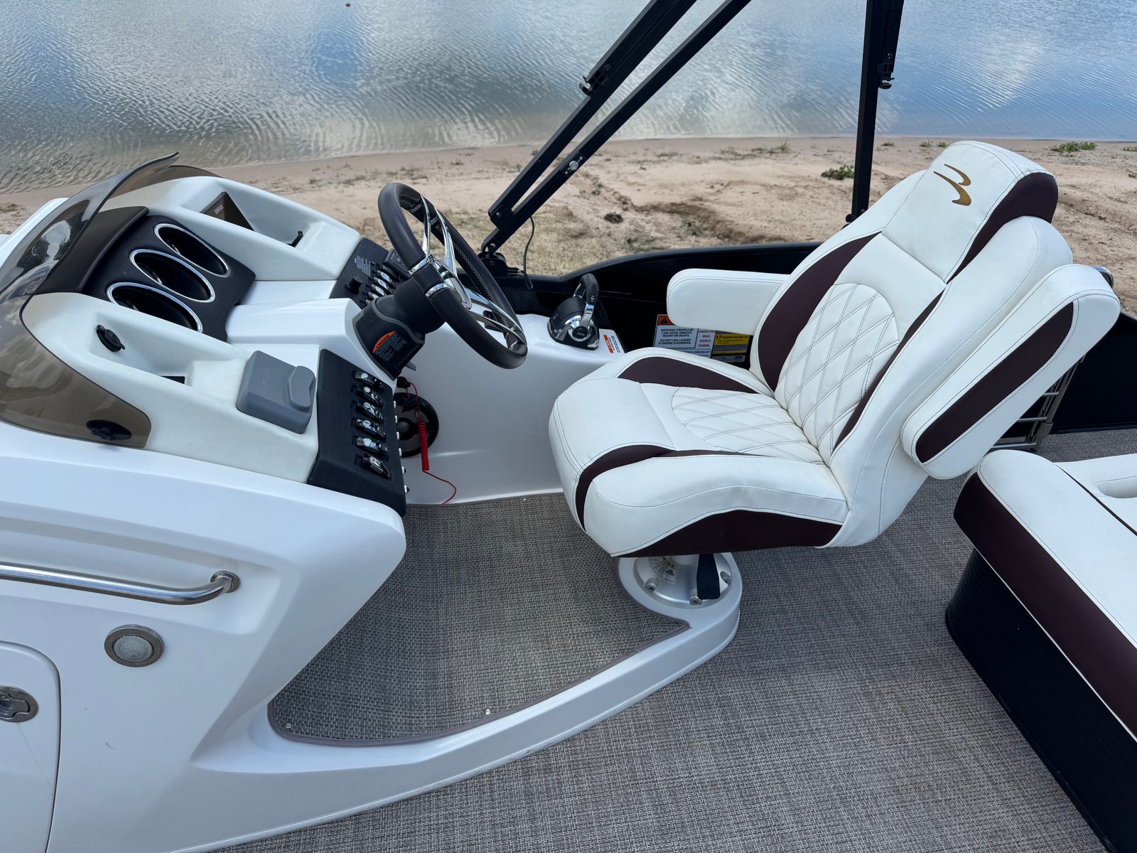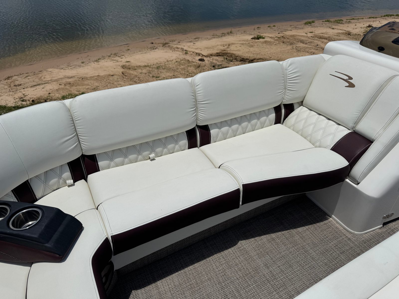 Under the hood, the Bennington 25 QXSBX1IO ESP is powered by a single engine boasting a robust 430 horsepower. This impressive engine ensures smooth acceleration, reliable handling, and plenty of power for a variety of activities, from leisurely cruising to thrilling water sports. The pontoon’s performance is further enhanced by Bennington’s innovative engineering, delivering a ride that’s both stable and exhilarating. With 138 engine hours, this boat has plenty of life left for new adventures, making it a smart investment for those who value both performance and longevity.