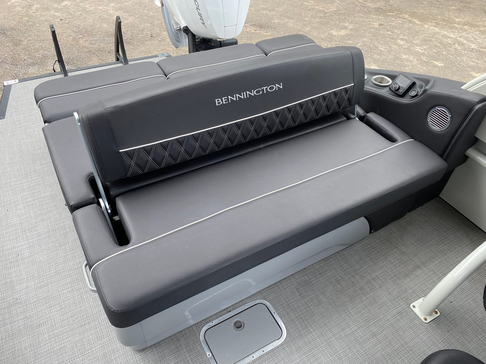 Equipped with dual engines boasting a combined 800 horsepower, the Bennington 27 QX pontoon boat sets a new standard for speed and agility on the water. Whether you’re cruising across the lake or towing water toys, this pontoon’s powerful setup ensures smooth acceleration and responsive handling. The twin-engine configuration not only provides exhilarating performance but also enhances maneuverability, making docking and navigating tight spaces effortless. With this much horsepower at your fingertips, you’ll enjoy thrilling rides and the confidence to explore new waters with ease.
