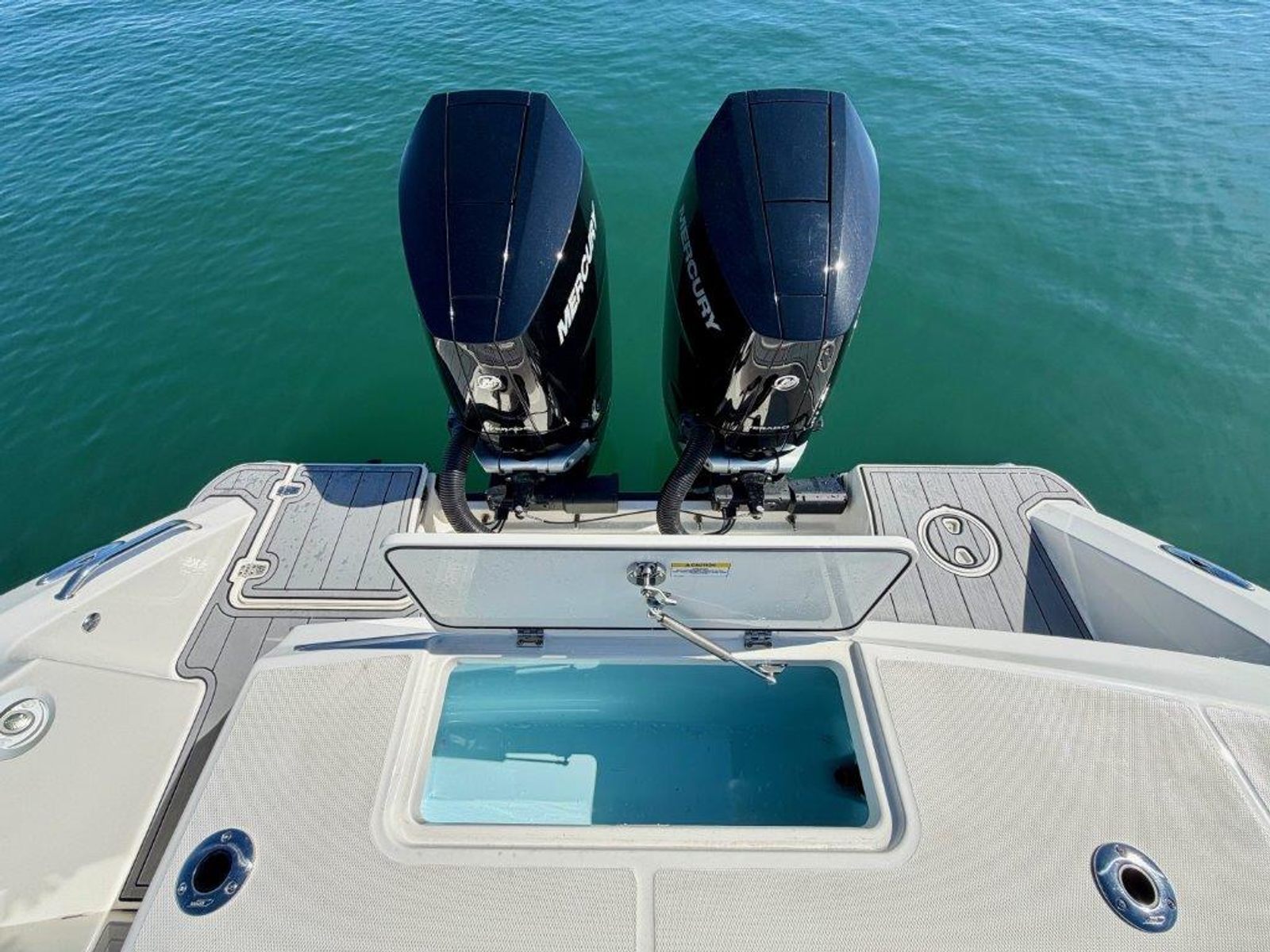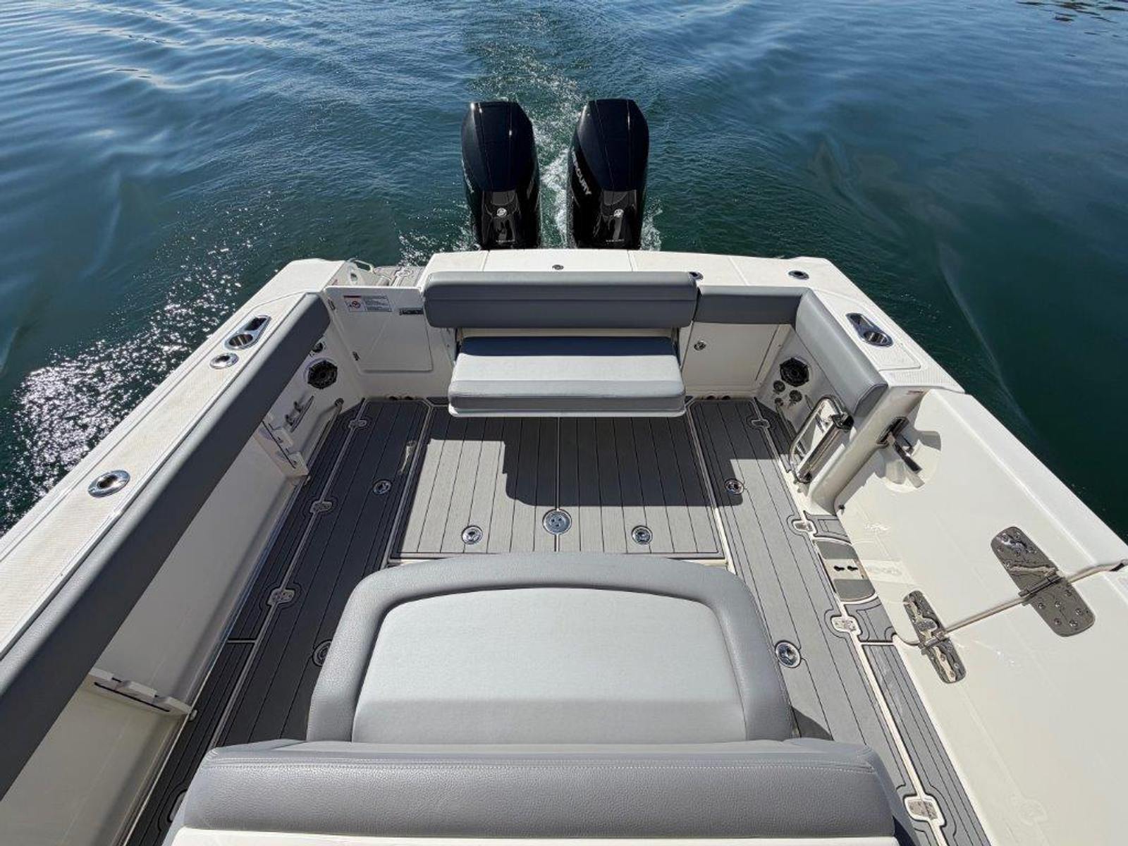 Do not miss your opportunity to own this 2023 Boston Whaler 330 Outrage, a lift-kept, exceptionally well-maintained example that has also been stored in heated conditions during the winter months. This boat shows extremely well and comes with a triple axle Loadmaster trailer featuring LED lighting and a freshwater flush system, making it ideal for trips to the coast. Built on Boston Whaler’s precision-engineered hull, the 330 Outrage delivers a smooth, dry, and confident ride with an excellent balance of stability and comfort, along with predictable handling and seamless control. Powered by twin Mercury V10 Verado 400s with 150 hours, this Boston Whaler has been fully serviced and is ready to go. Joystick control, autopilot, and Skyhook make docking and positioning simple, while the twin 16” Simrad displays with radar and sounder provide a complete electronics package. The layout offers a spacious cockpit for fishing and entertaining, along with thoughtful comfort features throughout.