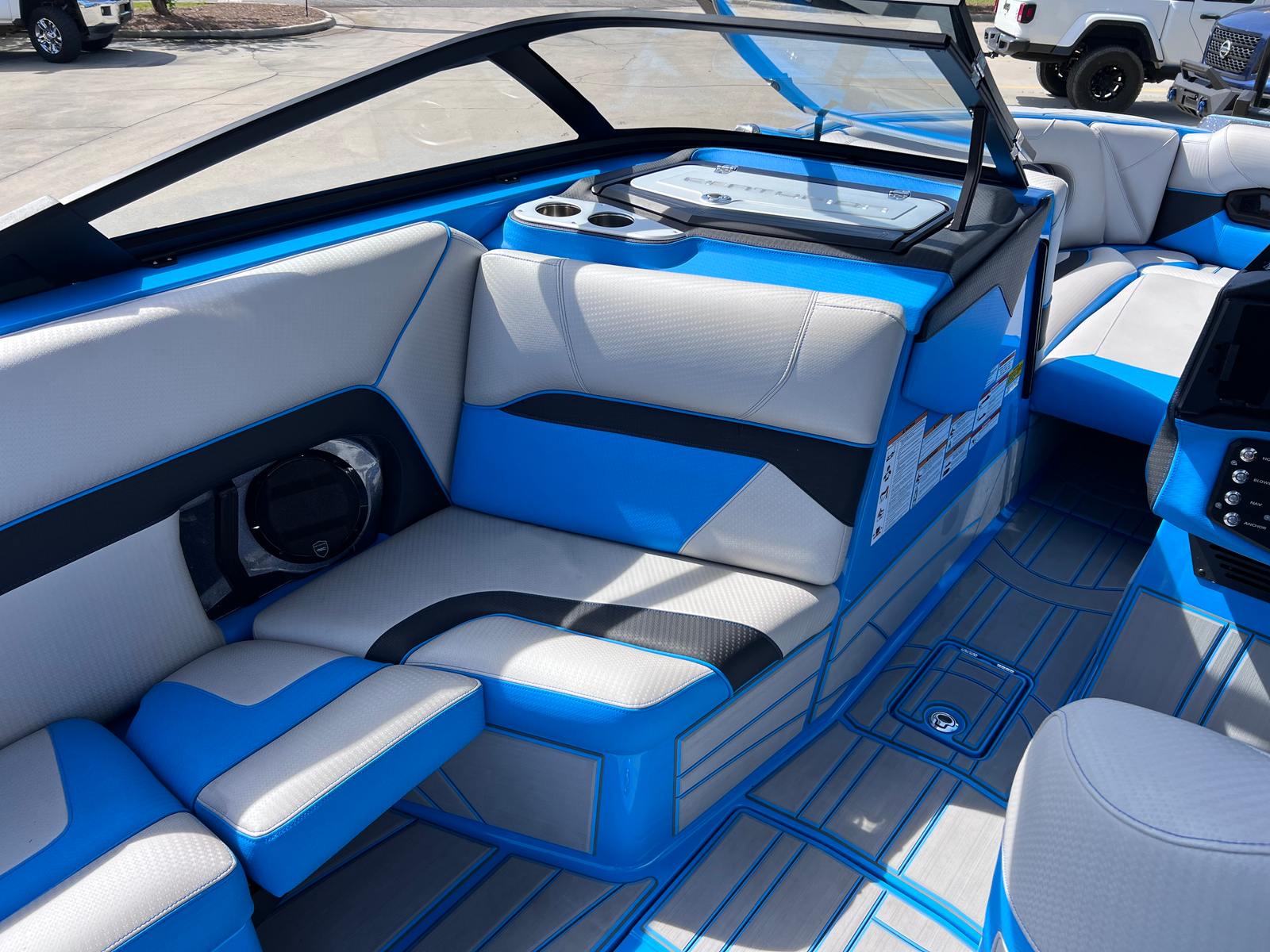 The 2021 Centurion RI265 is packed with features designed to enhance your time on the water. As a leading Ski & Wakeboard boat for sale, the RI265 is engineered for both performance and comfort. Its spacious 26.5-foot layout provides ample room for passengers, gear, and relaxation, ensuring everyone on board has a first-class experience. The boat’s innovative design maximizes both seating and storage, making it easy to bring along everything you need for a day of fun.Special features of the RI265 include its advanced wake and wave technology, allowing you to customize the size and shape of the wake for wakeboarding, wakesurfing, or skiing. The boat’s intuitive controls and user-friendly interface make it simple to adjust settings on the fly, so you can tailor your ride to suit any skill level or preference. The RI265’s premium materials and attention to detail are evident throughout, from the plush seating to the stylish accents that set it apart from other boats in its class.