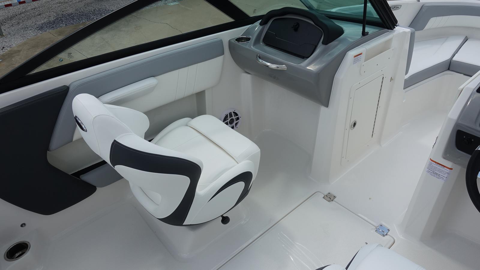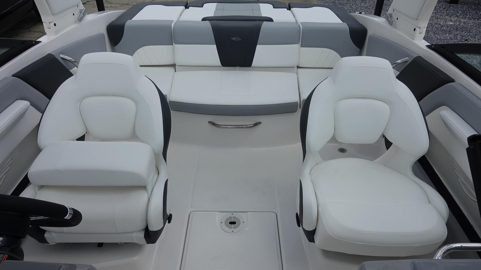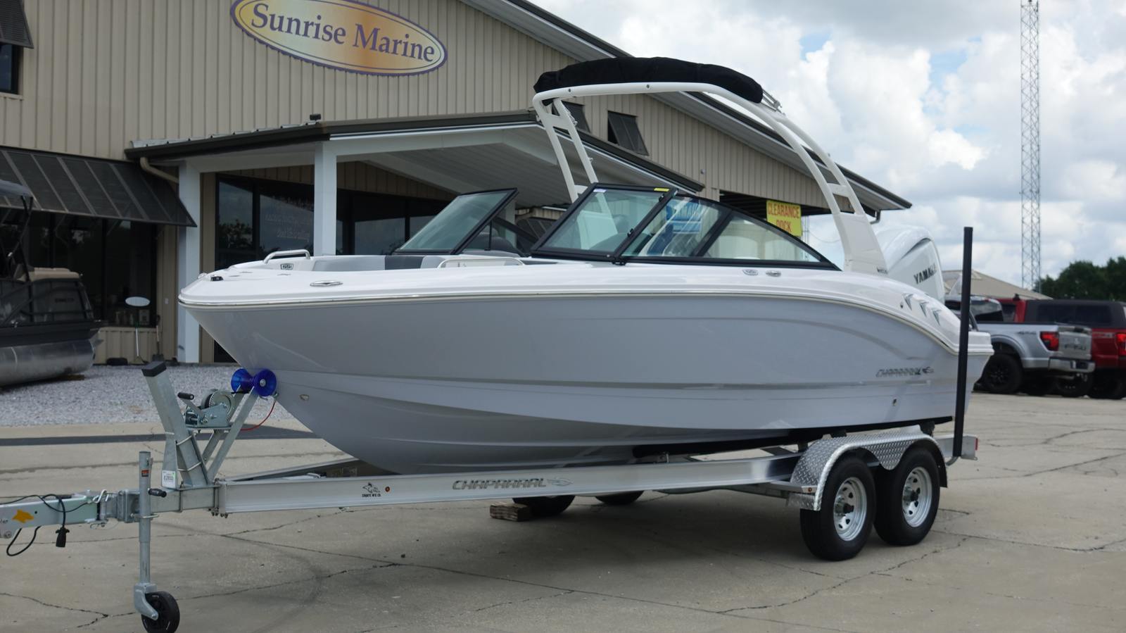 Step aboard the Chaparral 21 SSI OB and discover a host of premium features designed to enhance your boating experience. The Alloy Gray gel-coated hull and solid color bottom create a striking visual impact, while the custom-painted white Yamaha engine adds a touch of elegance. The cockpit interior, finished in Sterling, offers a refined and comfortable space for you and your guests.The MTX Folding Arch Tower in white not only adds to the boat’s sporty profile but also provides versatility for watersports and easy storage. The standard black canvas and mooring cover protect your investment from the elements, ensuring your boat stays in pristine condition. The Deluxe Package elevates your experience with a digital depth gauge, a Bimini top with boot or tower top canvas for shade, ultra-comfort pedestal seats with flip-up bolsters for both helm and passenger, a port console storage door, deluxe badging, and a Clarion transom remote for convenient audio control.
