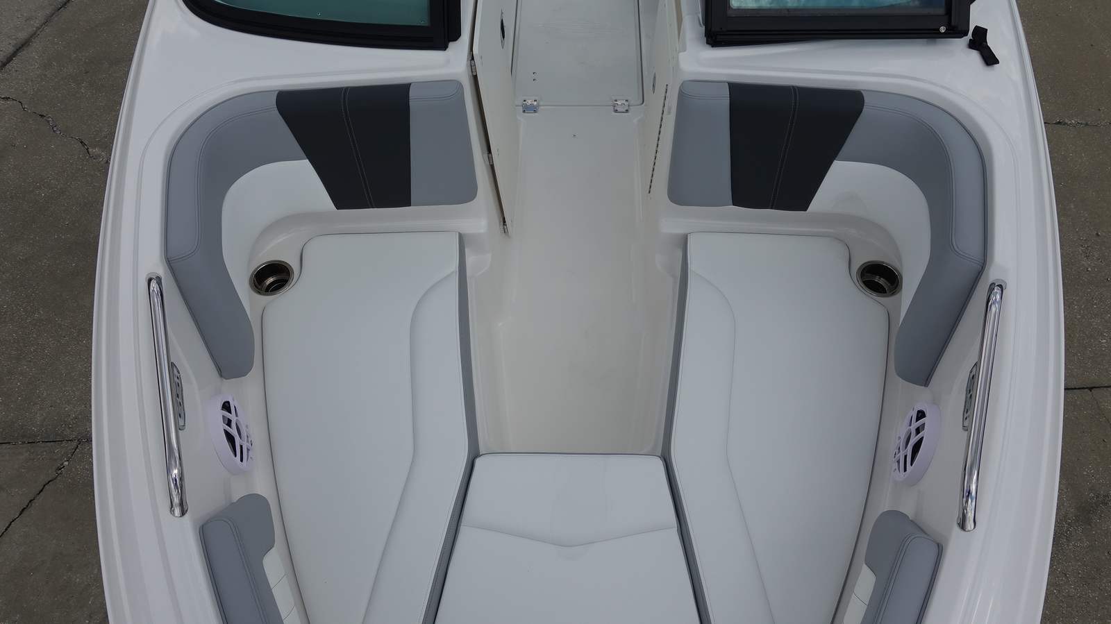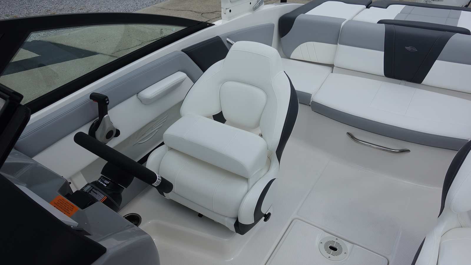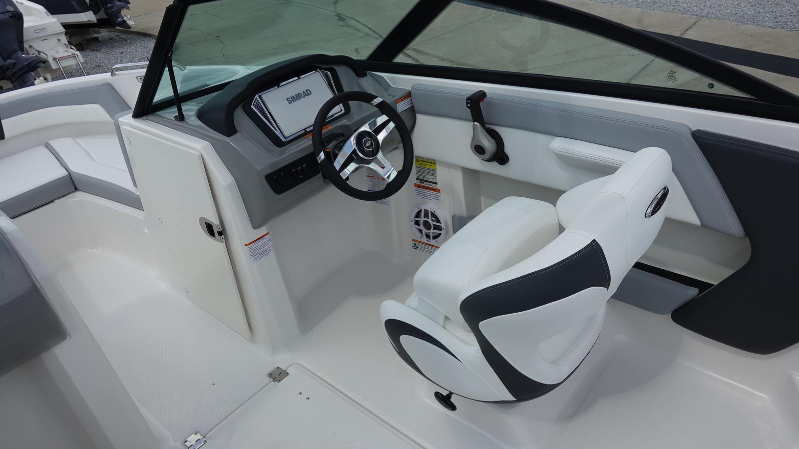 Step aboard the Chaparral 21 SSI OB and discover a host of premium features designed to enhance your boating experience. The Alloy Gray gel-coated hull and solid color bottom create a striking visual impact, while the custom-painted white Yamaha engine adds a touch of elegance. The cockpit interior, finished in Sterling, offers a refined and comfortable space for you and your guests.The MTX Folding Arch Tower in white not only adds to the boat’s sporty profile but also provides versatility for watersports and easy storage. The standard black canvas and mooring cover protect your investment from the elements, ensuring your boat stays in pristine condition. The Deluxe Package elevates your experience with a digital depth gauge, a Bimini top with boot or tower top canvas for shade, ultra-comfort pedestal seats with flip-up bolsters for both helm and passenger, a port console storage door, deluxe badging, and a Clarion transom remote for convenient audio control.