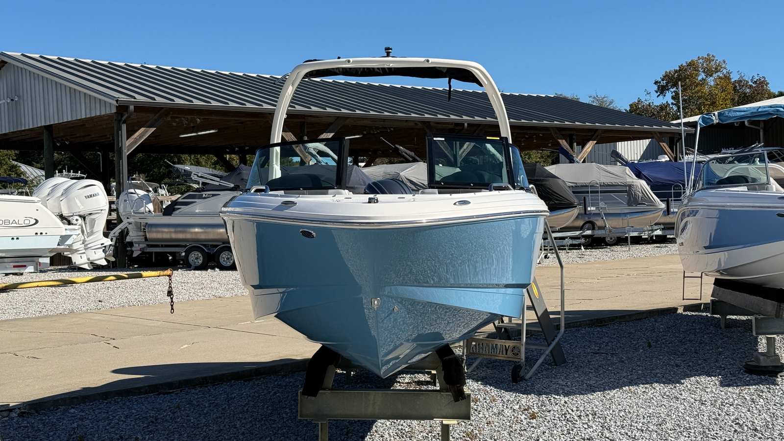 Step aboard and discover a host of premium features that set the 2026 Chaparral 21 SSI OB apart from other bowrider boats for sale. The exterior boasts a gel-coated entire hull in striking Atlas Blue, complemented by a solid hull color bottom for a cohesive, high-end look. The cockpit interior is finished in Sterling, creating a sophisticated and inviting atmosphere for you and your guests.Enjoy the convenience and protection of the standard black canvas, along with a white MTX folding arch tower that adds both style and functionality. The cockpit and bow cover keep your boat protected from the elements, while the deluxe package elevates your experience with a digital depth gauge, bimini top with boot or tower top canvas, and ultra-comfort pedestal seats with flip-up bolsters for both helm and passenger. Additional touches like the port console storage door, deluxe badging, Clarion transom remote, and galvanized anchor enhance both the utility and luxury of this Chaparral boat for sale.