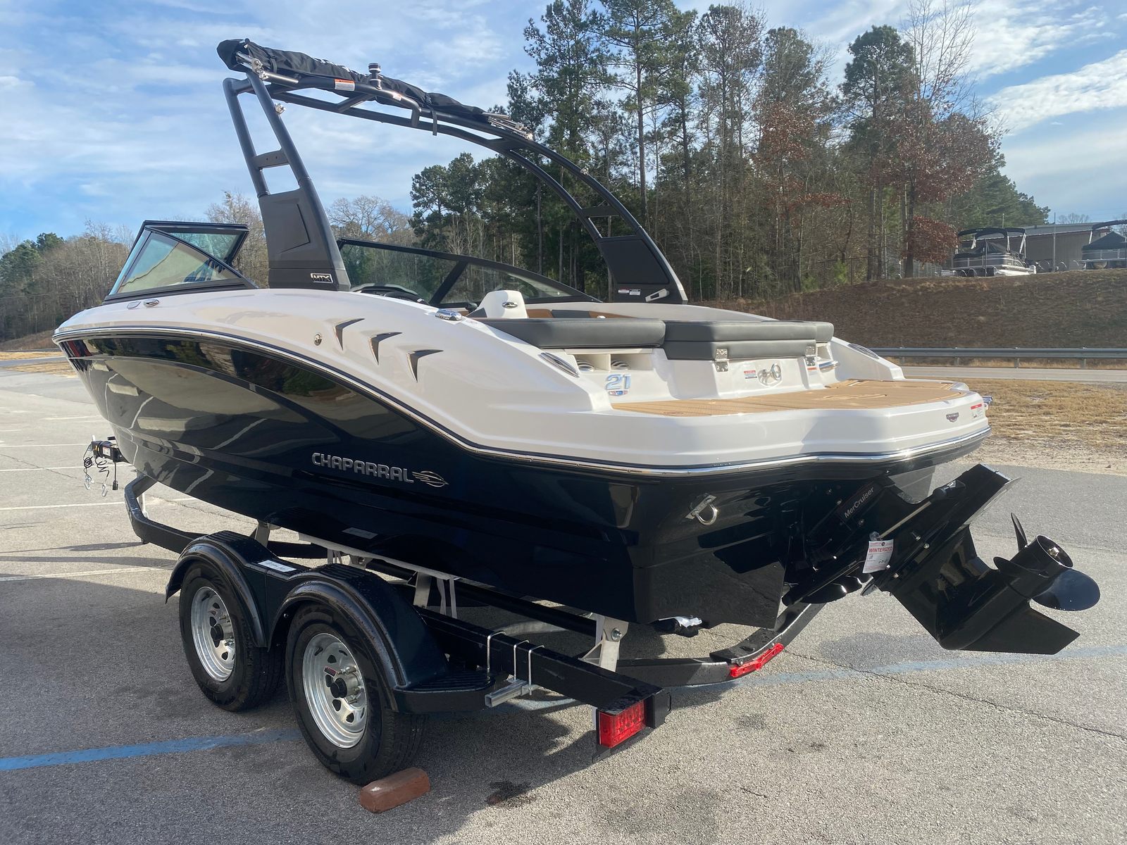 The 2026 Chaparral 21 SSI Bowrider is a brand-new vessel, meticulously crafted to deliver an unforgettable boating experience. Measuring 21 feet in length, this boat offers ample space for passengers to stretch out and enjoy the ride. Its sleek profile, highlighted by a gel-coated entire hull in striking black and a solid hull bottom color, ensures you’ll turn heads at every marina and on every lake. The Cayenne White Storm cockpit interior adds a touch of sophistication, while the black standard canvas and MTX folding arch tower provide both style and functionality. Whether you’re cruising, entertaining, or simply soaking up the sun, this Chaparral boat for sale is built to impress.